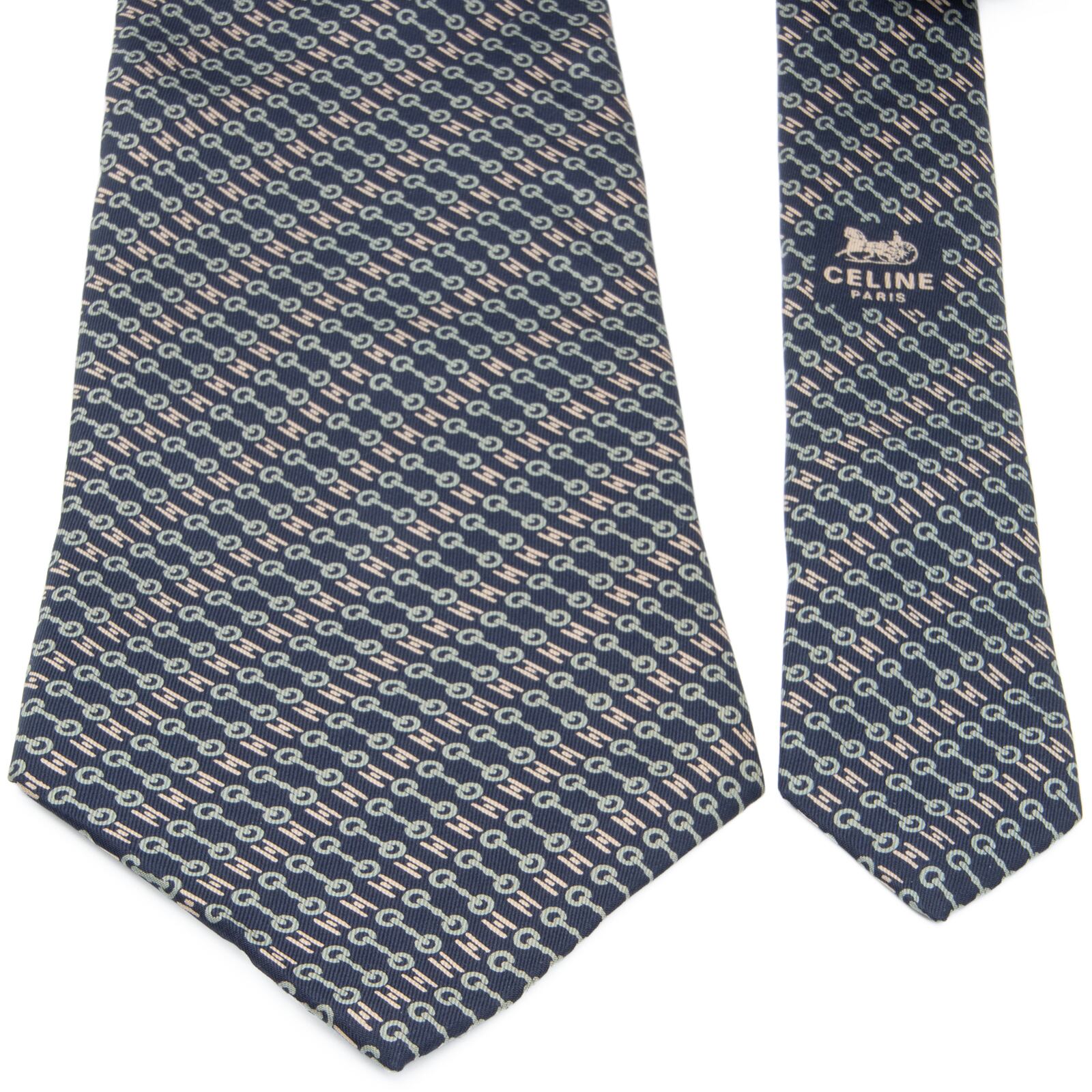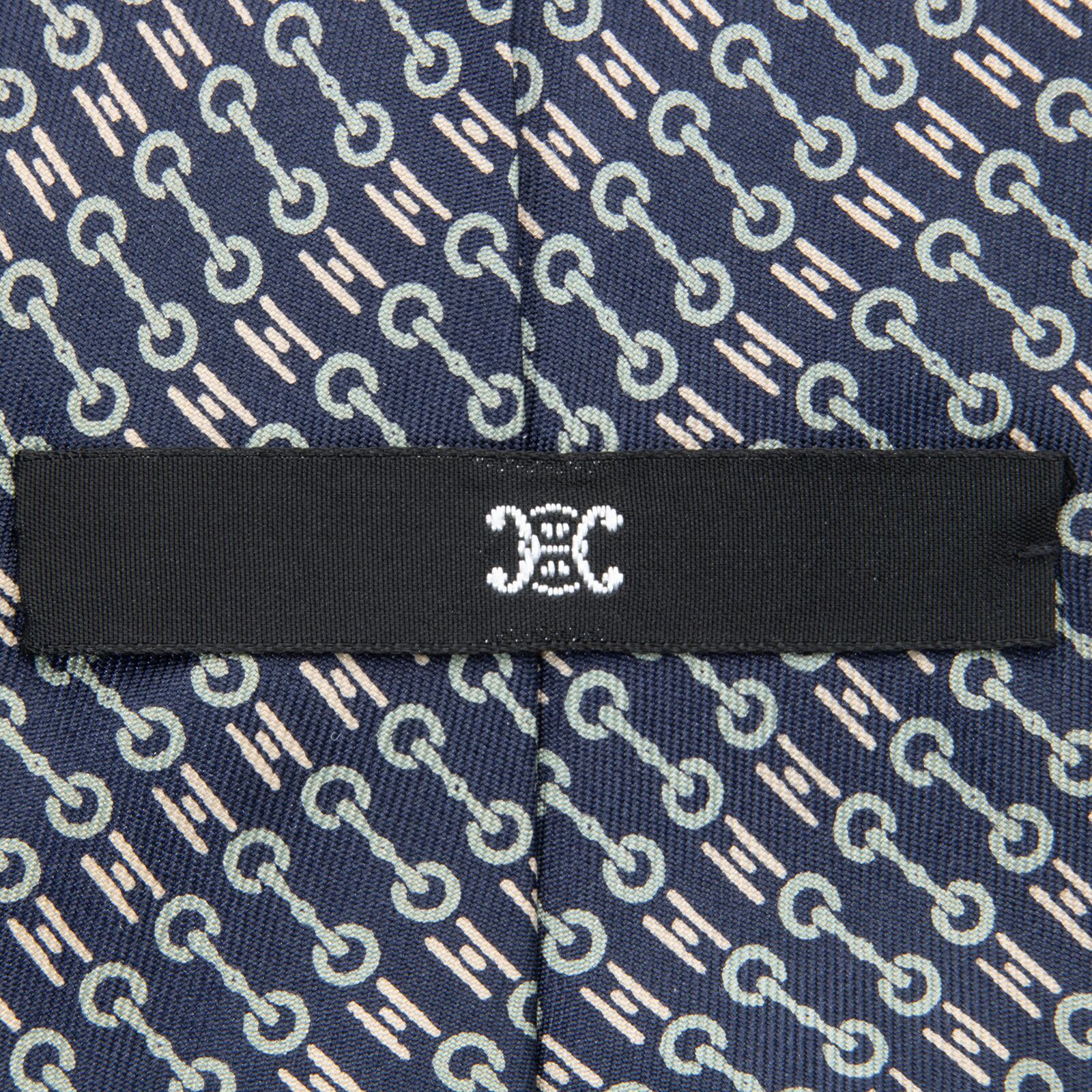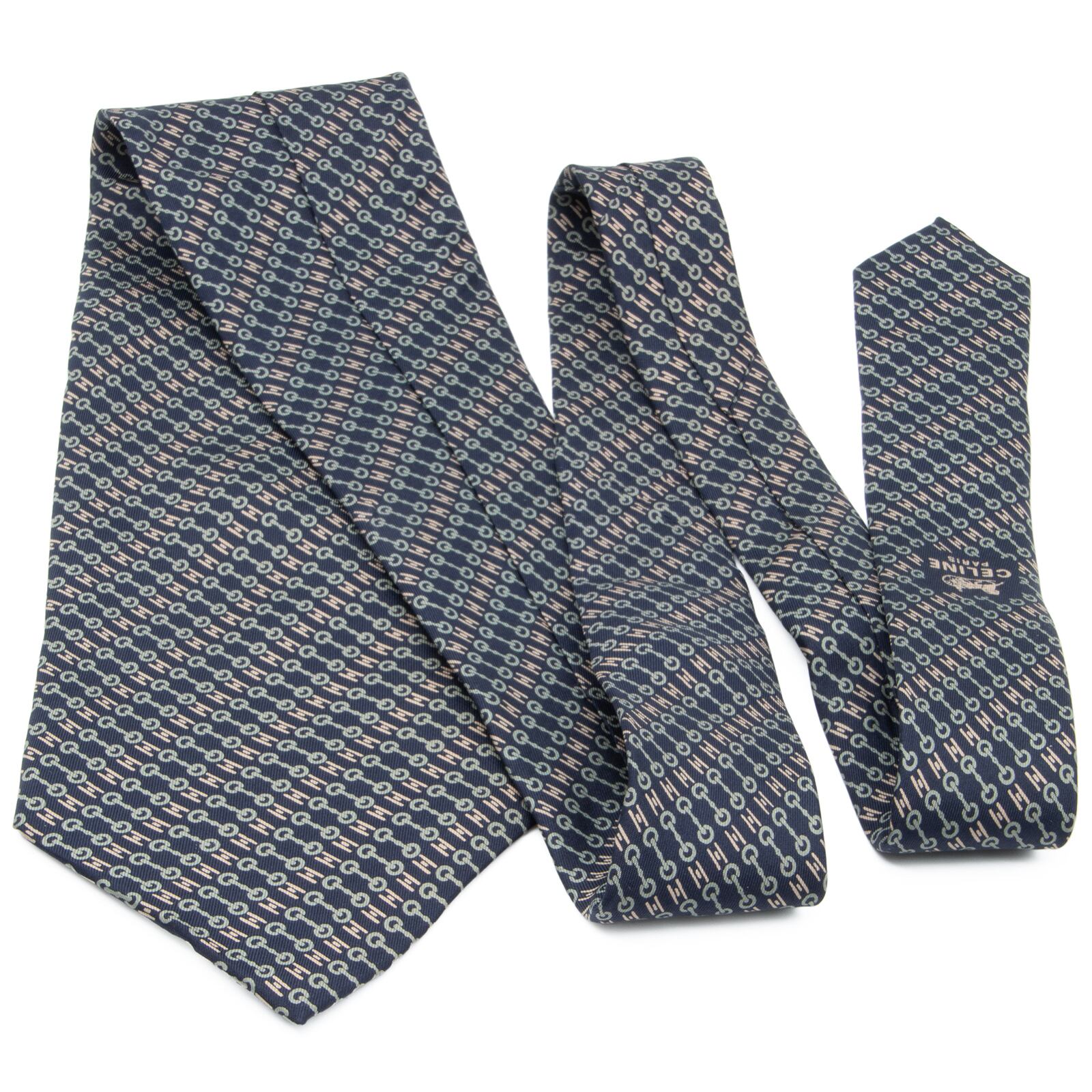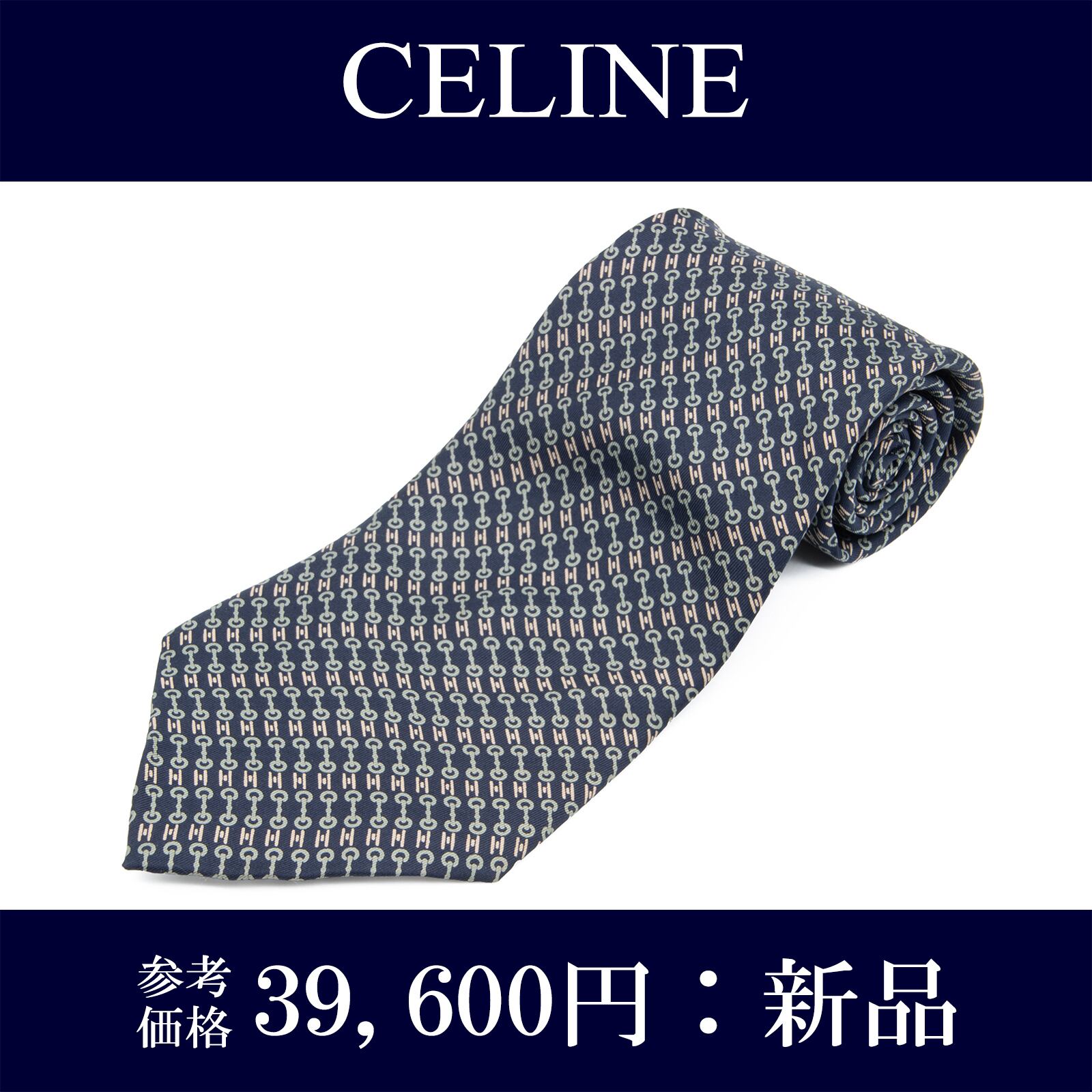 送料無料 セリーヌ ネクタイ 新品 シルク 青 水色 フレンチグレー ベージュ ブランド 人気 ホースビット ロゴ マーク フランス製 綺麗 N694