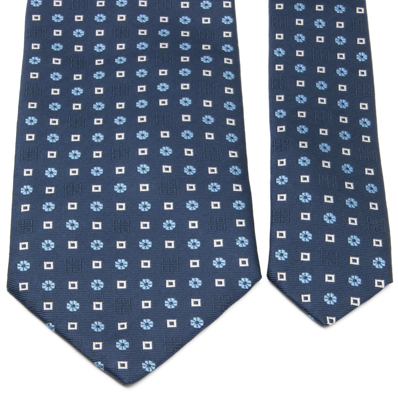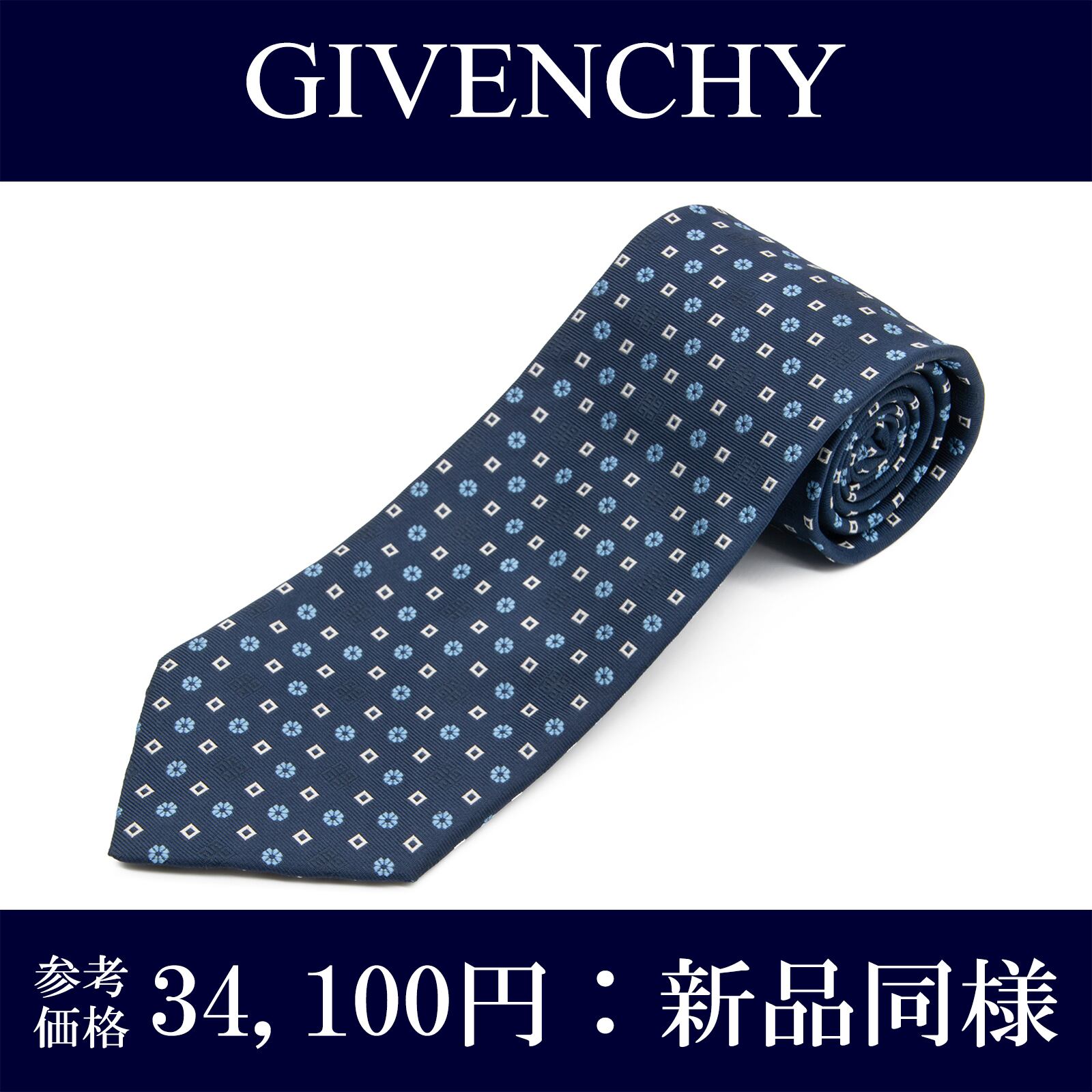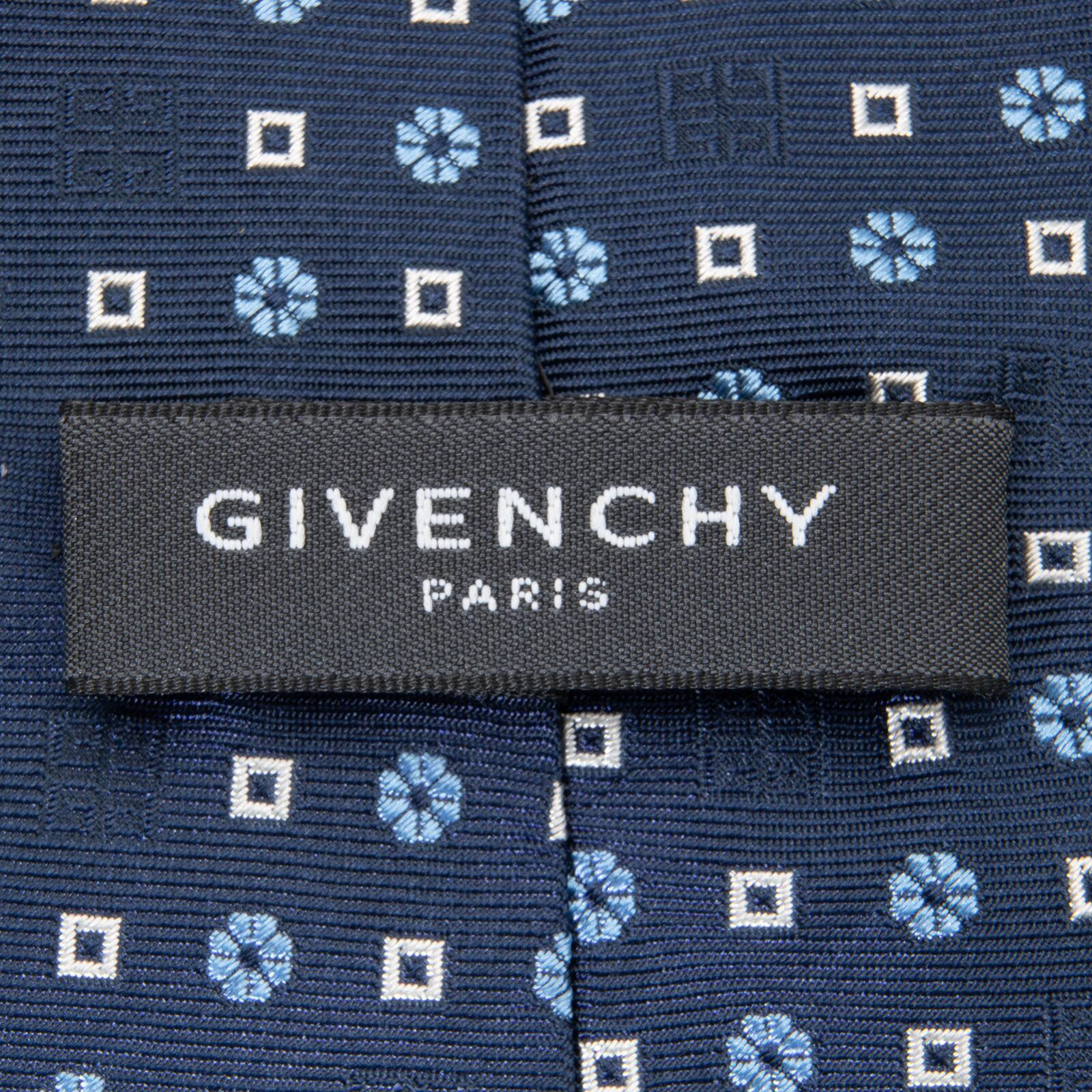 送料無料 ジバンシー ネクタイ ジャガードタイ 新品同様 シルク 青 ネイビーブルー 水色 白 ブランド ロゴ マーク 花 四角 イタリア製 N697