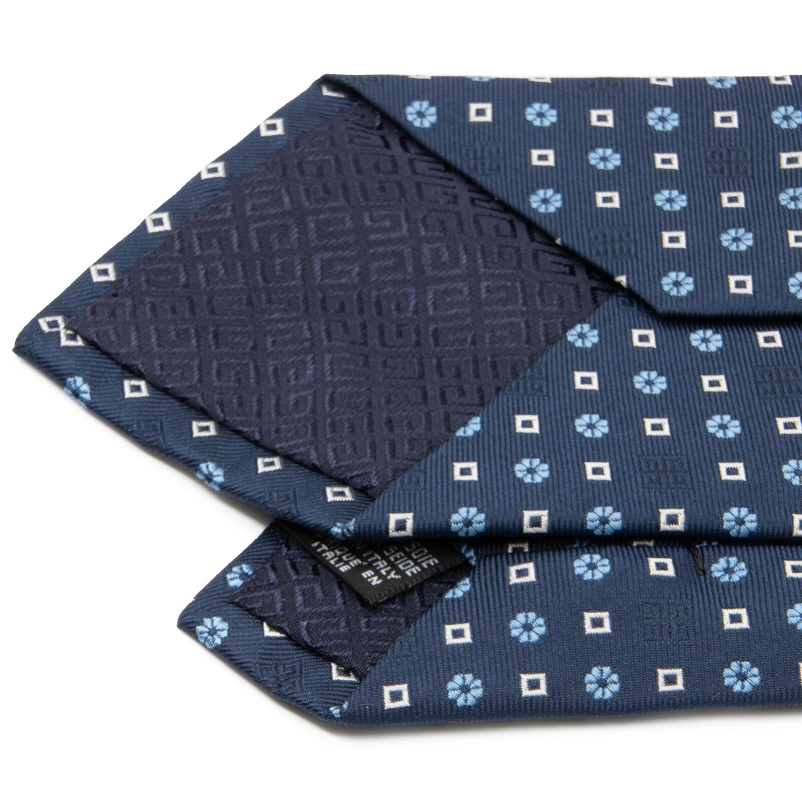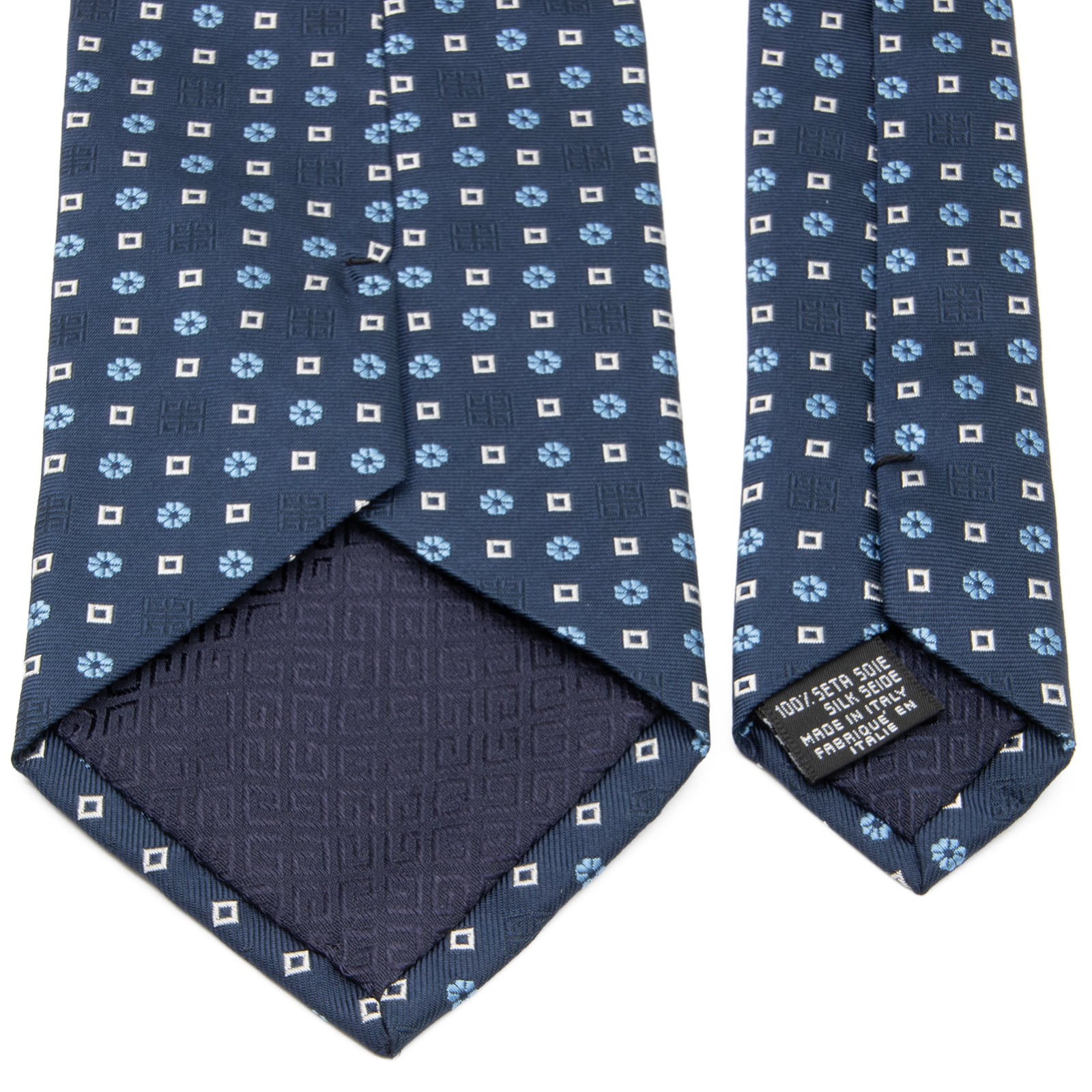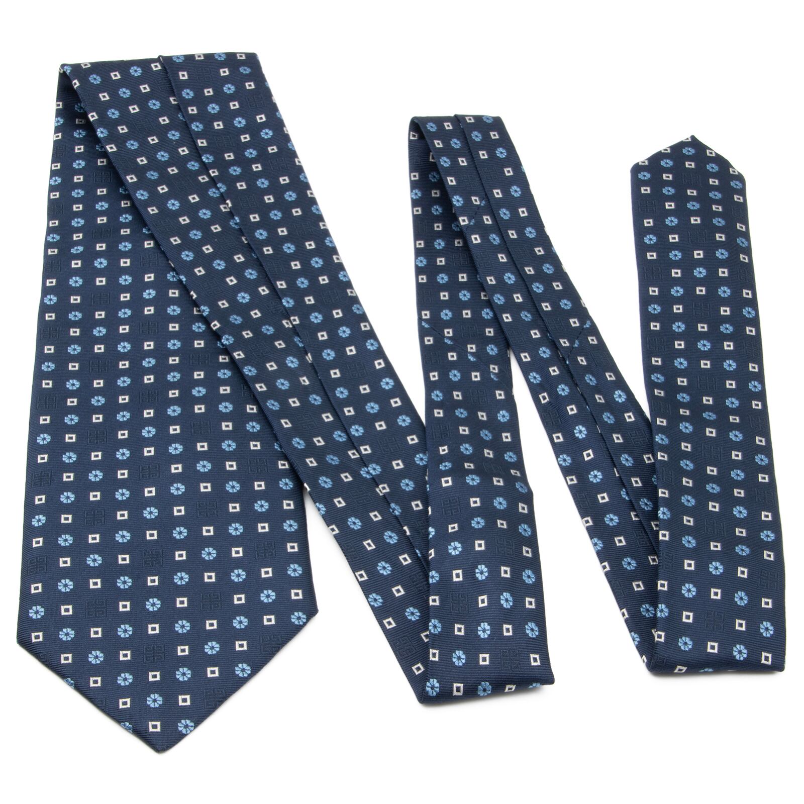 送料無料 ジバンシー ネクタイ ジャガードタイ 新品同様 シルク 青 ネイビーブルー 水色 白 ブランド ロゴ マーク 花 四角 イタリア製 N697