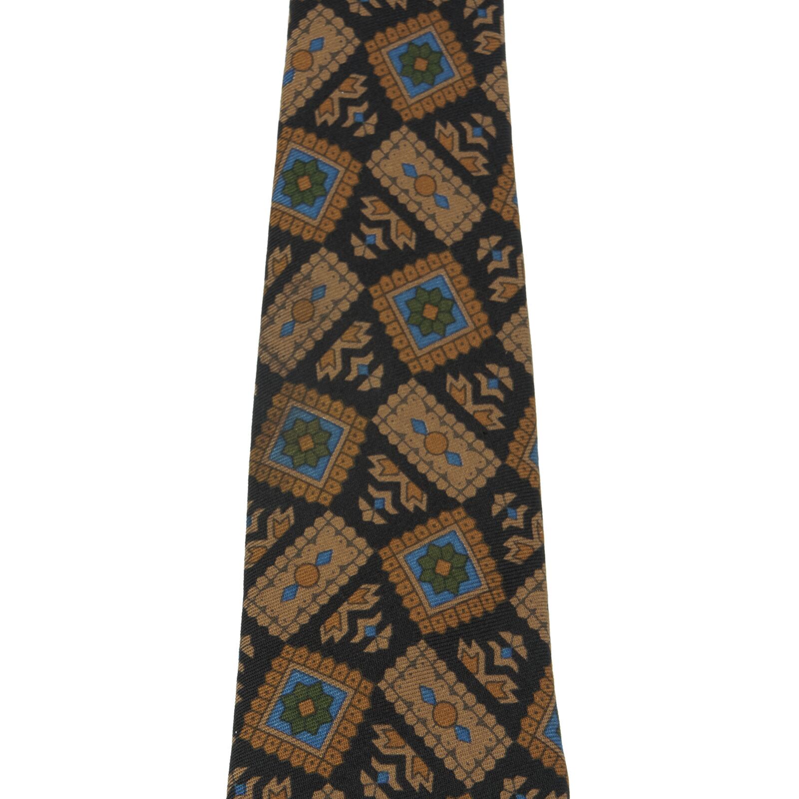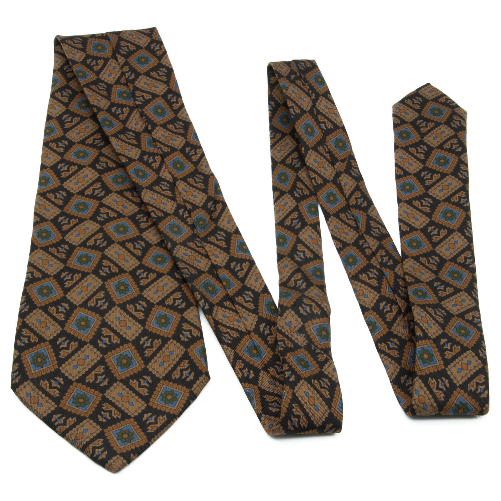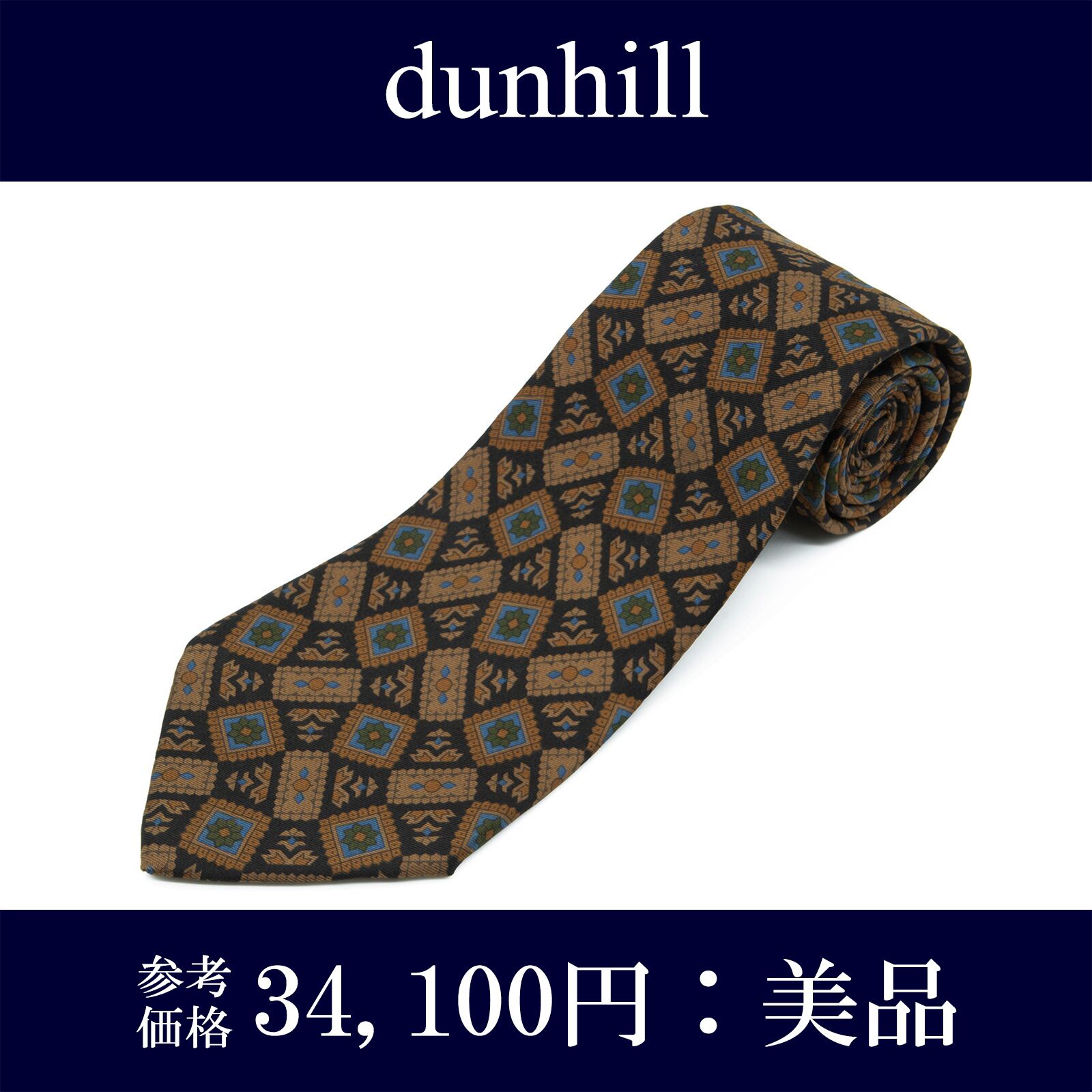 送料無料 ダンヒル ネクタイ シルク 黒 黄土色 茶色 水色 緑 ビジネス カジュアル ブランド 紋様 珍しい おしゃれ イタリア製 綺麗 N707