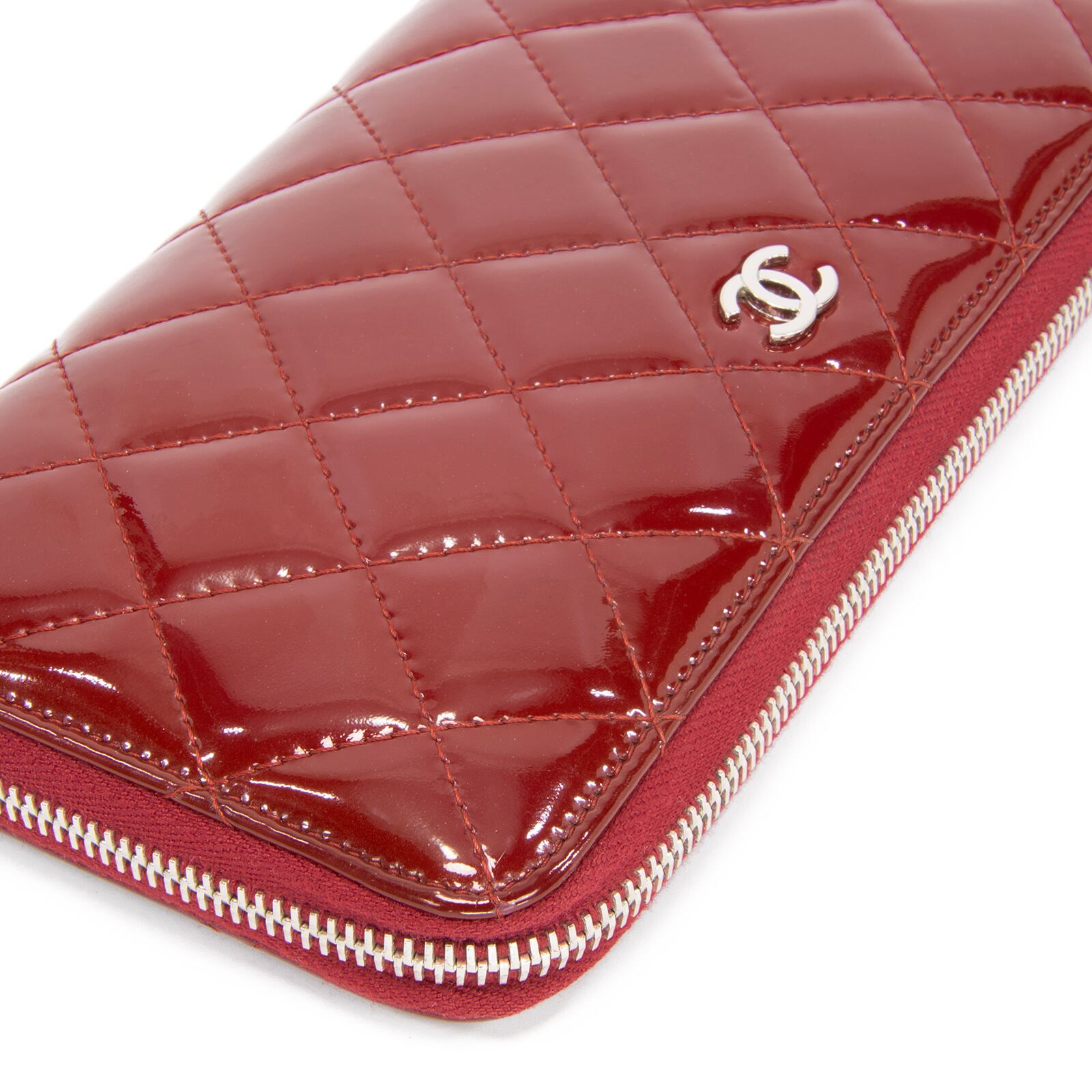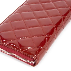 本物 送料無料 シャネル 長財布 ラウンドファスナー レディース エナメル マトラッセ 赤 珍しい レアカラー CCロゴ マーク ステッチ C215