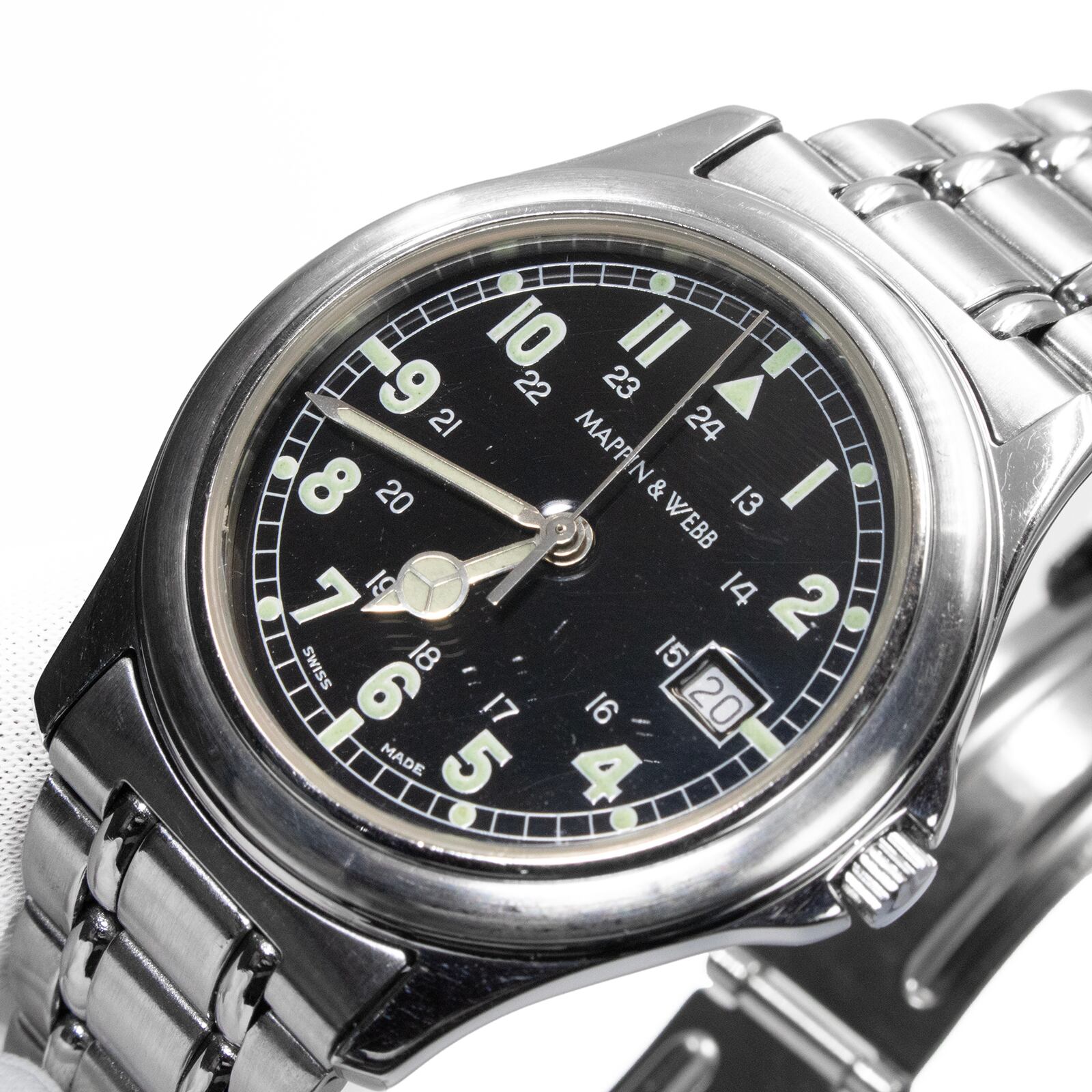 送料無料 マッピン&ウェッブ 腕時計 クォーツ メンズ 黒 ブラック シルバー 珍しい ブランド メルセデス針 ロゴ マーク 薄い スリム X174