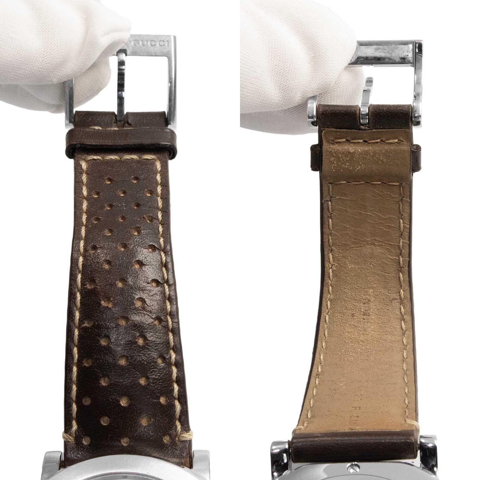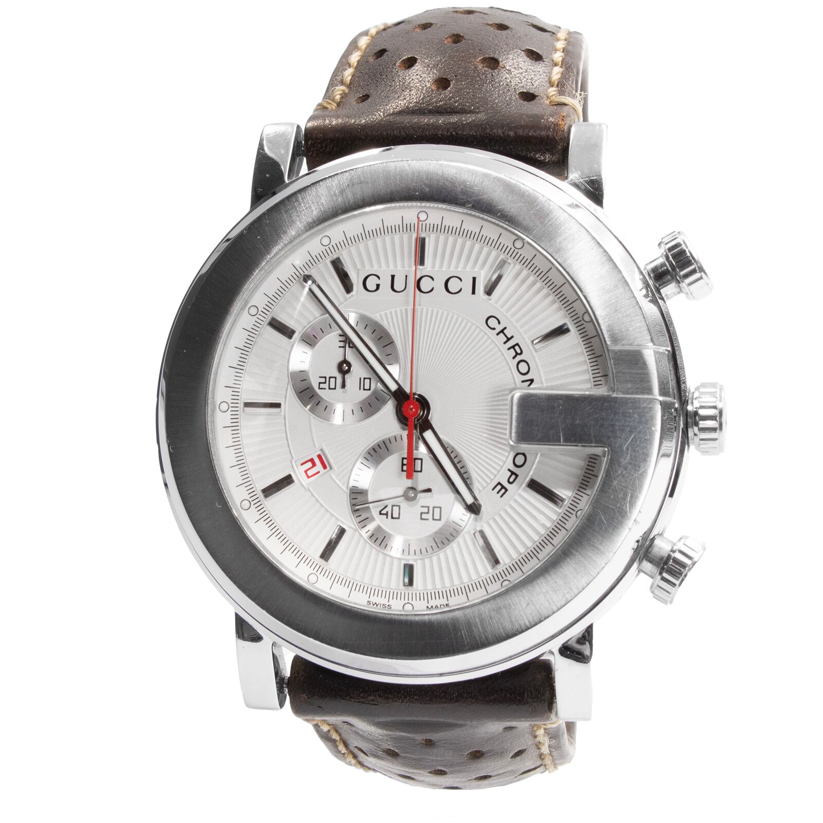 送料無料 グッチ 腕時計 クォーツ メンズ 101M Gクロノ 白 茶色 人気 クロノグラフ ロゴ マーク 本革 レザー ブランド おしゃれ 綺麗 X176