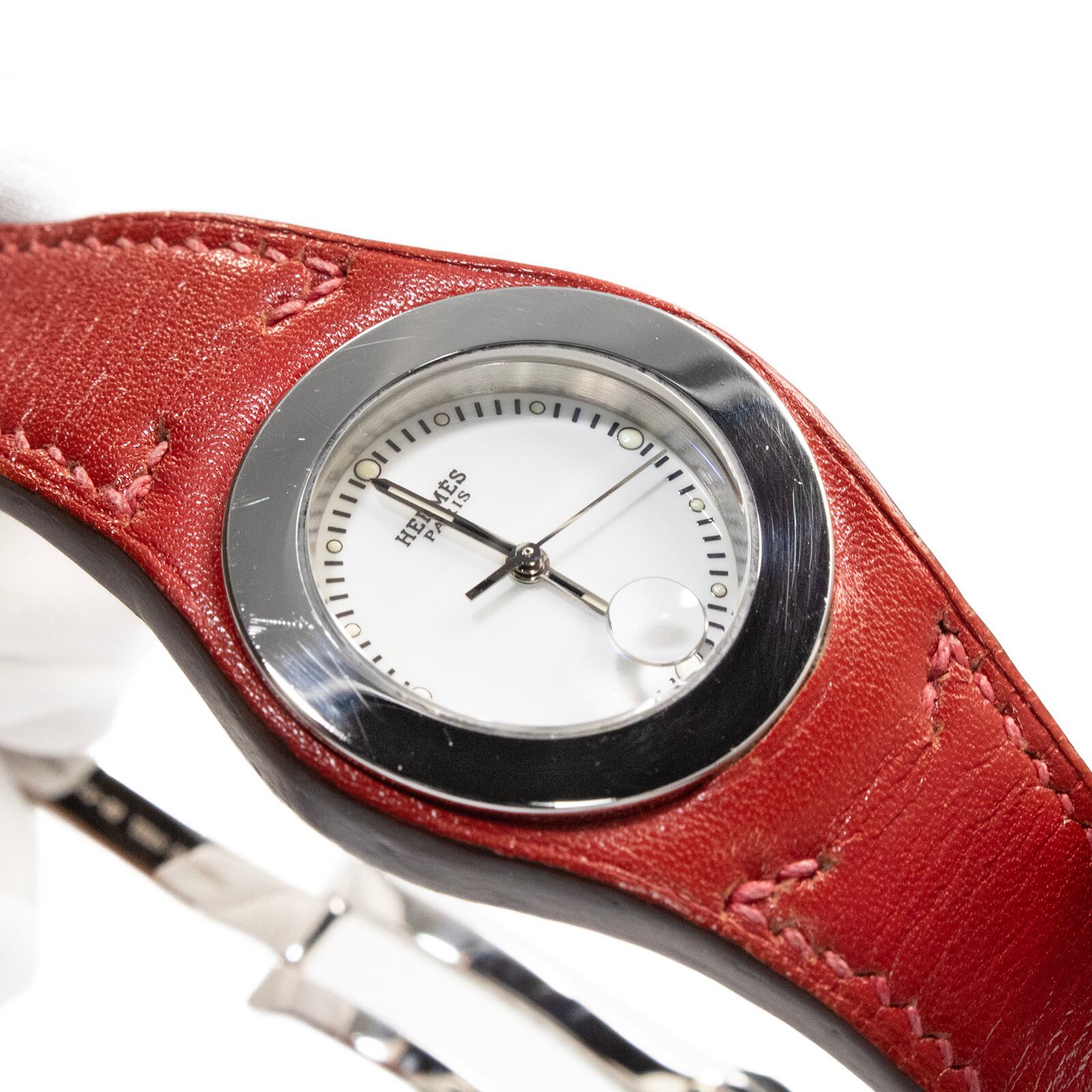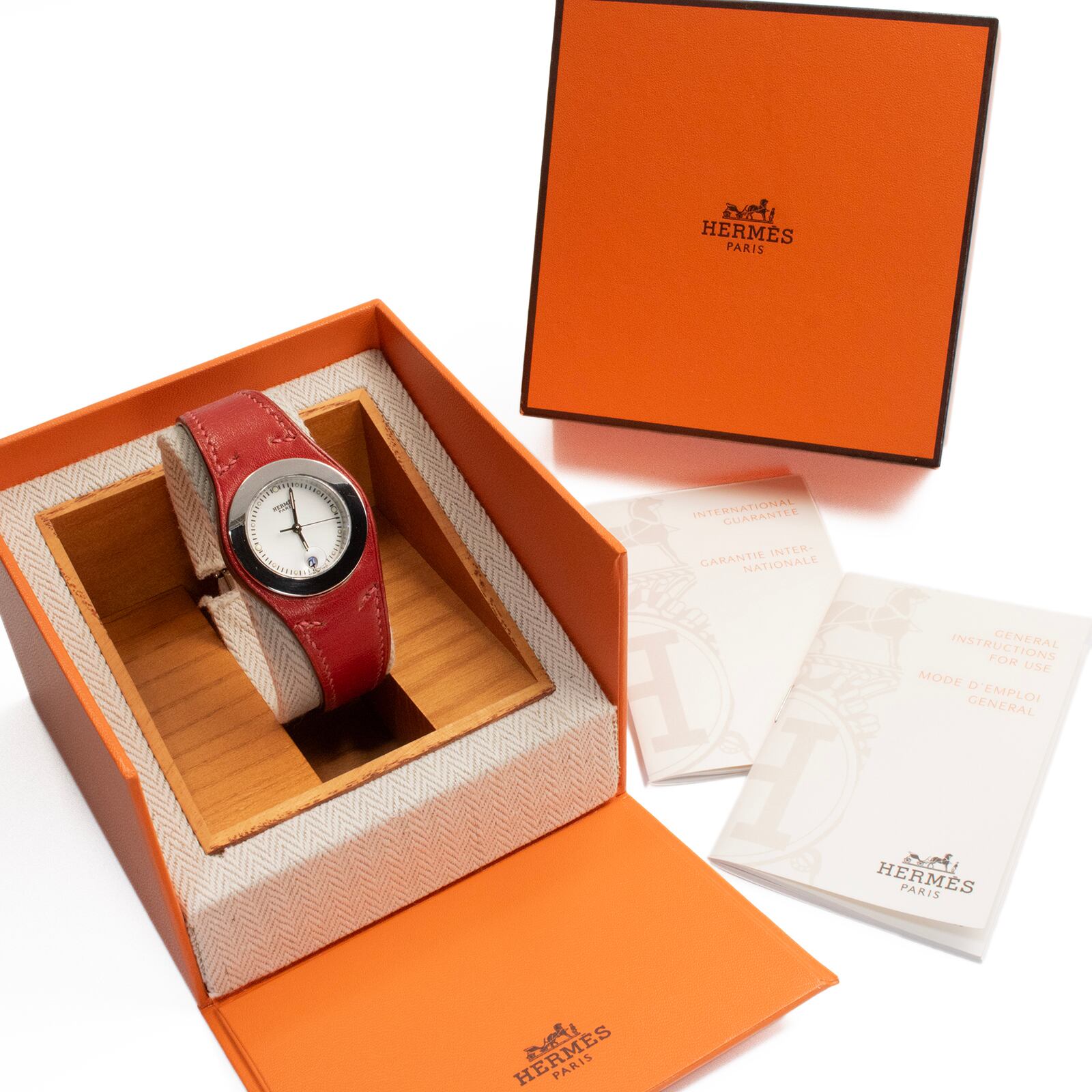 送料無料 エルメス 腕時計 クォーツ レディース アーネ HA3.210 白 ホワイト 赤 レッド 人気 高級 ロゴ マーク 本革 おしゃれ 綺麗 X177