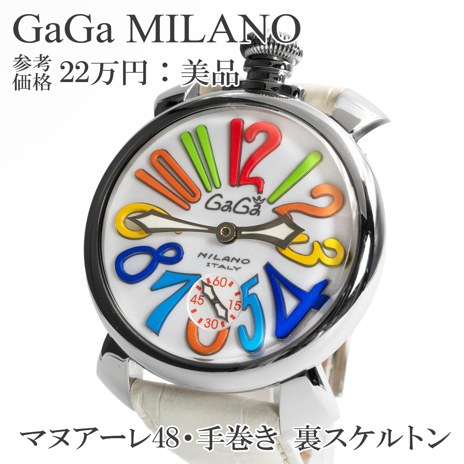 送料無料 ガガミラノ 腕時計 手巻き式 メンズ マヌアーレ48mm 5010.01S 白 橙 水色 緑 青 派手 目立つ ロゴ 裏スケルトン カラフル Q087