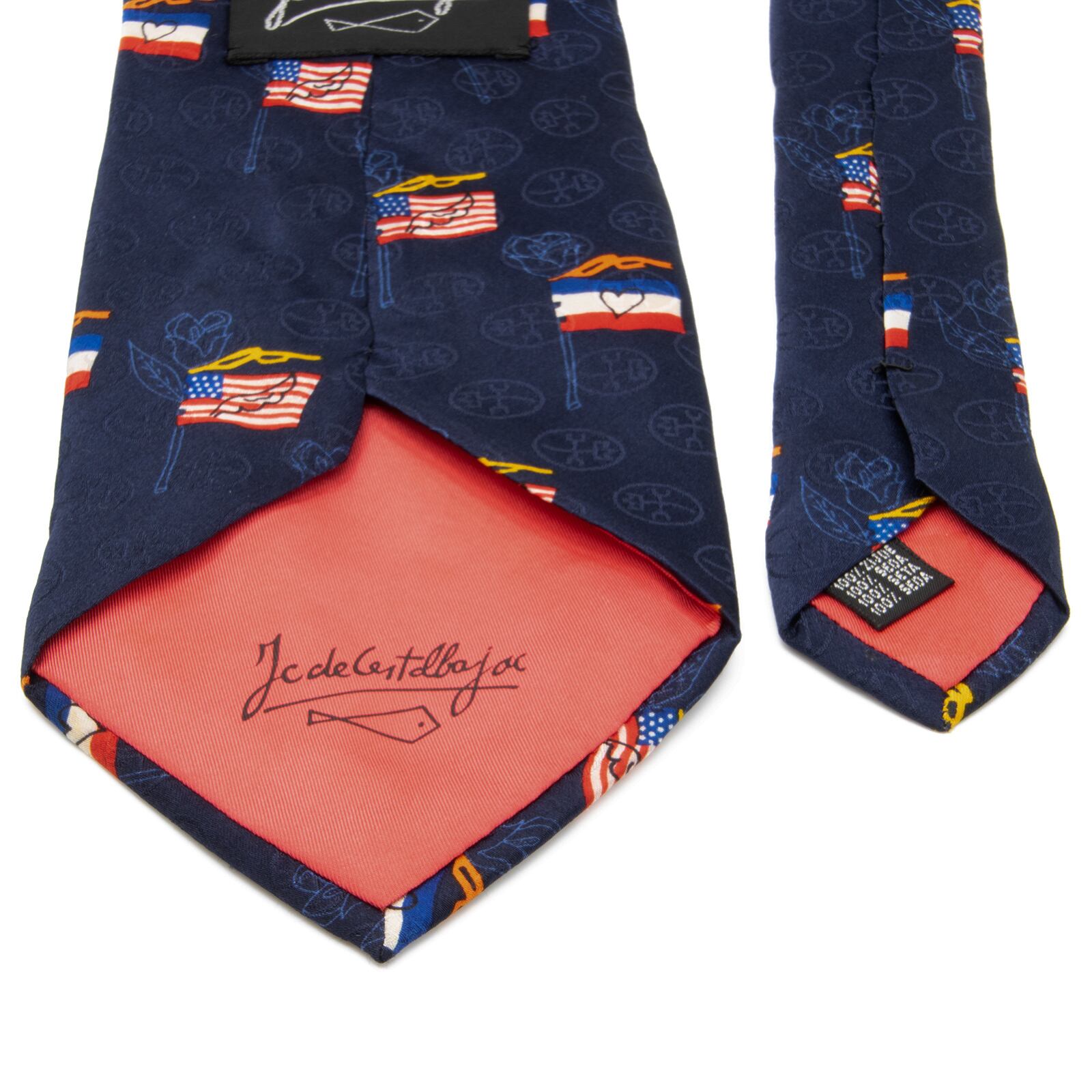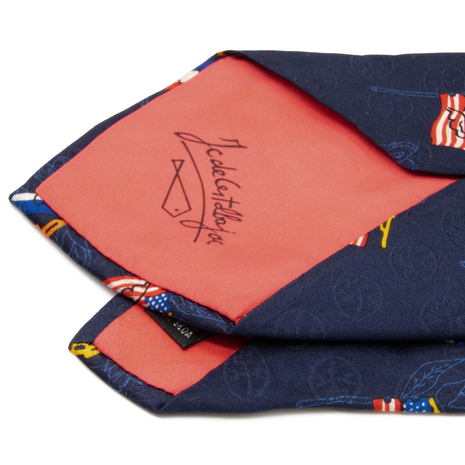 送料無料 カステルバジャック ネクタイ シルク 青 白 赤 橙 黄色 ブランド 珍しい 人気 ロゴ マーク 国旗 おしゃれ イタリア製 綺麗 N210