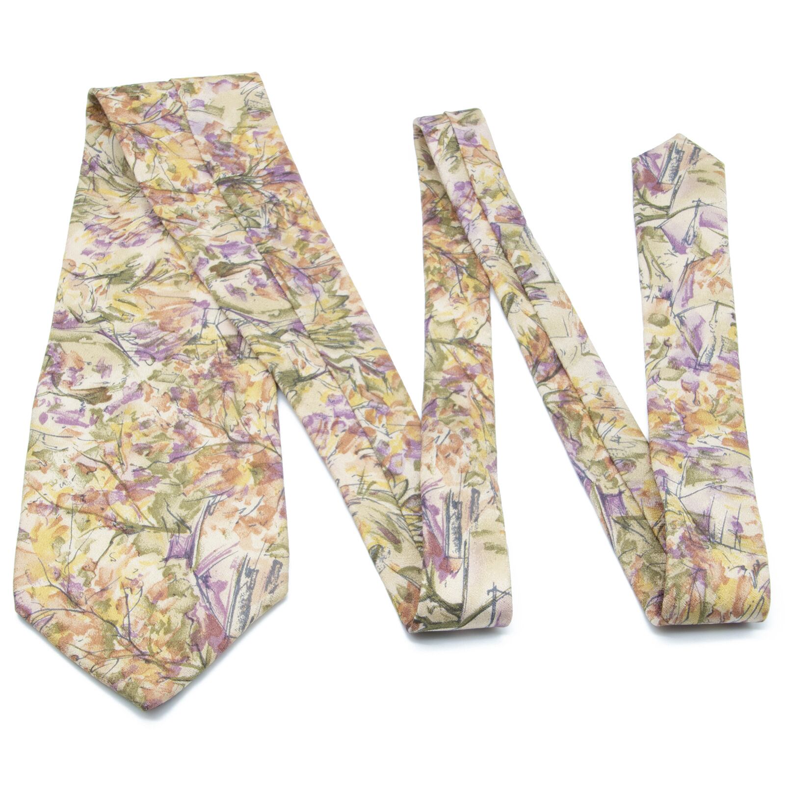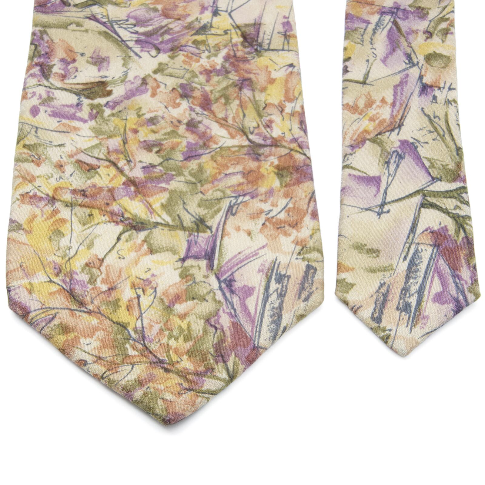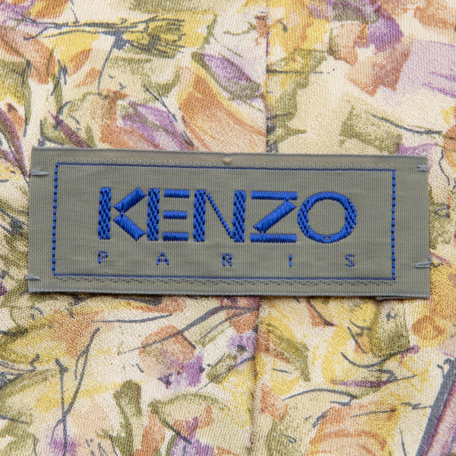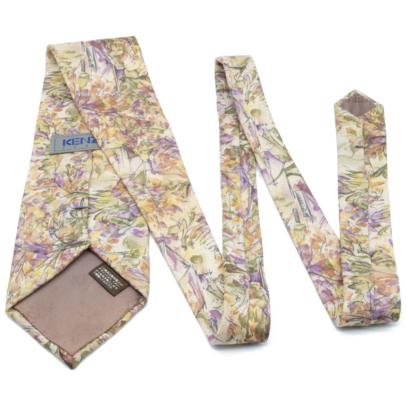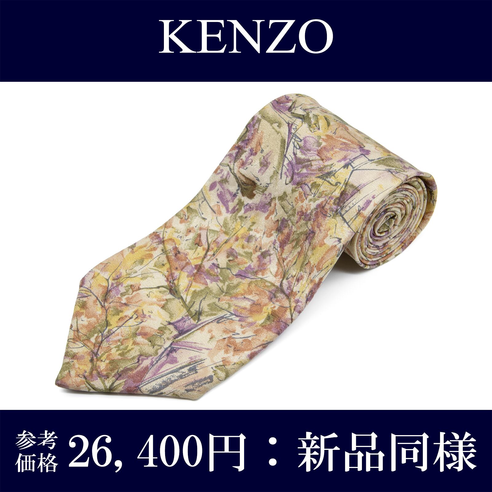 送料無料 ケンゾー ネクタイ レギュラータイ 新品同様 シルク アイボリー 緑 紫 茶色 ブランド 人気 珍しい 木 ツリー 家 街並み 自然 N272