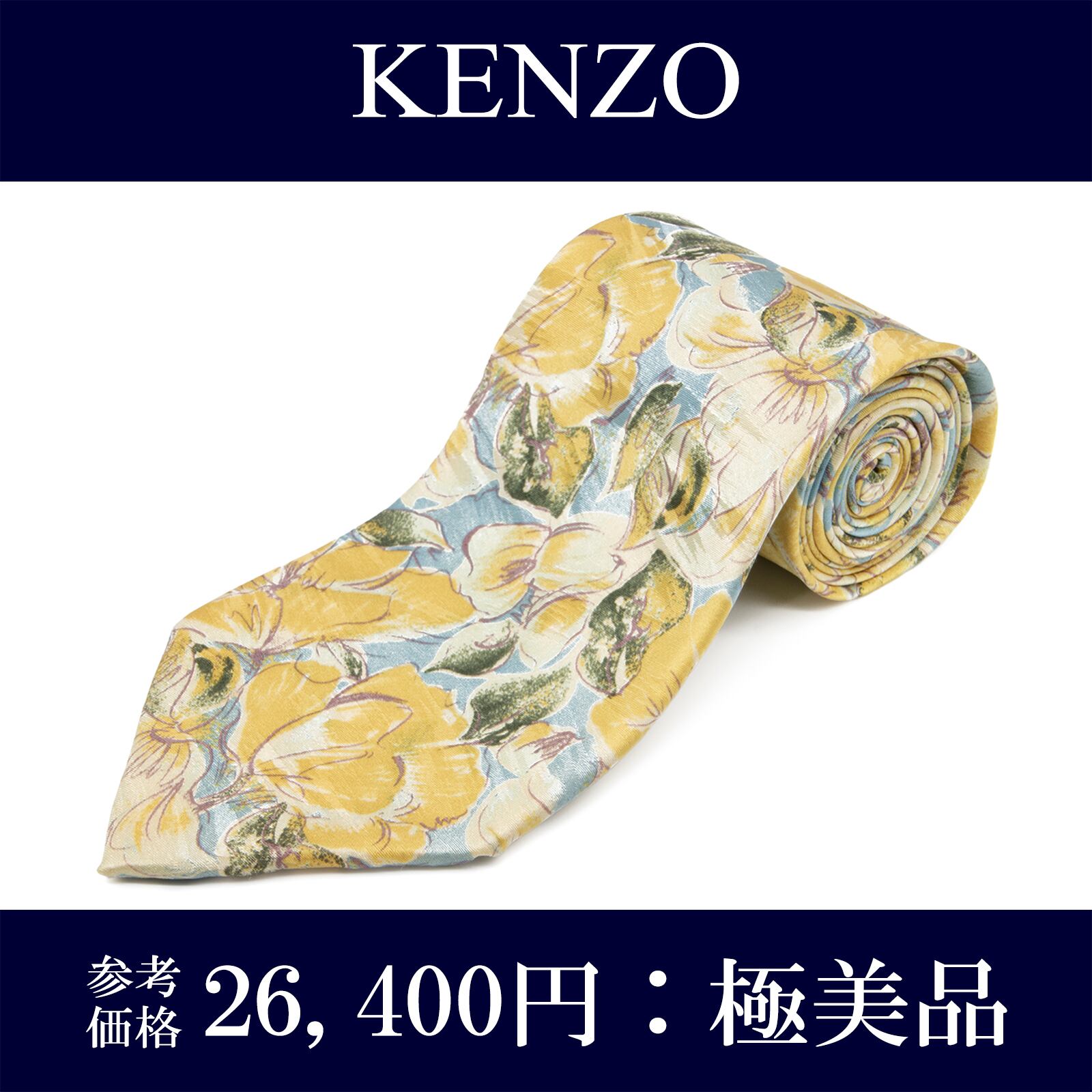 送料無料 ケンゾー ネクタイ レギュラータイ シルク 水色 黄色 アイボリー 緑 ブランド 花 フラワー 珍しい かわいい おしゃれ 綺麗 N273