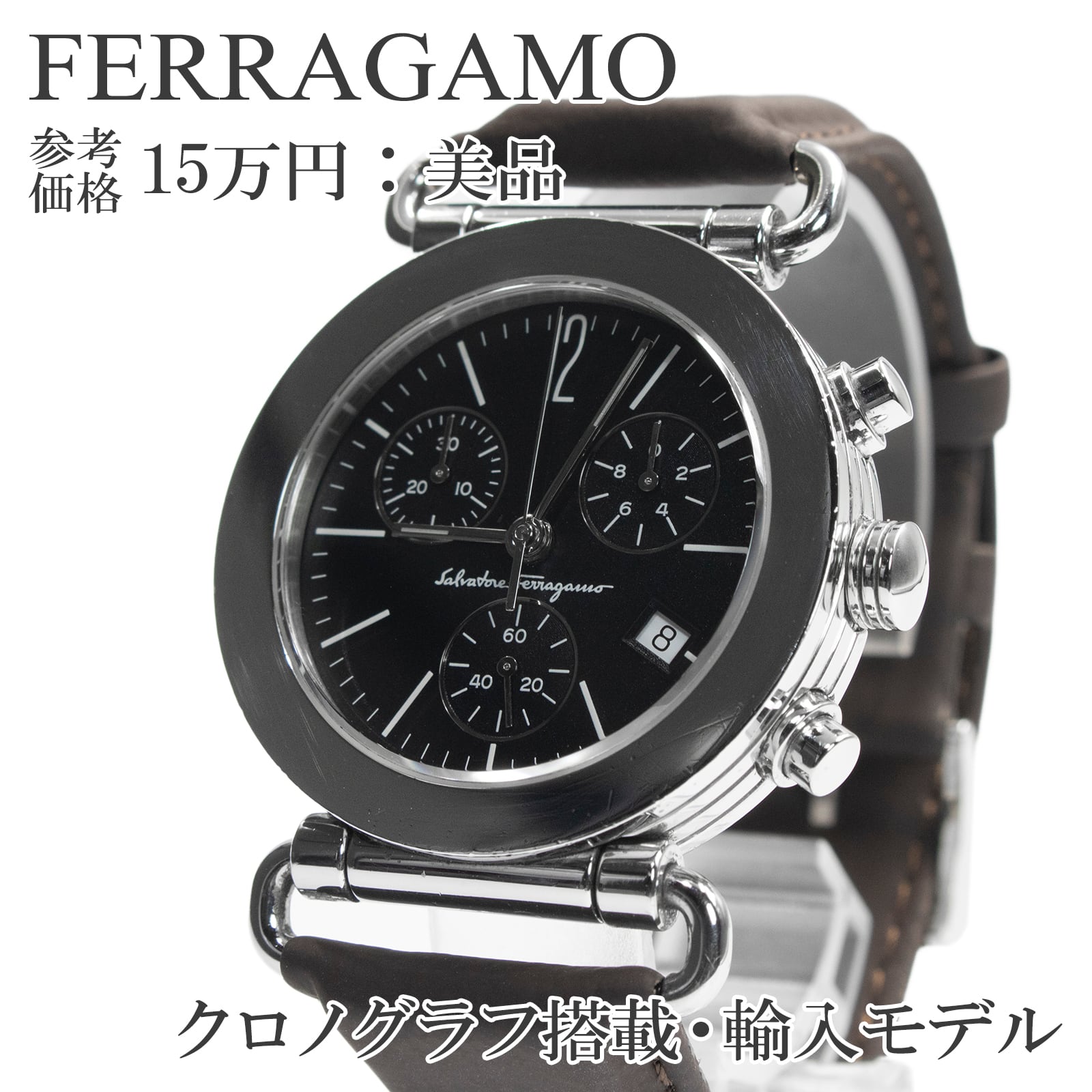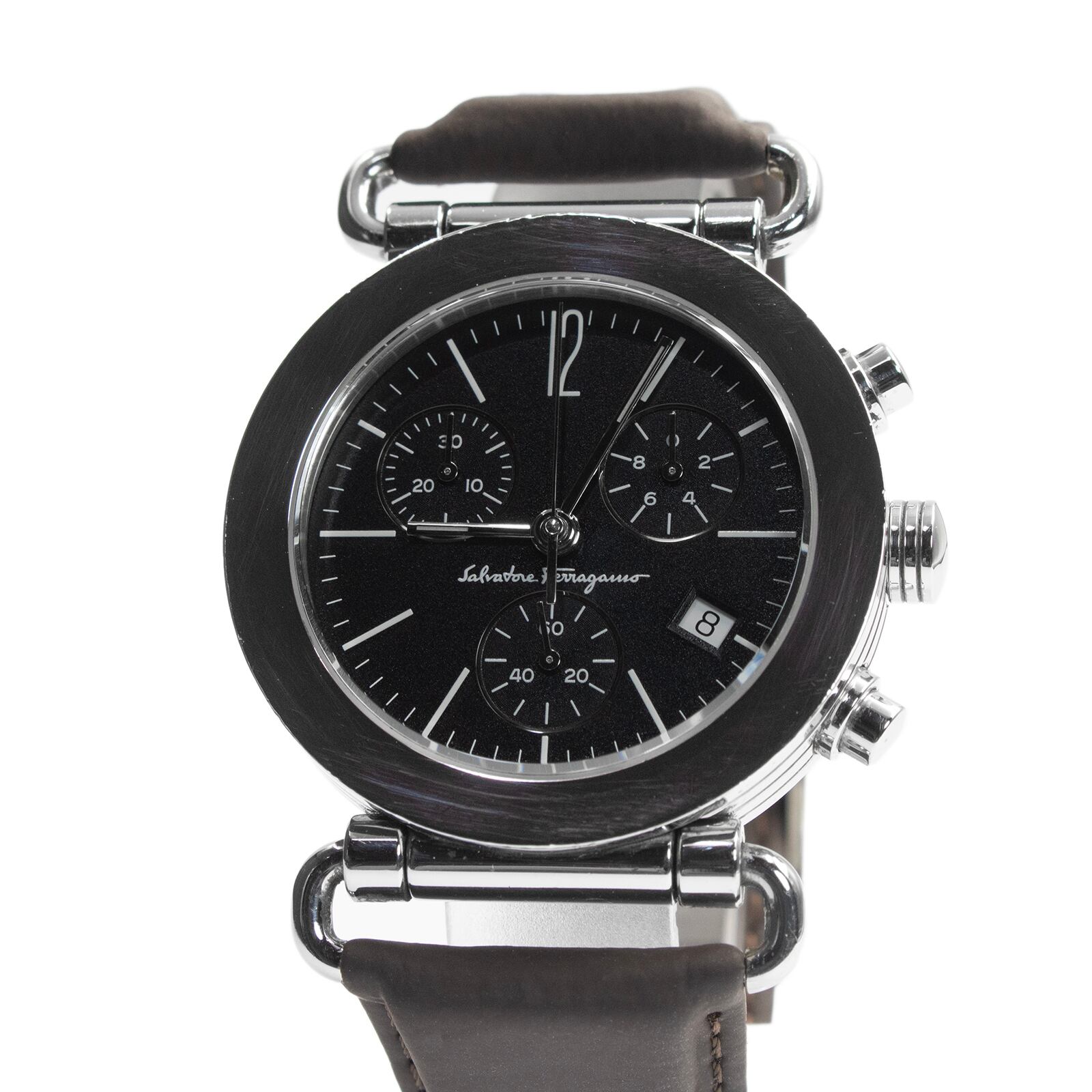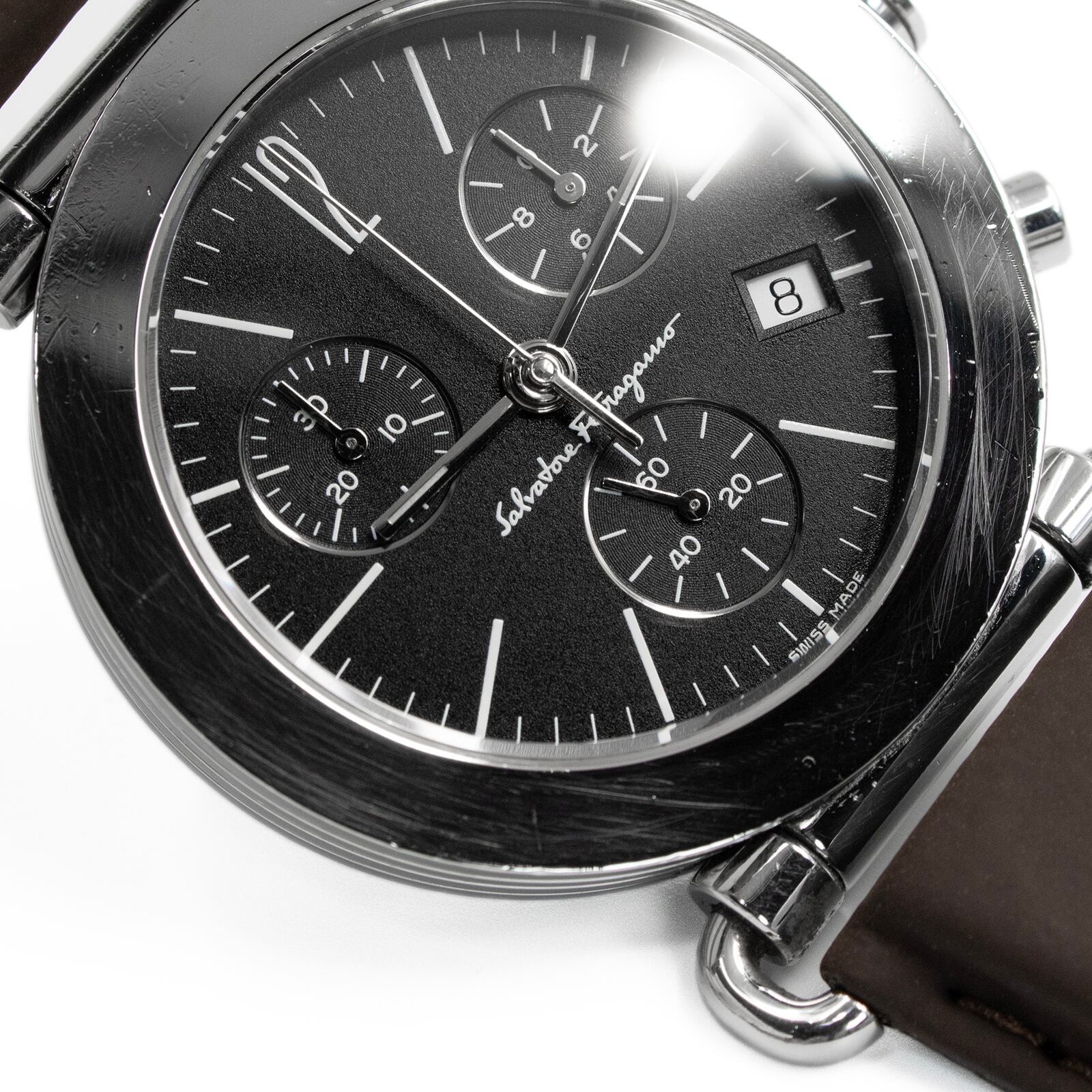 送料無料 フェラガモ 腕時計 クォーツ メンズ 黒 茶色 ダークブラウン クロノグラフ ロゴ ブランド 珍しい おしゃれ スイス製 綺麗 X180