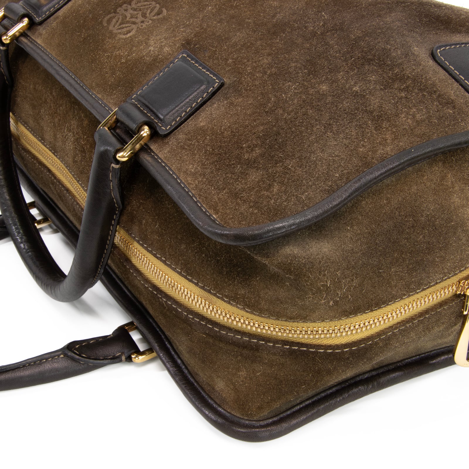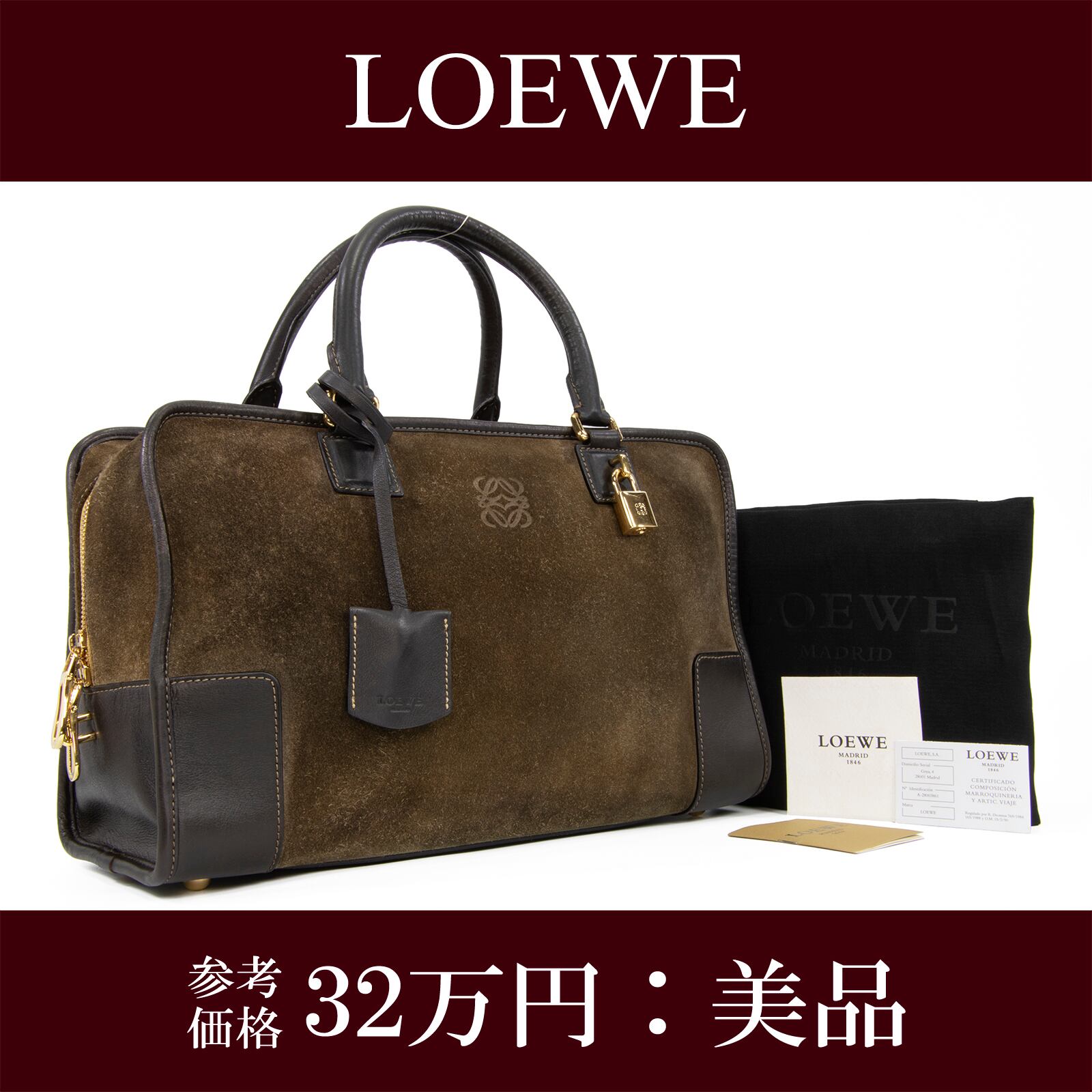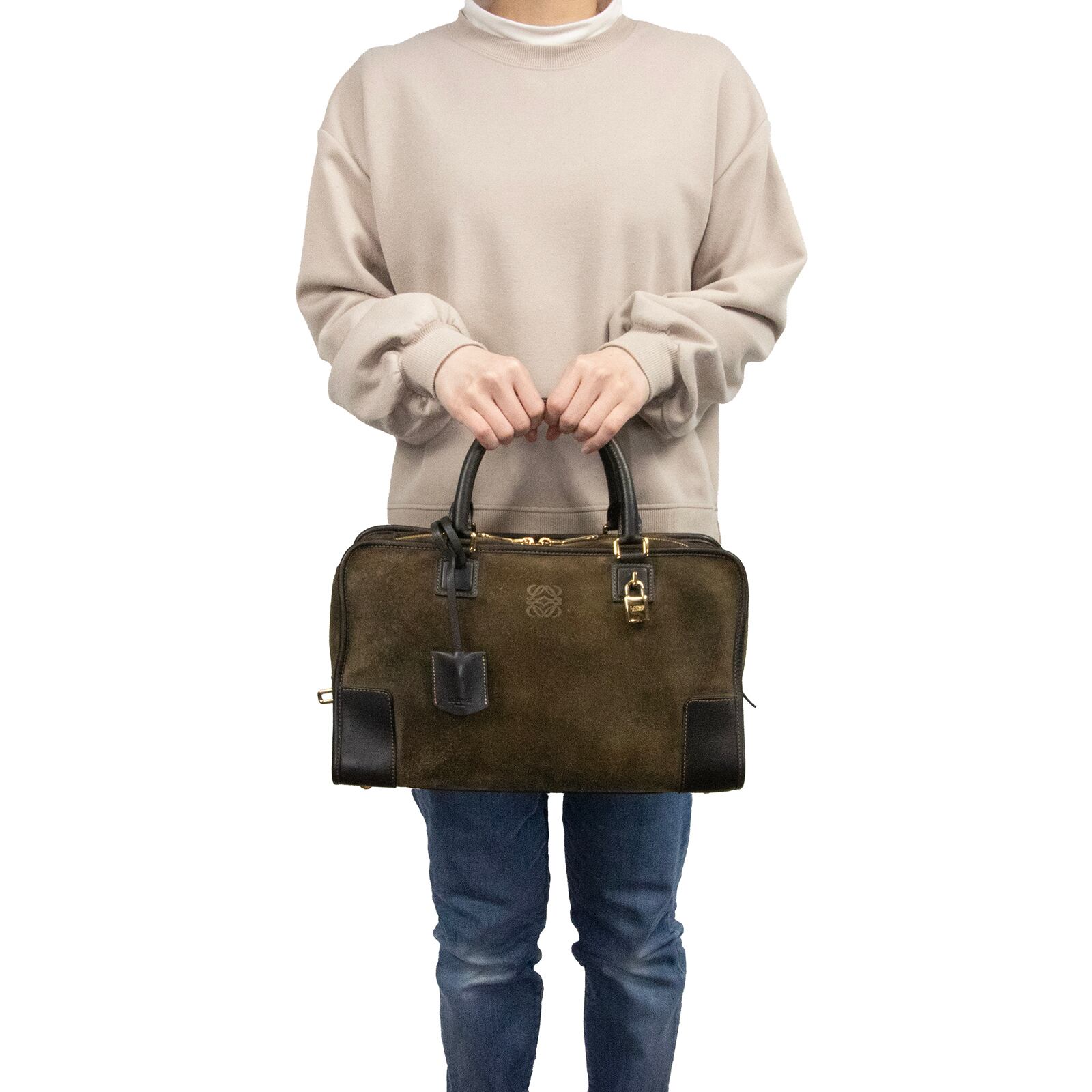 本物 送料無料 ロエベ ミニボストン ハンドバッグ メンズ レディース アマソナ36 茶色 A4対応 アナグラム ロゴ マーク 本革 鞄 バック F250