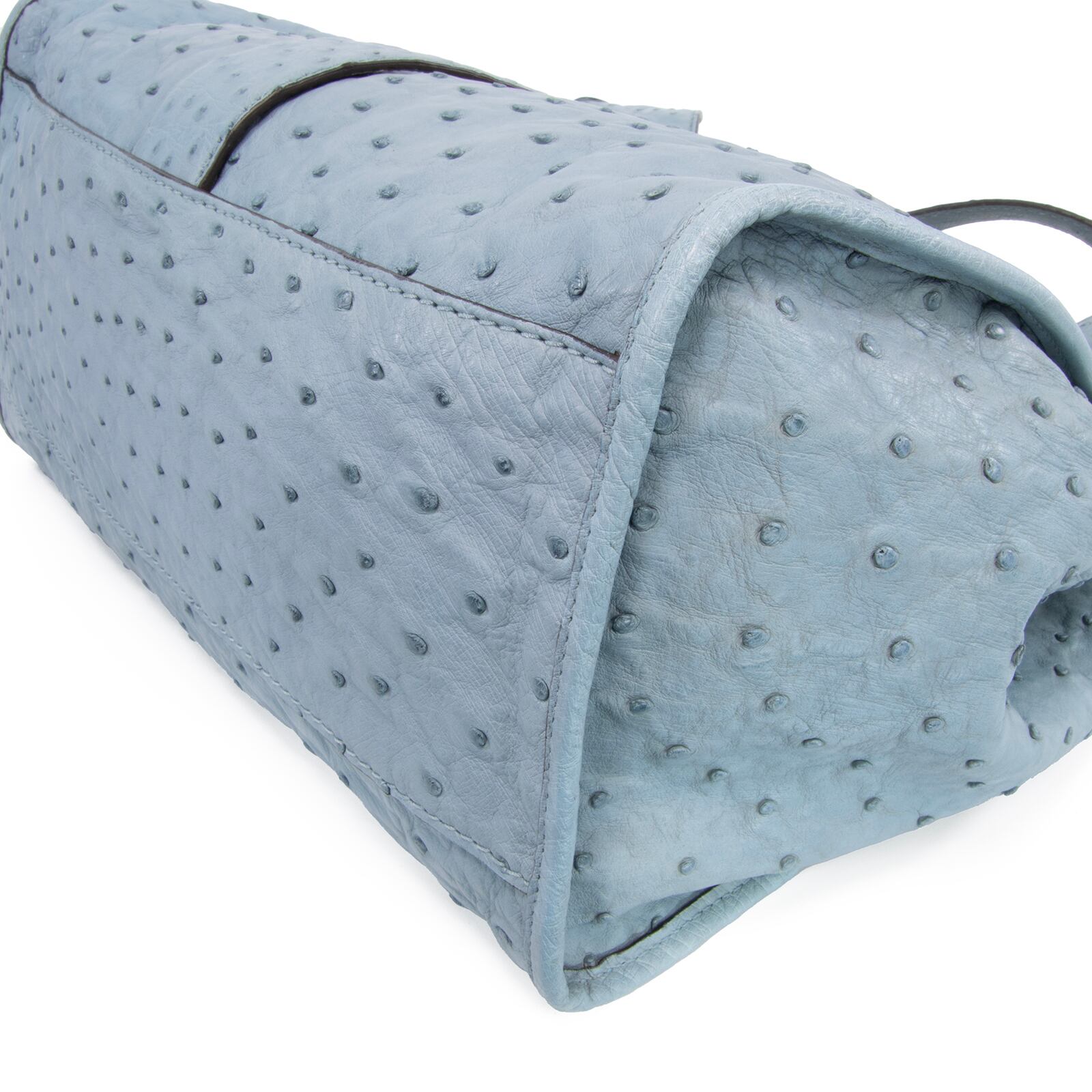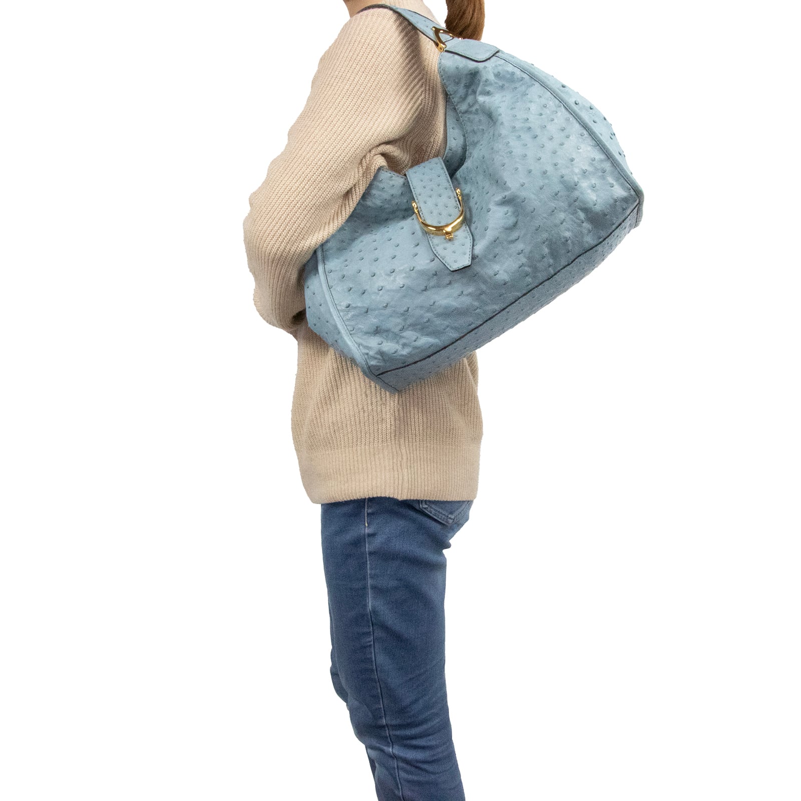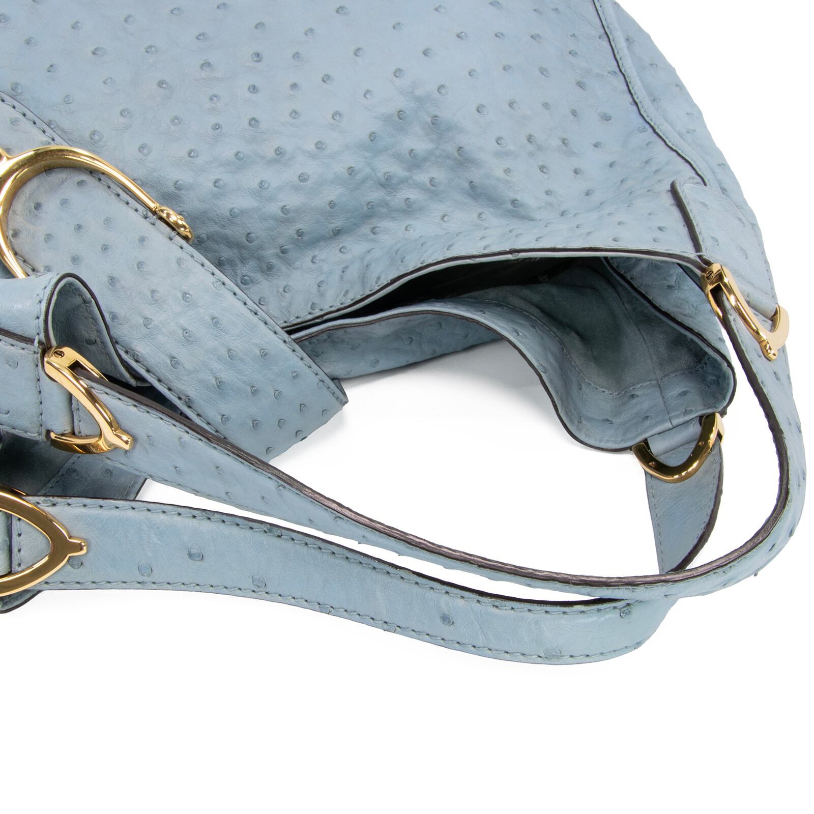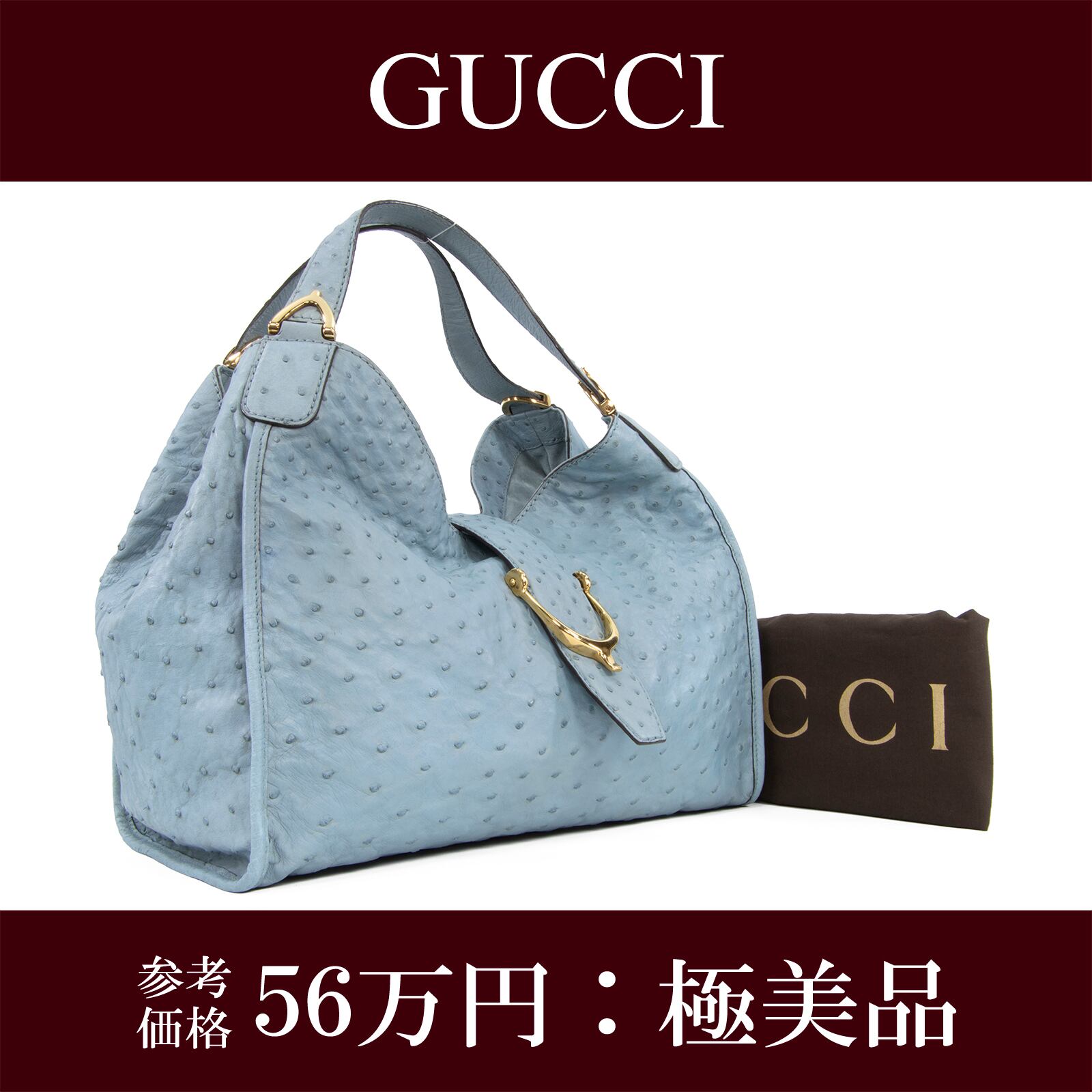 本物 送料無料 グッチ トートバッグ レディース オーストリッチ スティラップ 水色 最高級 A4対応 本革 エキゾチックレザー 鞄 バック F251