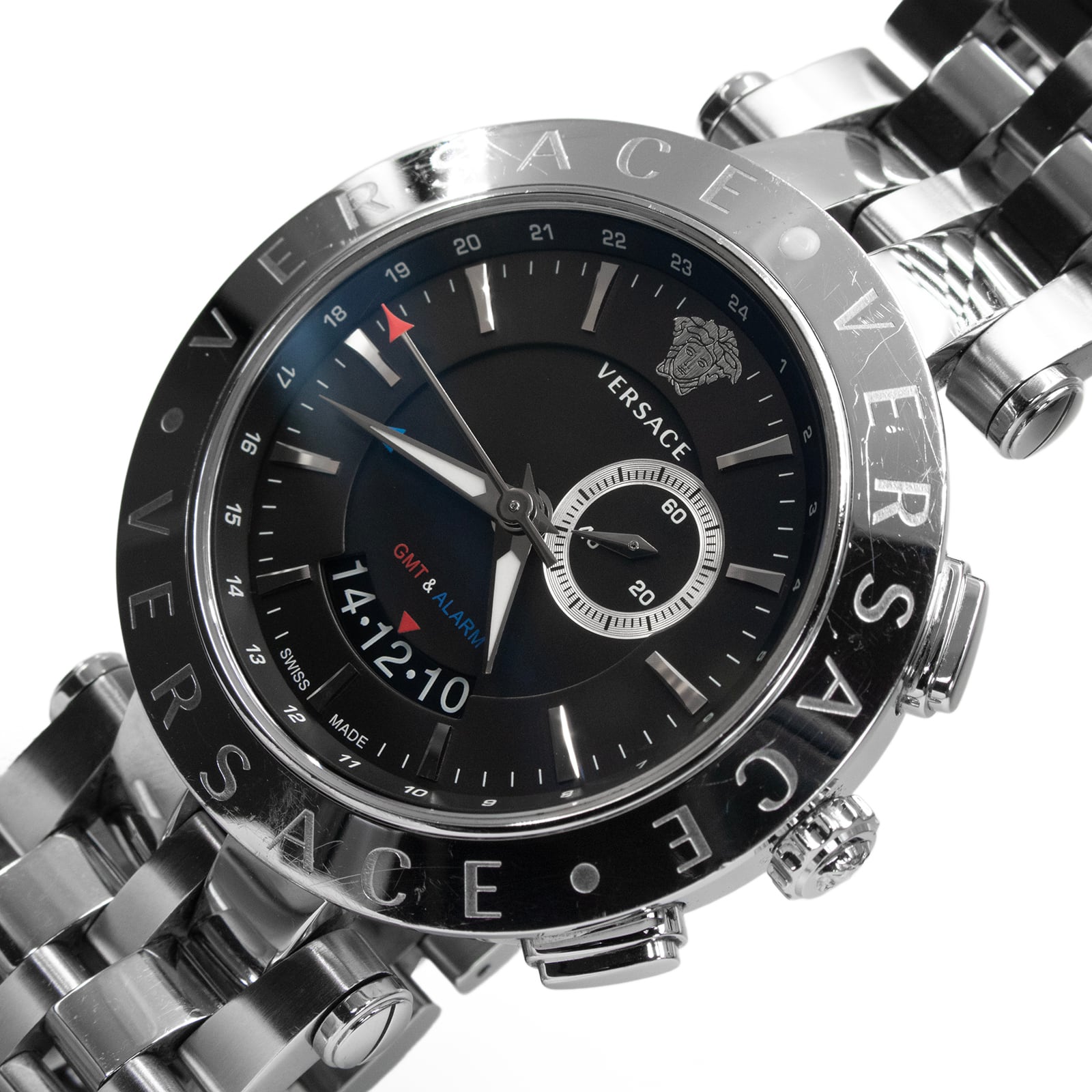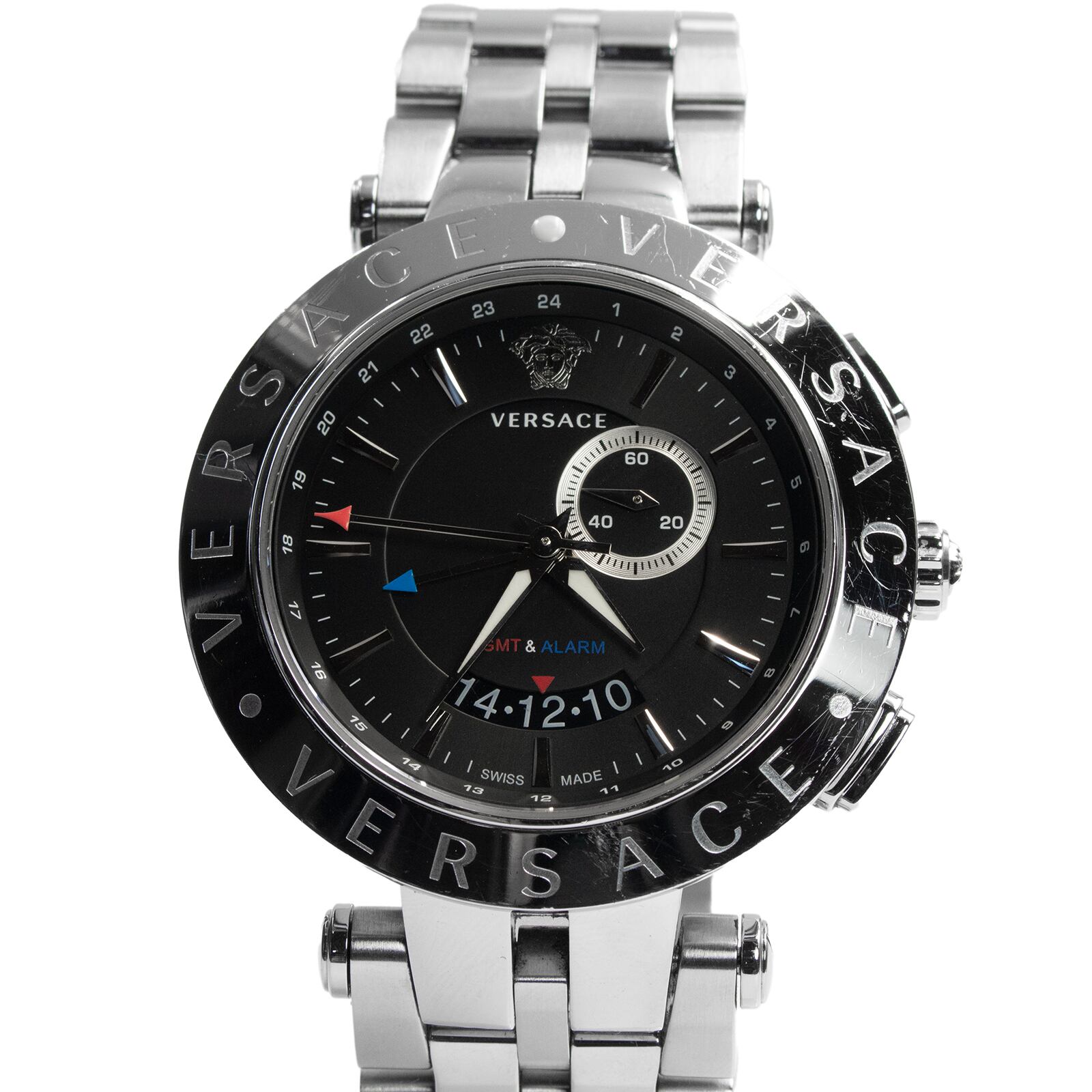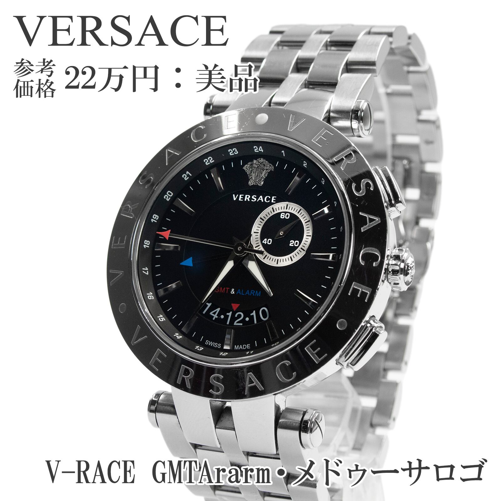 送料無料 ヴェルサーチェ 腕時計 クォーツ メンズ Vレース GMTアラーム 黒 珍しい 目立つ メドゥーサロゴ マーク ブランド おしゃれ Q092