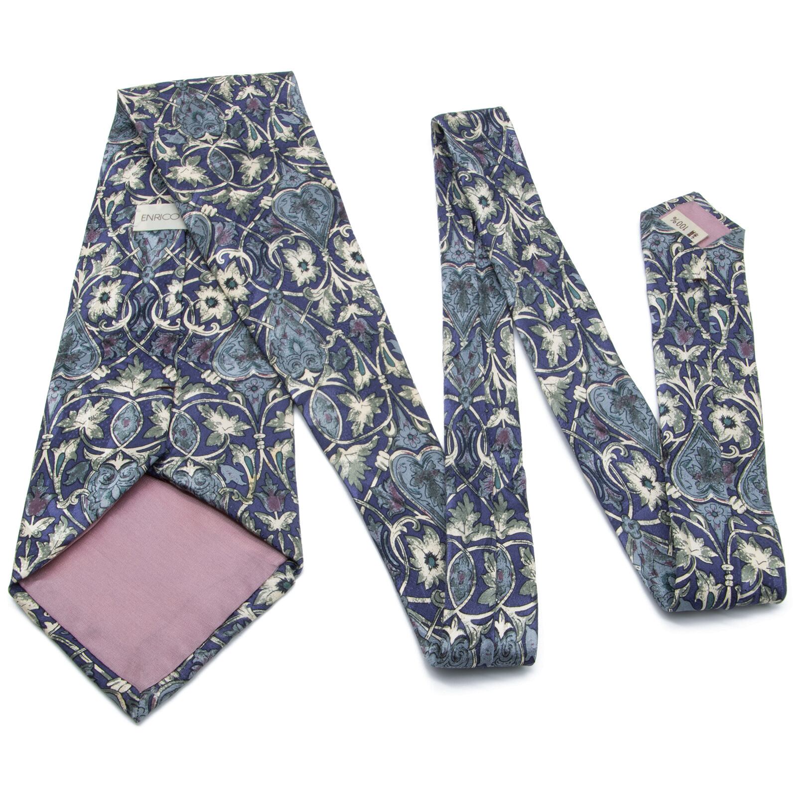 送料無料 エンリコサーチ ネクタイ シルク 青 水色 アイボリー ビジネス カジュアル ブランド 珍しい 光沢 花 フラワー おしゃれ 綺麗 N180