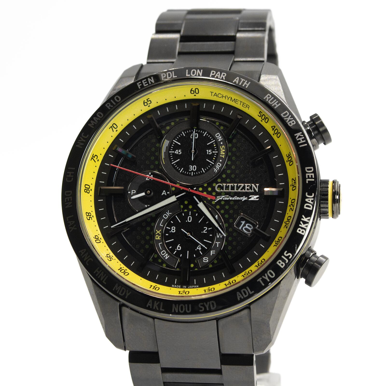 送料無料 シチズン 腕時計 ソーラー電波 メンズ ATTESA H804-T027679 日産 フェアレディZ 黒 黄色 エコドライブ クロノグラフ ロゴ X192