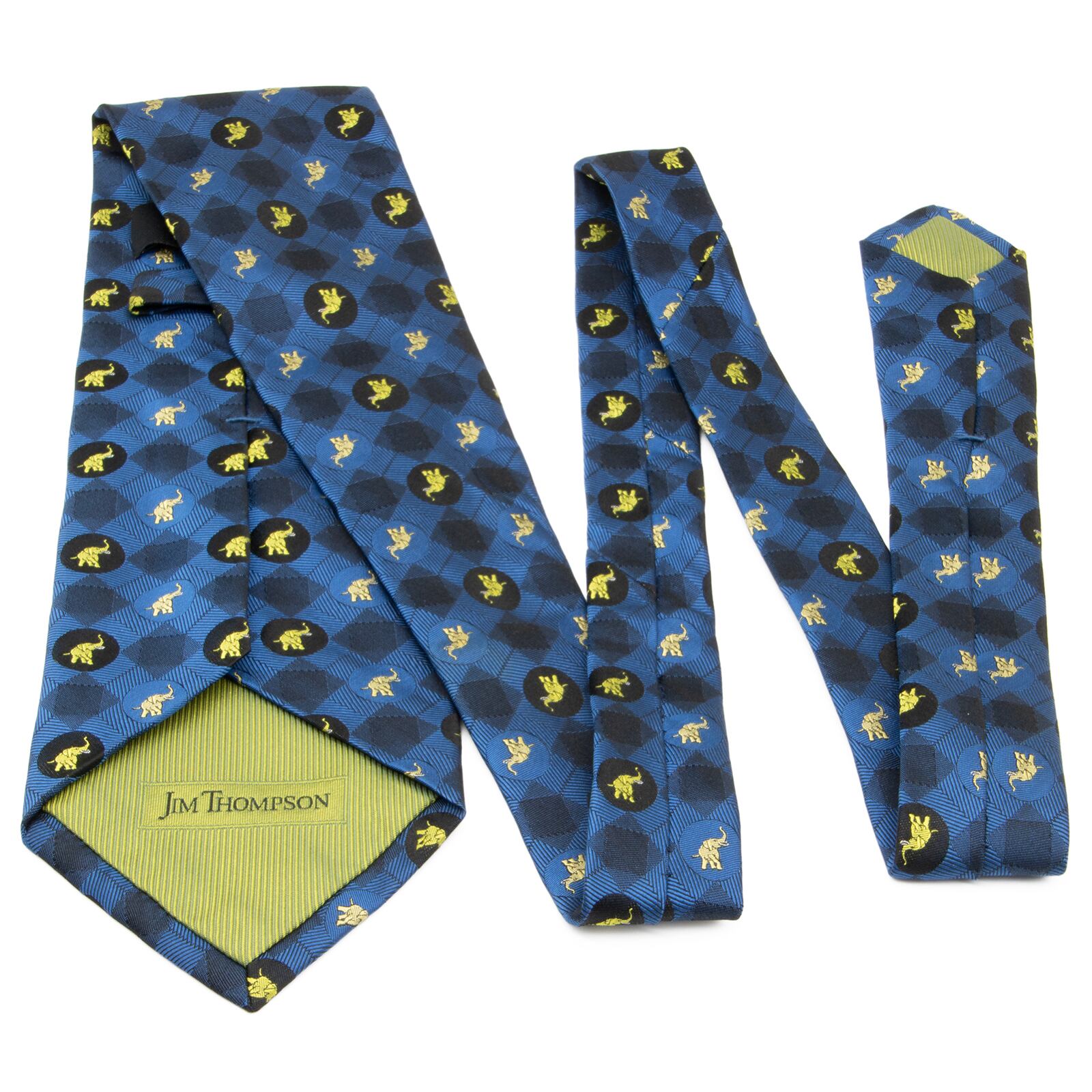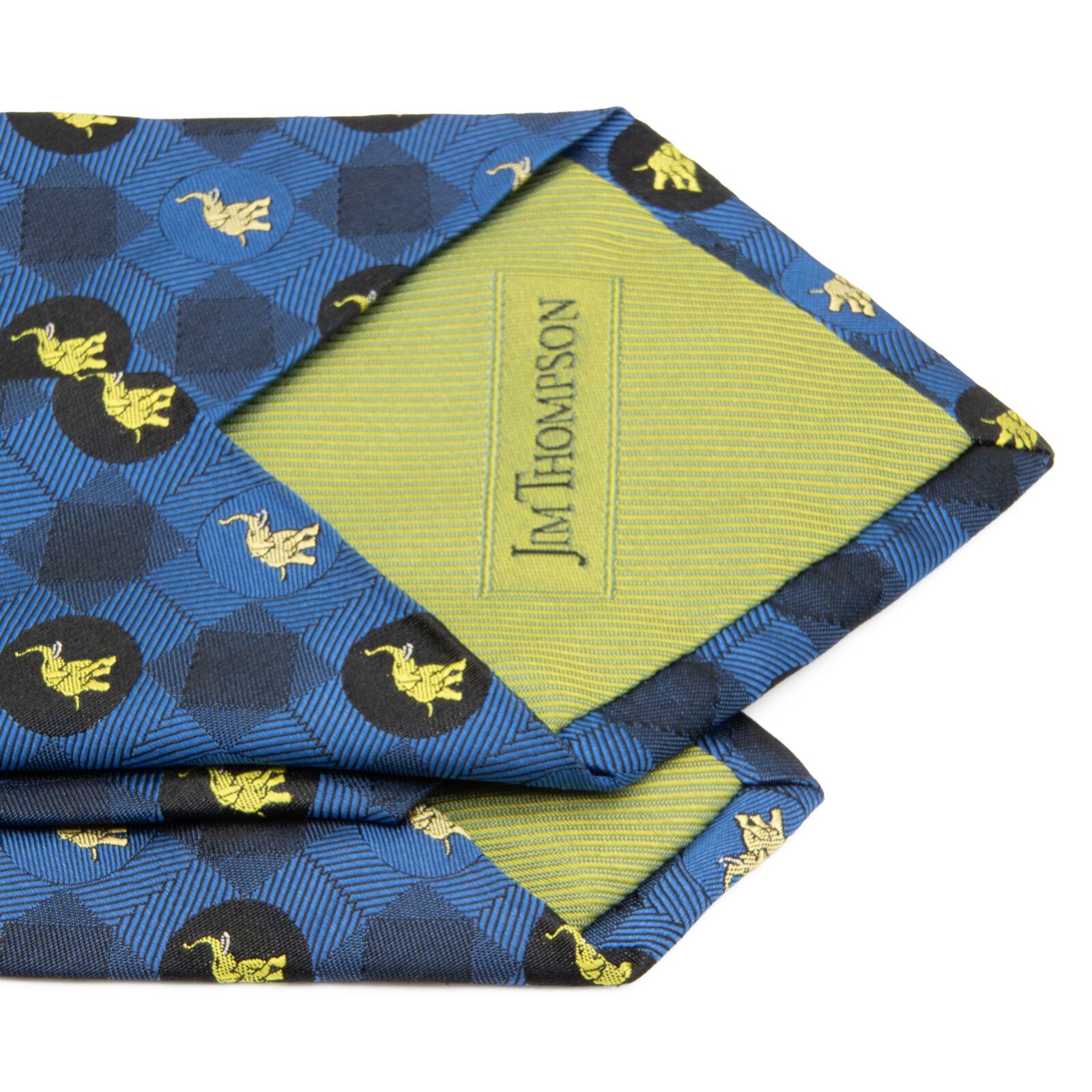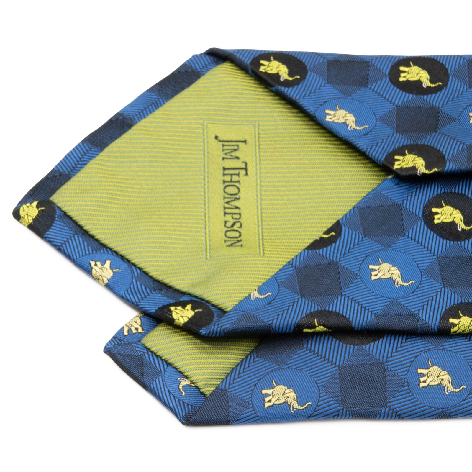 送料無料 ジムトンプソン ネクタイ ジャガードタイ 新品 ゴールド 青 ネイビーブルー 小紋 像 動物 アニマル 円 四角 マーク ブランド N950