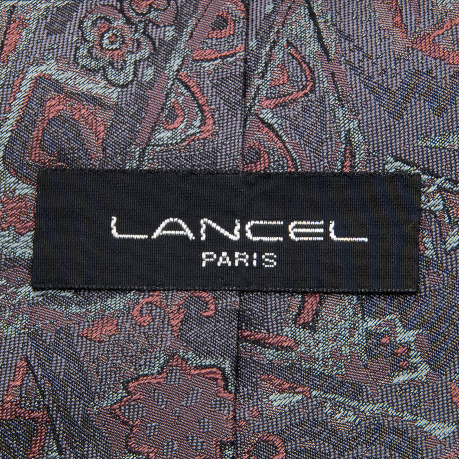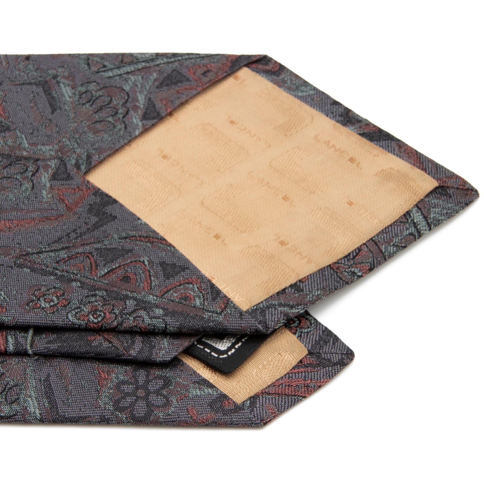 送料無料 ランセル ネクタイ レギュラータイ ジャガードタイ シルク グレー 茶色 ダークブラウン 花 ブランド 珍しい おしゃれ 綺麗 N155