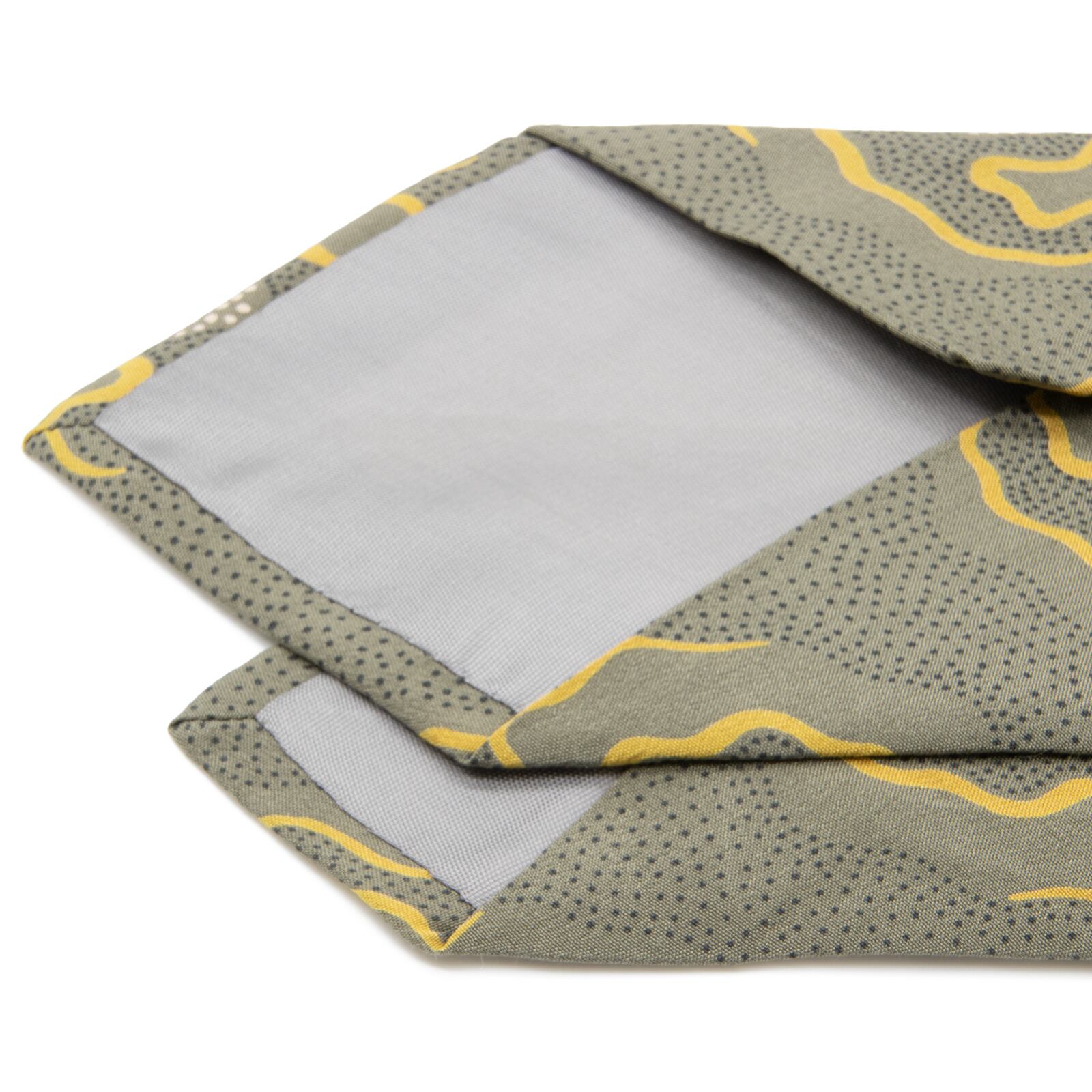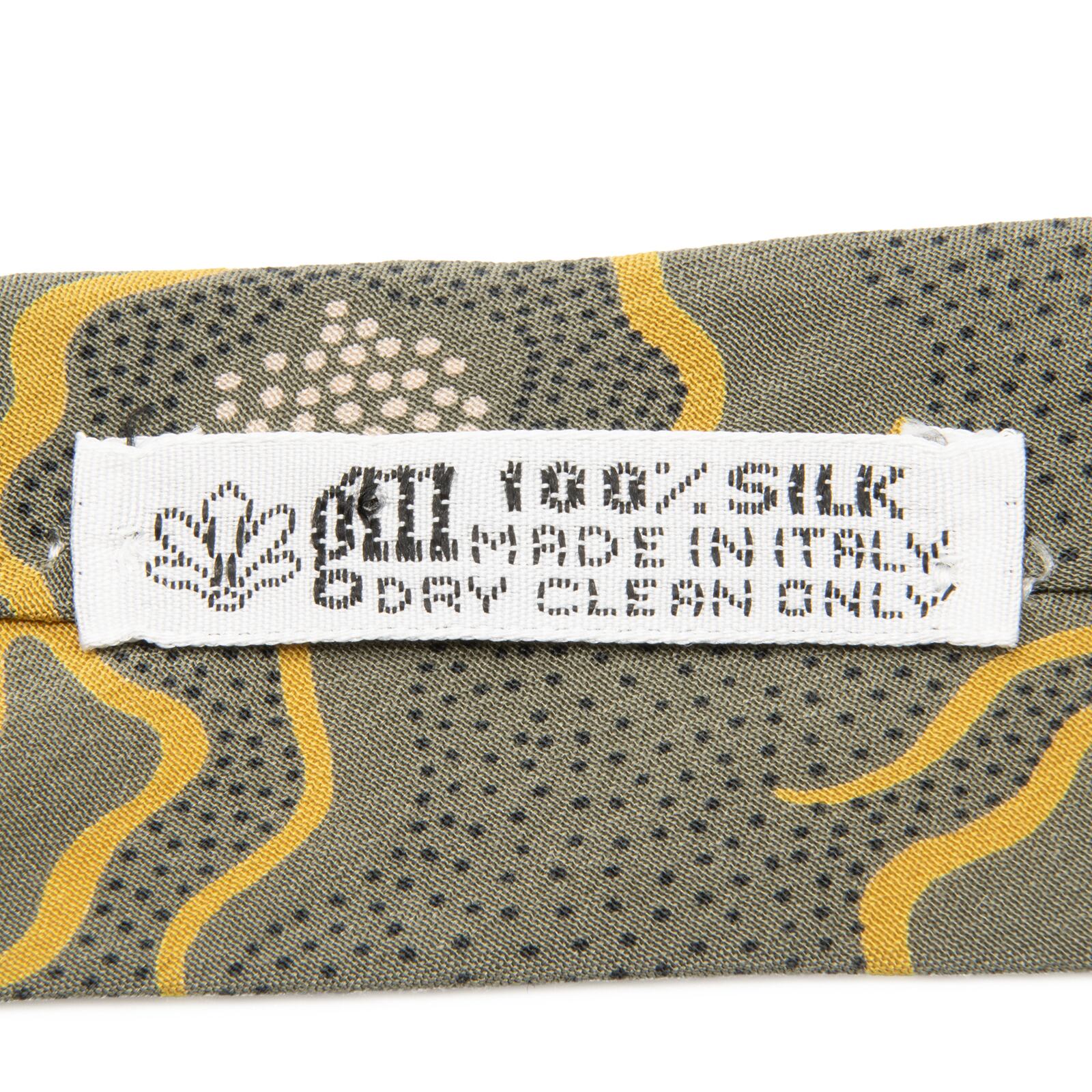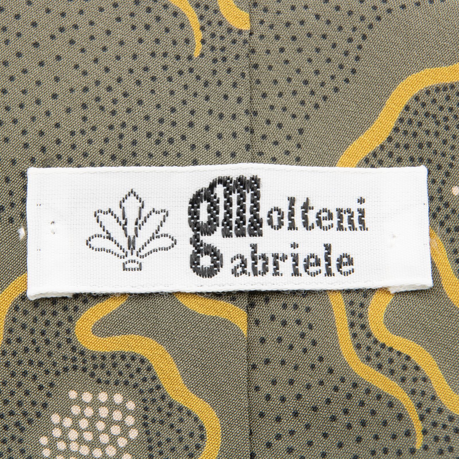 送料無料 モルテーニガブリエル ネクタイ レギュラータイ 新品同様 シルク 緑 グレーグリーン イエロー 渦巻き ブランド イタリア製 N240