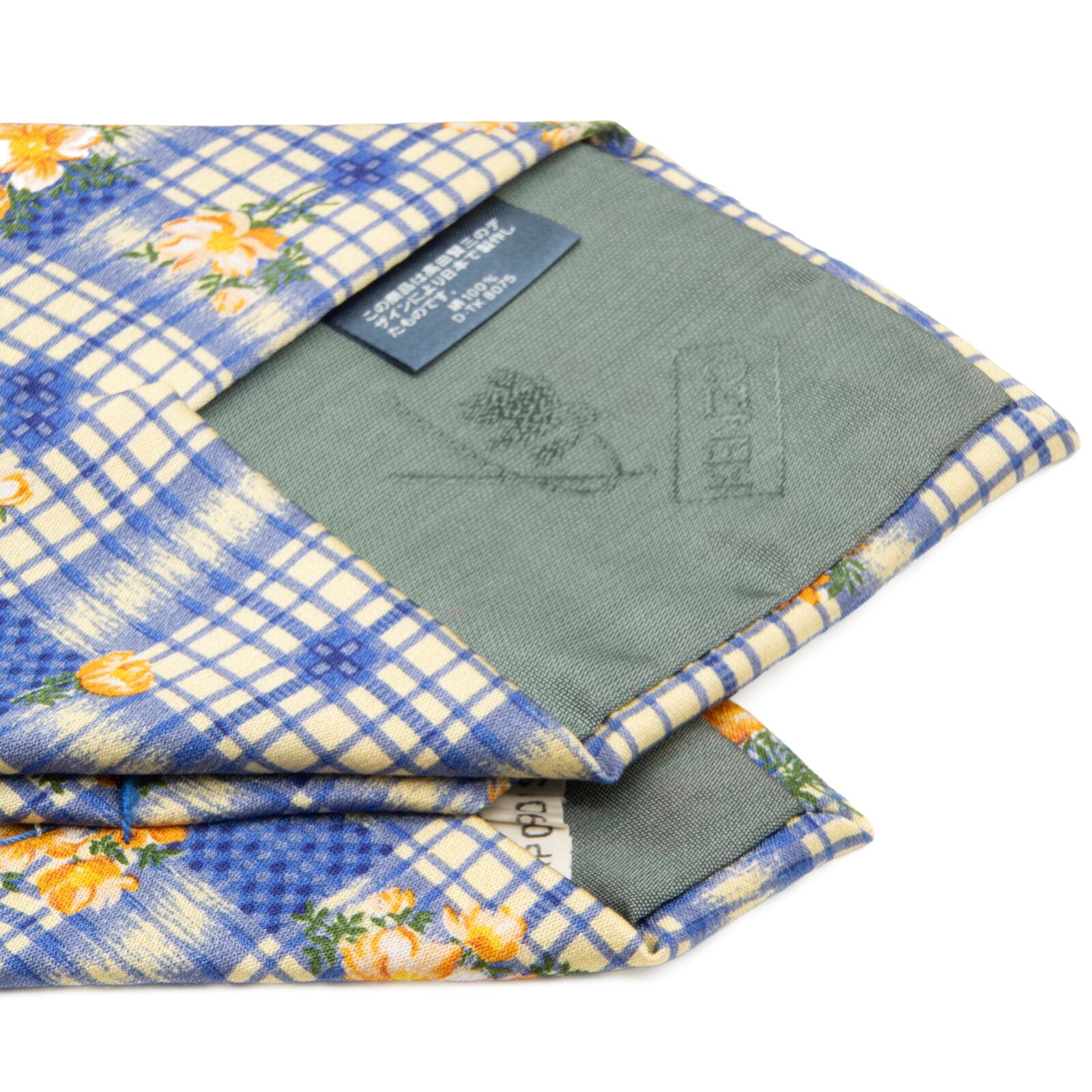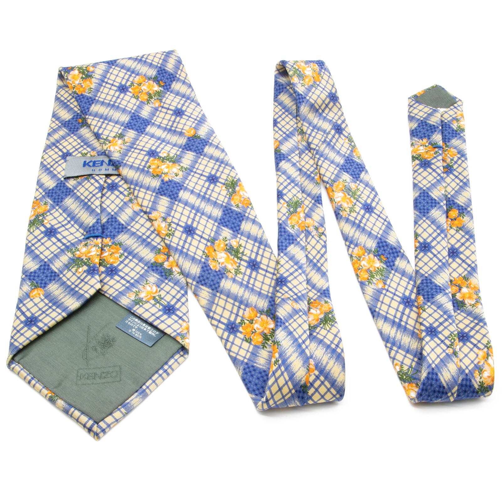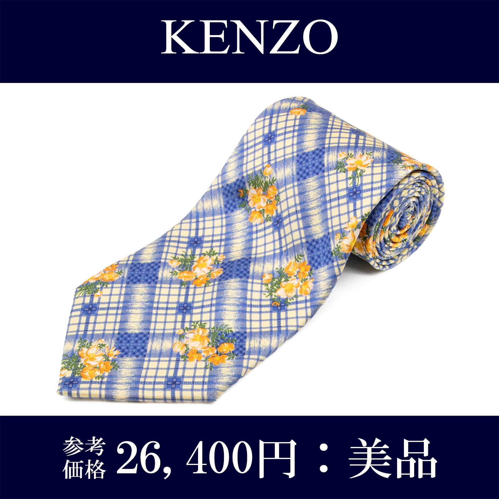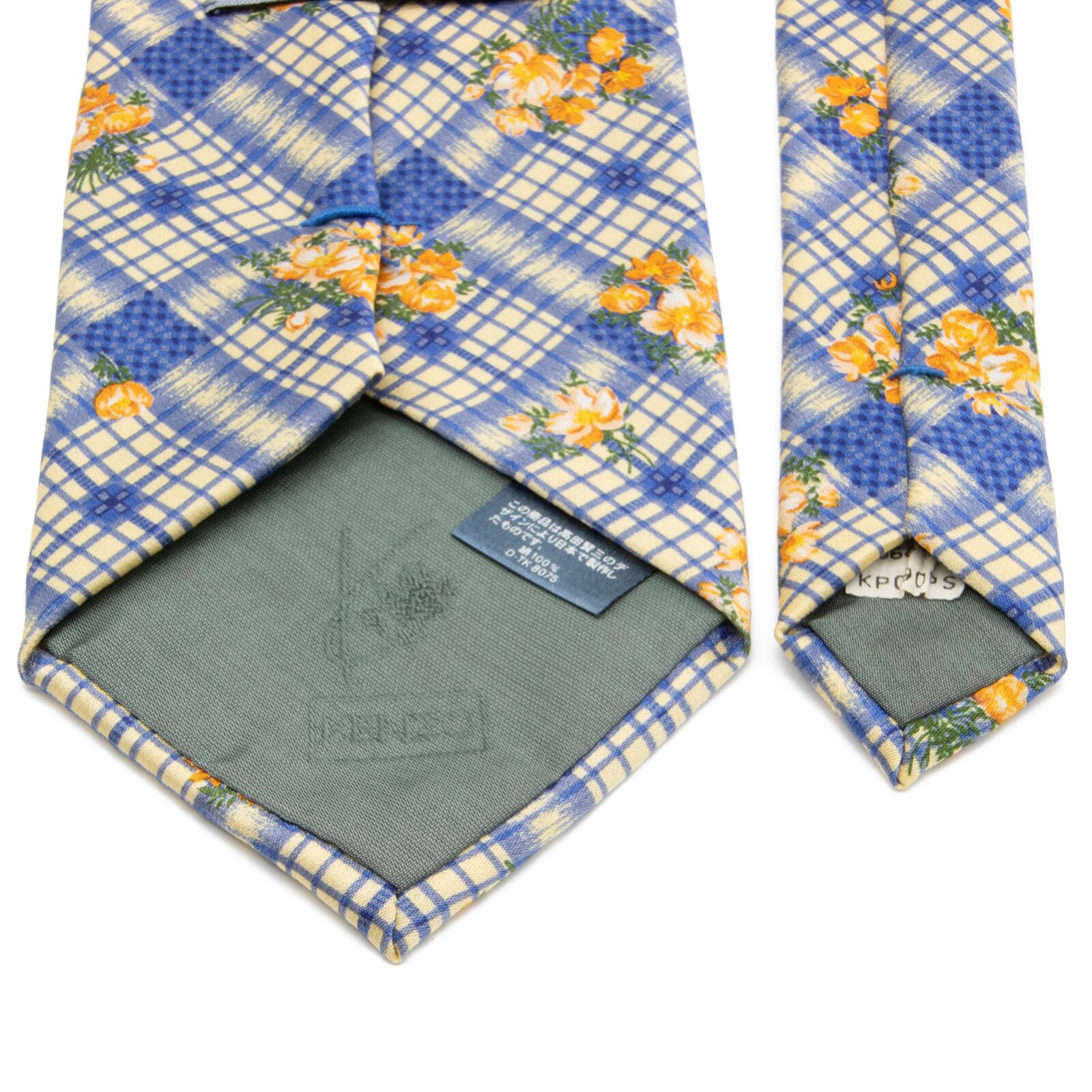 送料無料 ケンゾー ネクタイ シルク 青 ブルー アイボリー 橙 オレンジ 白 カジュアル チェック 格子 花 フラワー ブランド 人気 綺麗 N270