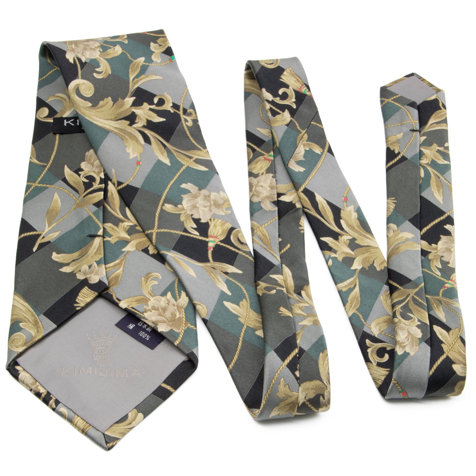 送料無料 キミジマ ネクタイ 新品同様 シルク 黄色 ブロンド 黒 緑 グレー 赤 花 フラワー ロープ 四角 タイル ブランド 珍しい 綺麗 N677