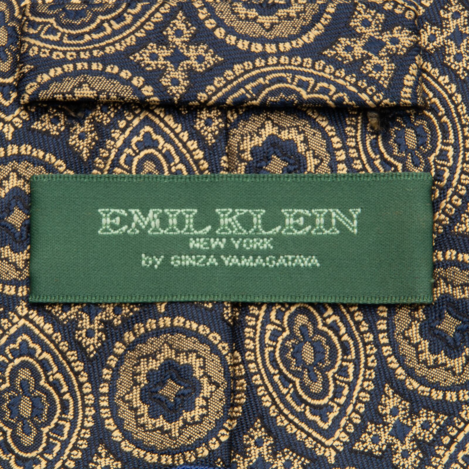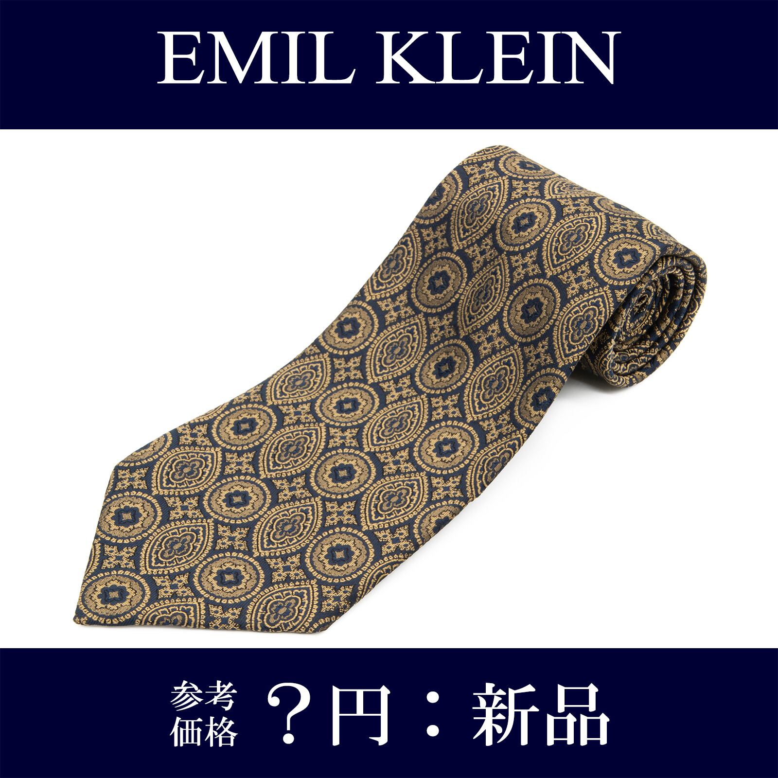 送料無料 EMIL KLEIN ネクタイ レギュラータイ ジャガード 新品 シルク 黄土色 カーキー 青 ネイビーブルー 円 紋様 ブランド 珍しい N729