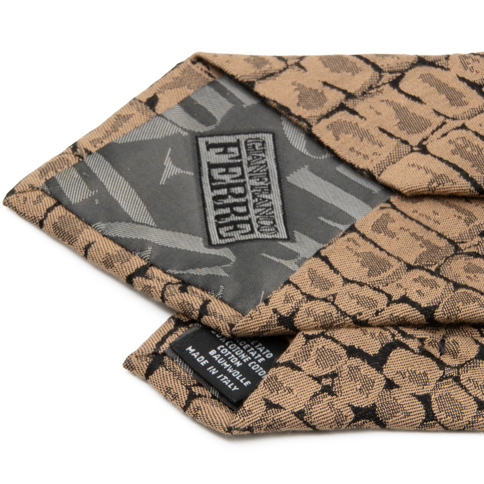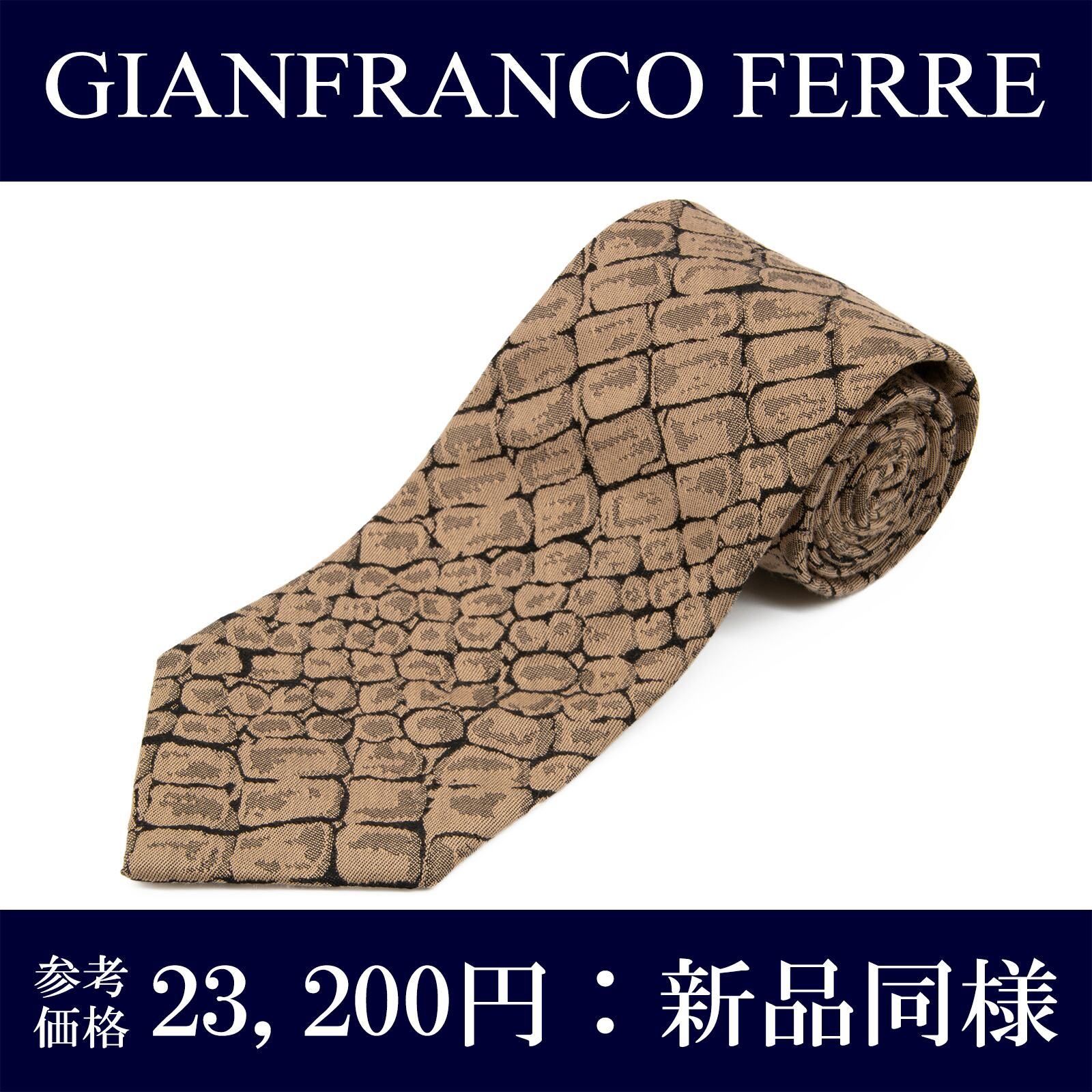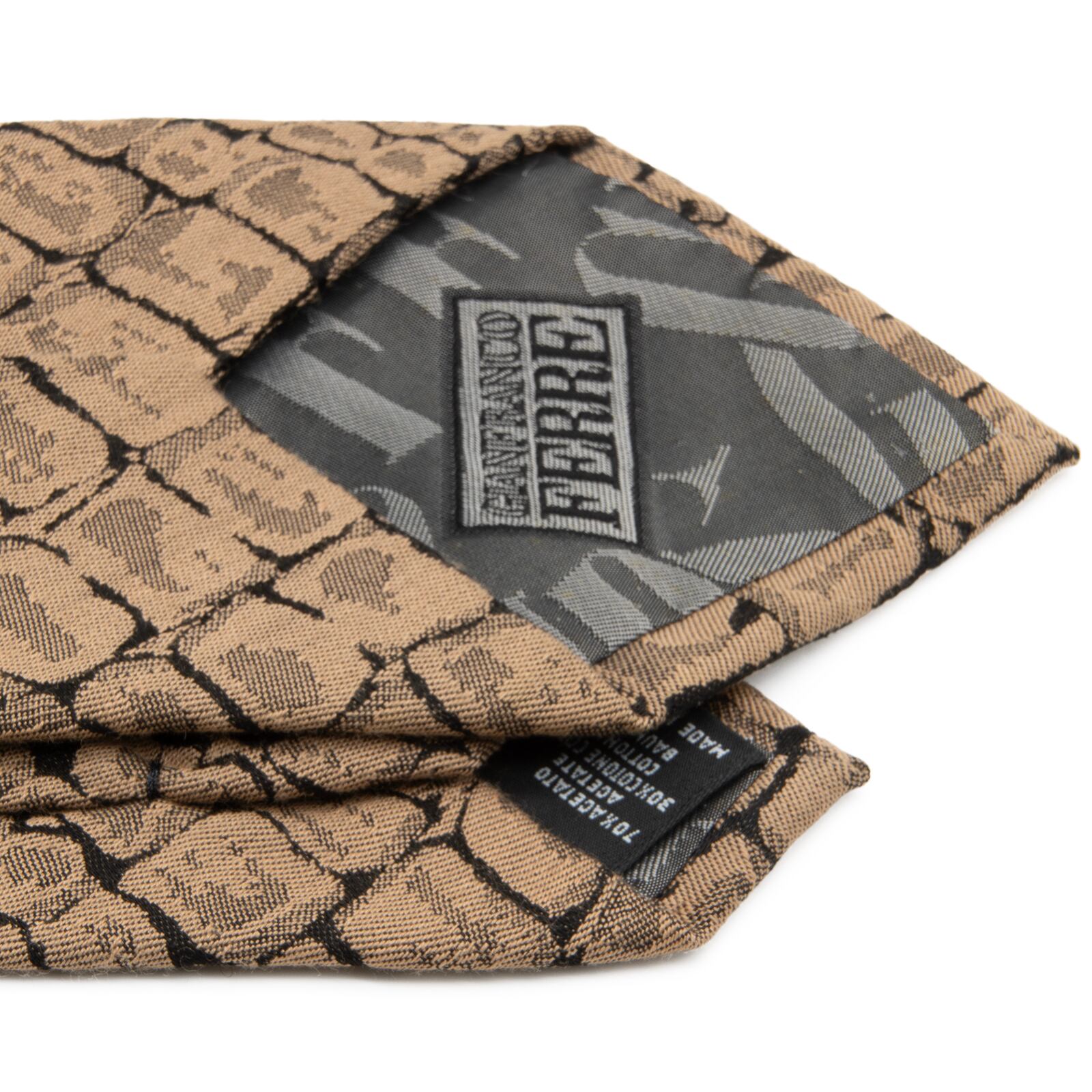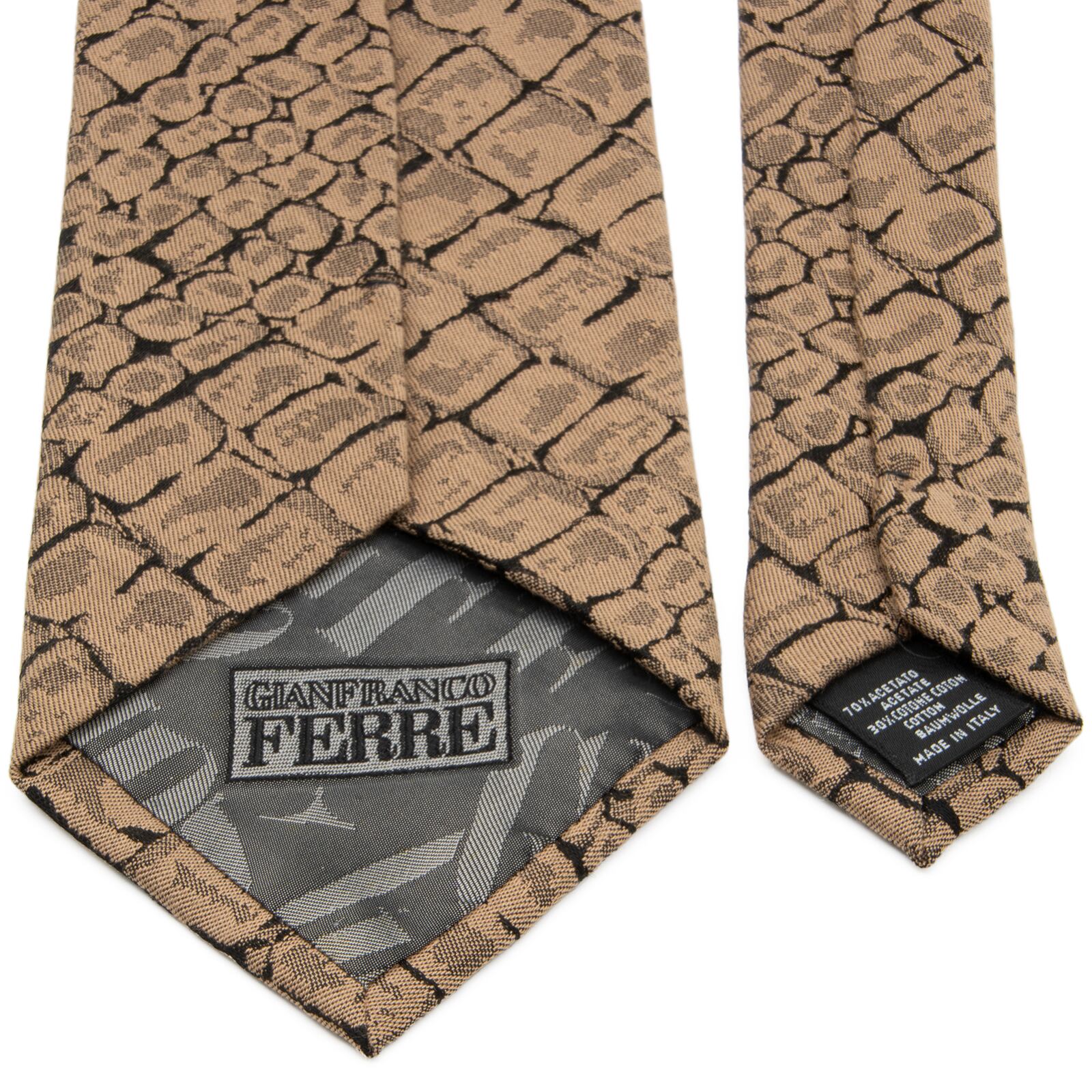 送料無料 ジャンフランコフェレ ネクタイ ジャガード 新品同様 ベージュ 黄土色 黒 ブラック 石畳 ストーン 肉厚 ブランド イタリア製 N863