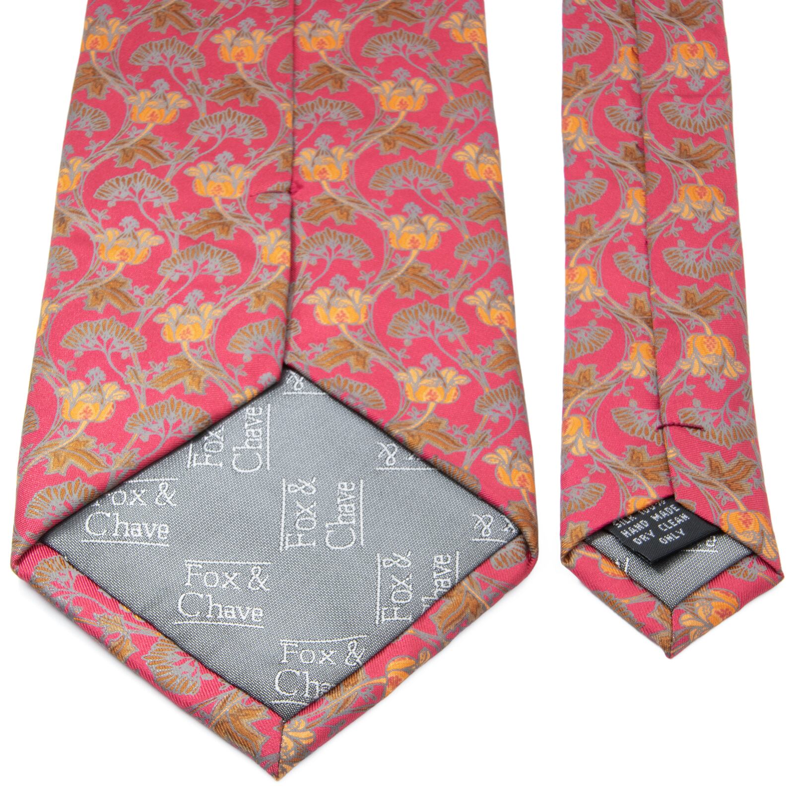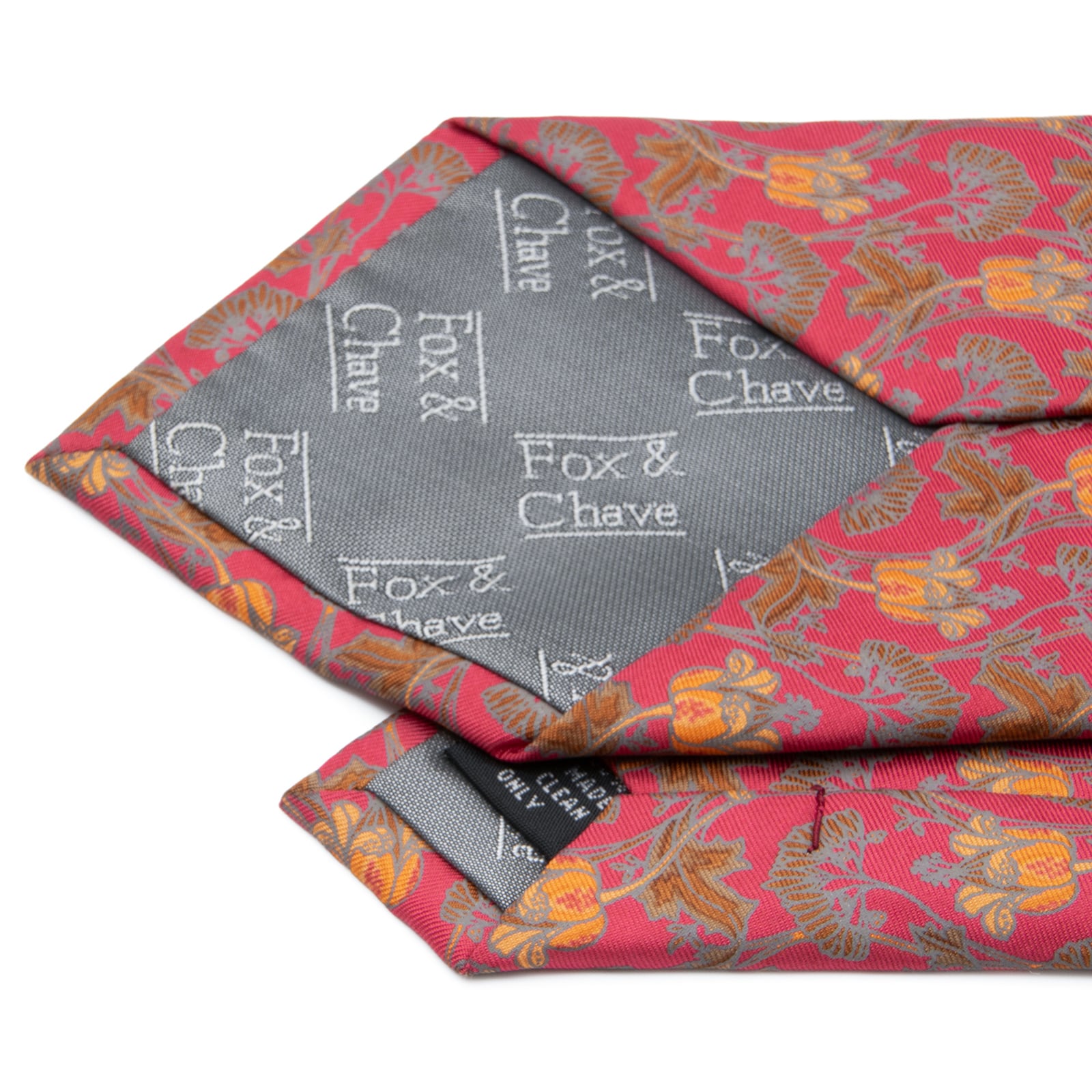 送料無料 Fox & Chave ネクタイ シルク 赤 レッド 緑 グリーン 橙 ビジネス カジュアル 花 フラワー ブランド 珍しい おしゃれ 綺麗 N871