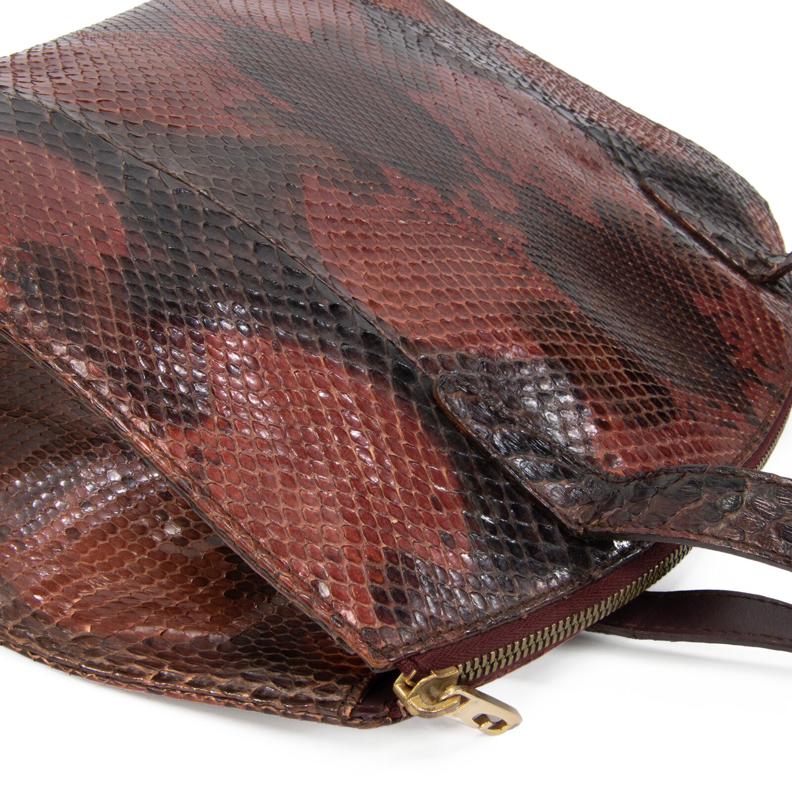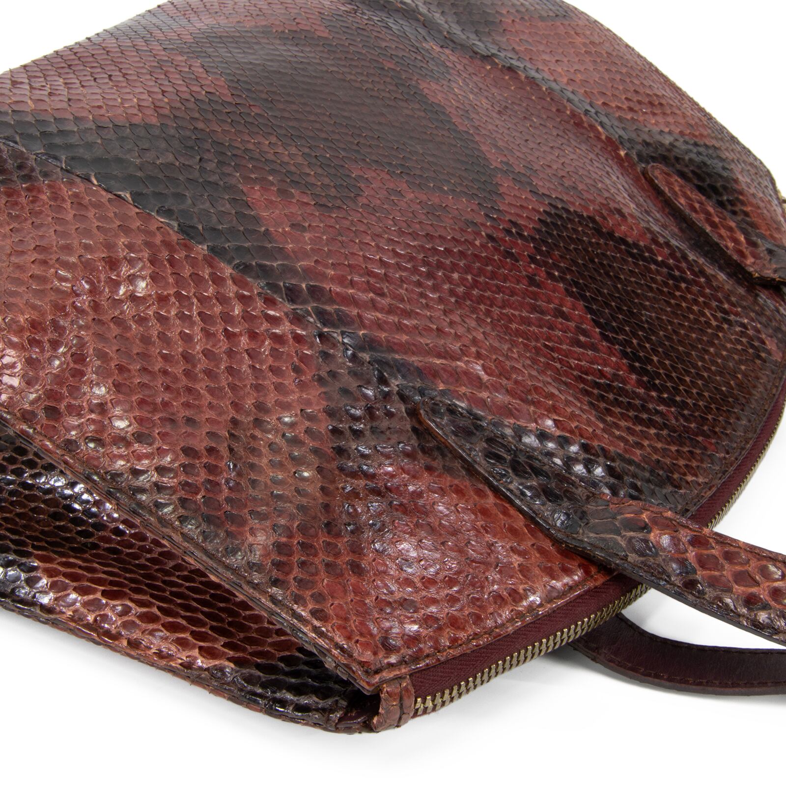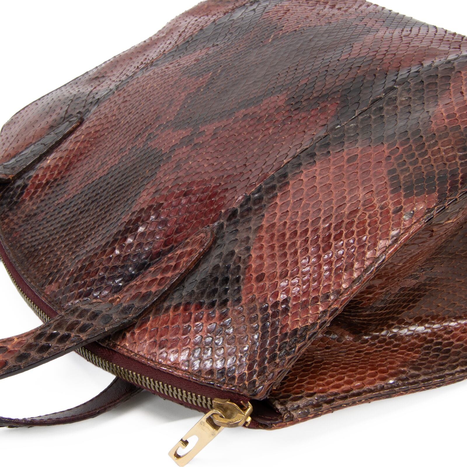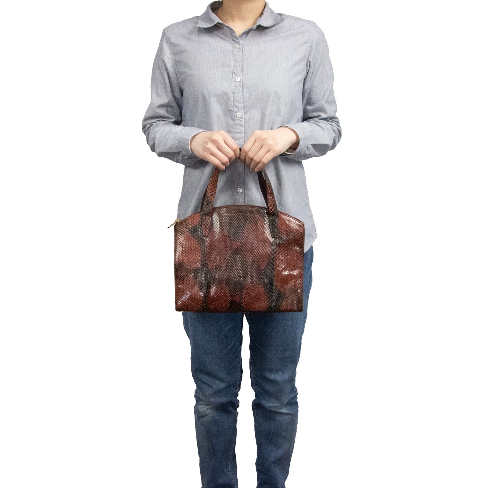 本物 送料無料 オールドグッチ ハンドバッグ レディース パイソン 赤茶色 ブラウン 最高級 自立可能 エキゾチックレザー 鞄 バック A832
