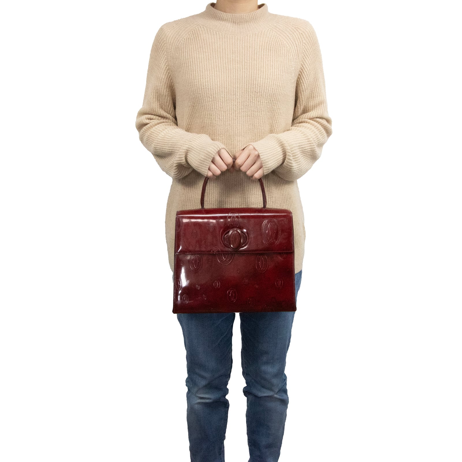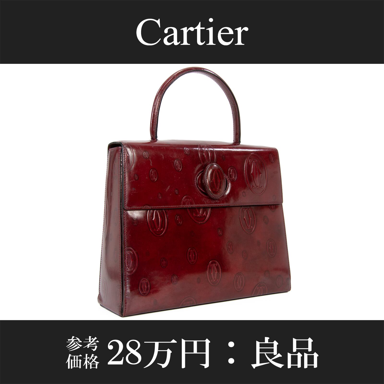 本物 送料無料 カルティエ ハンドバッグ レディース ハッピーバースデー ボルドー バーガンディー 自立 2Cロゴ マーク 本革 鞄 バック A833