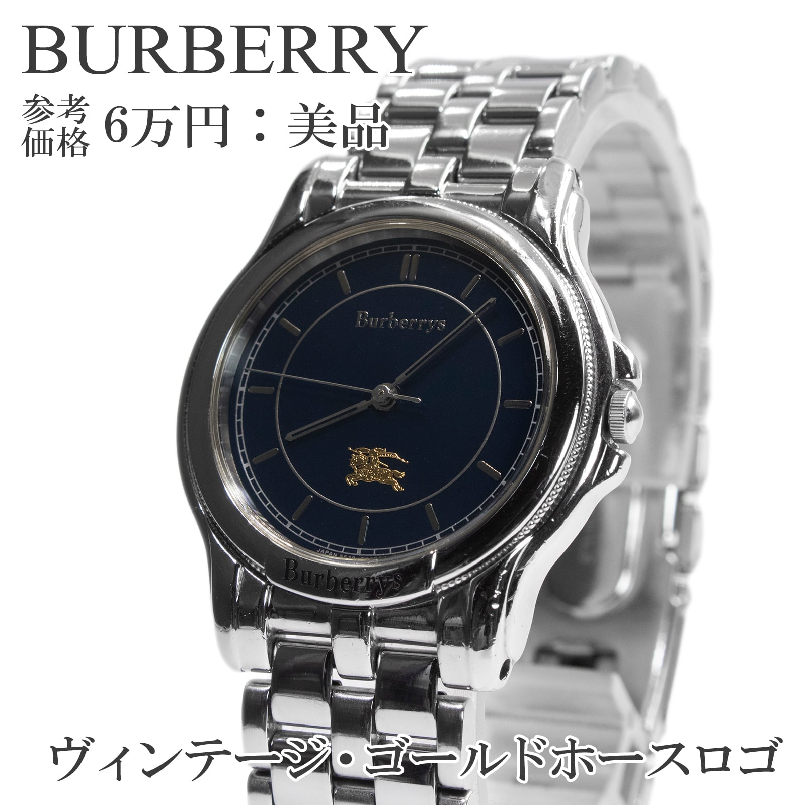 送料無料 バーバリー 腕時計 メンズ レディース 5530-F52339 青 ネイビーブルー ヴィンテージ ゴールドホースロゴ マーク 珍しい 綺麗 X199