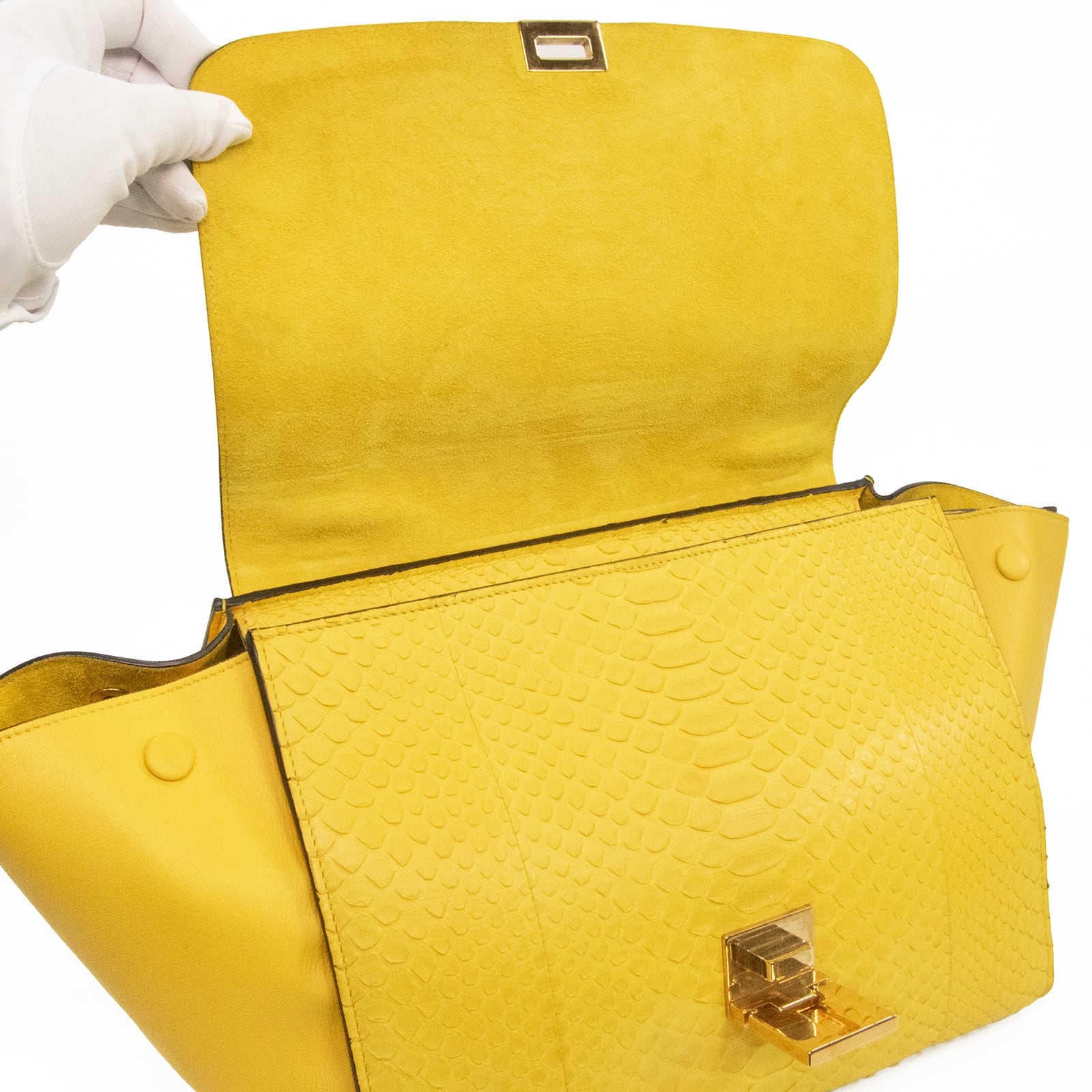 本物 送料無料 セリーヌ 2WAYショルダーバッグ ハンドバッグ レディース パイソン トラペーズ イエロー 最高級 肩掛け ロゴ 鞄 バック E386