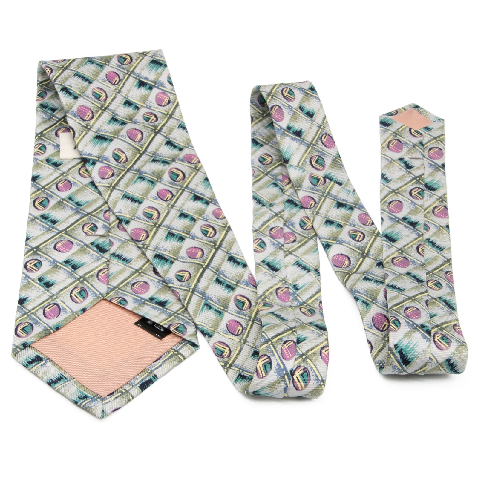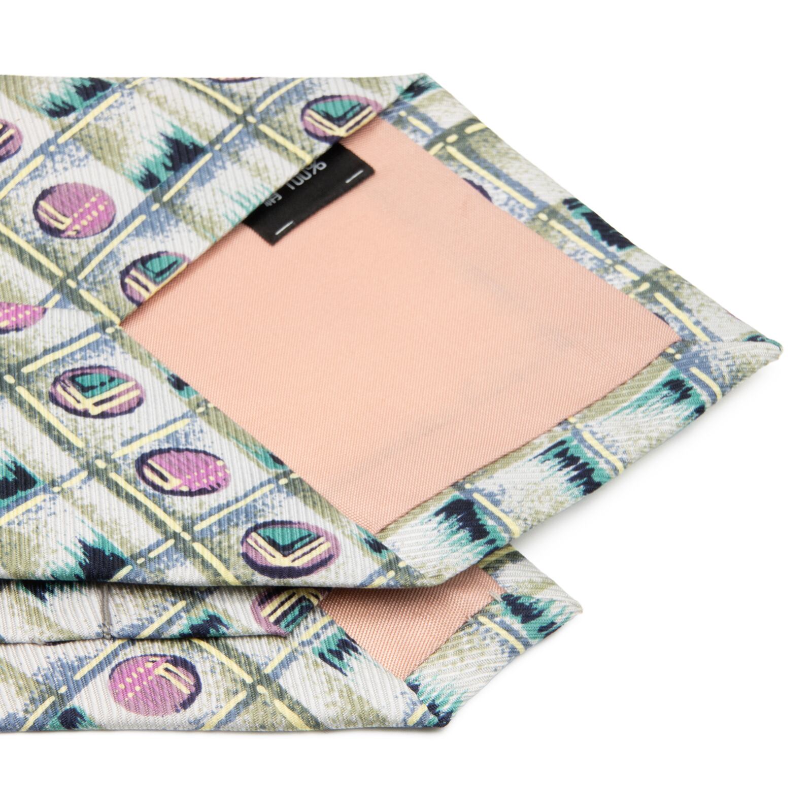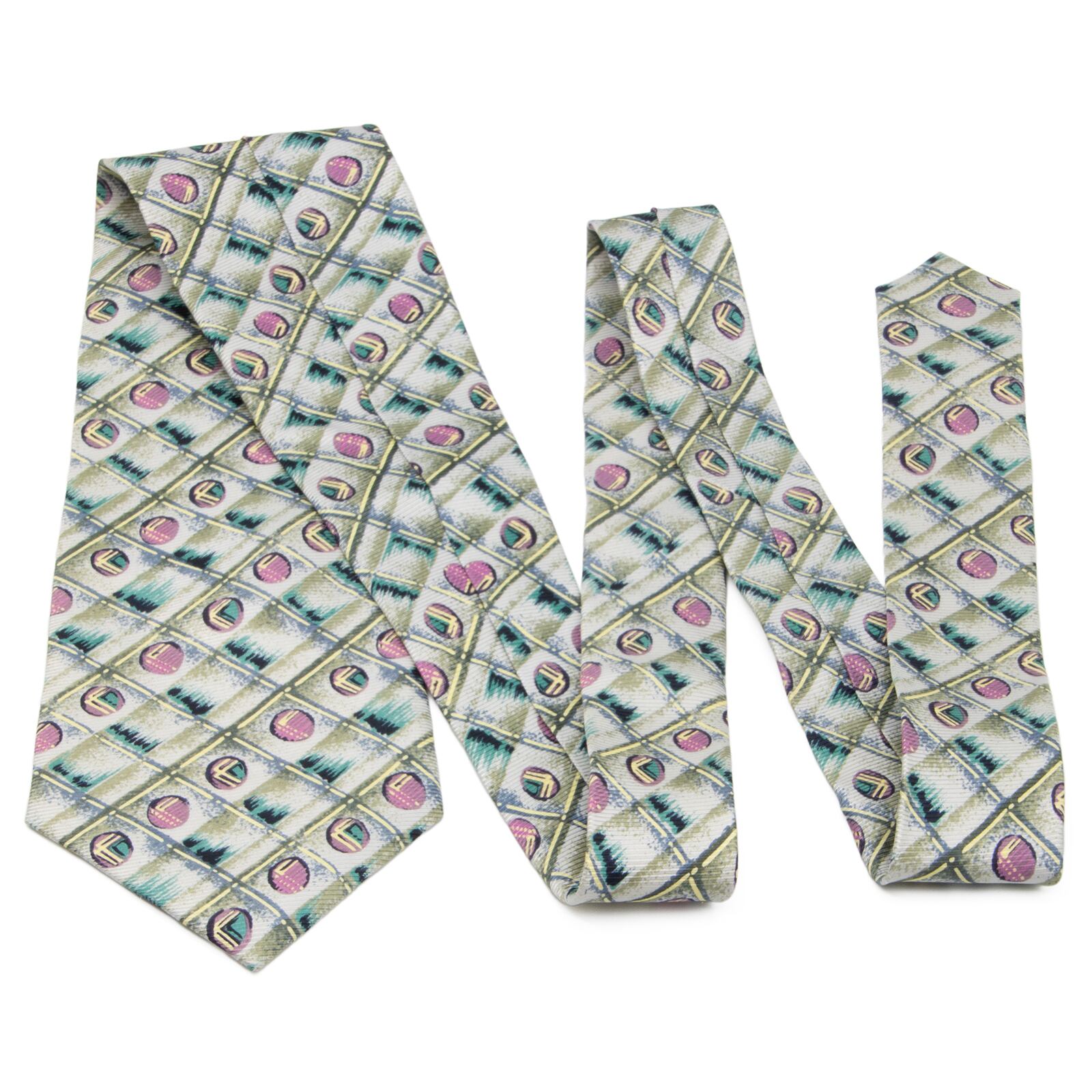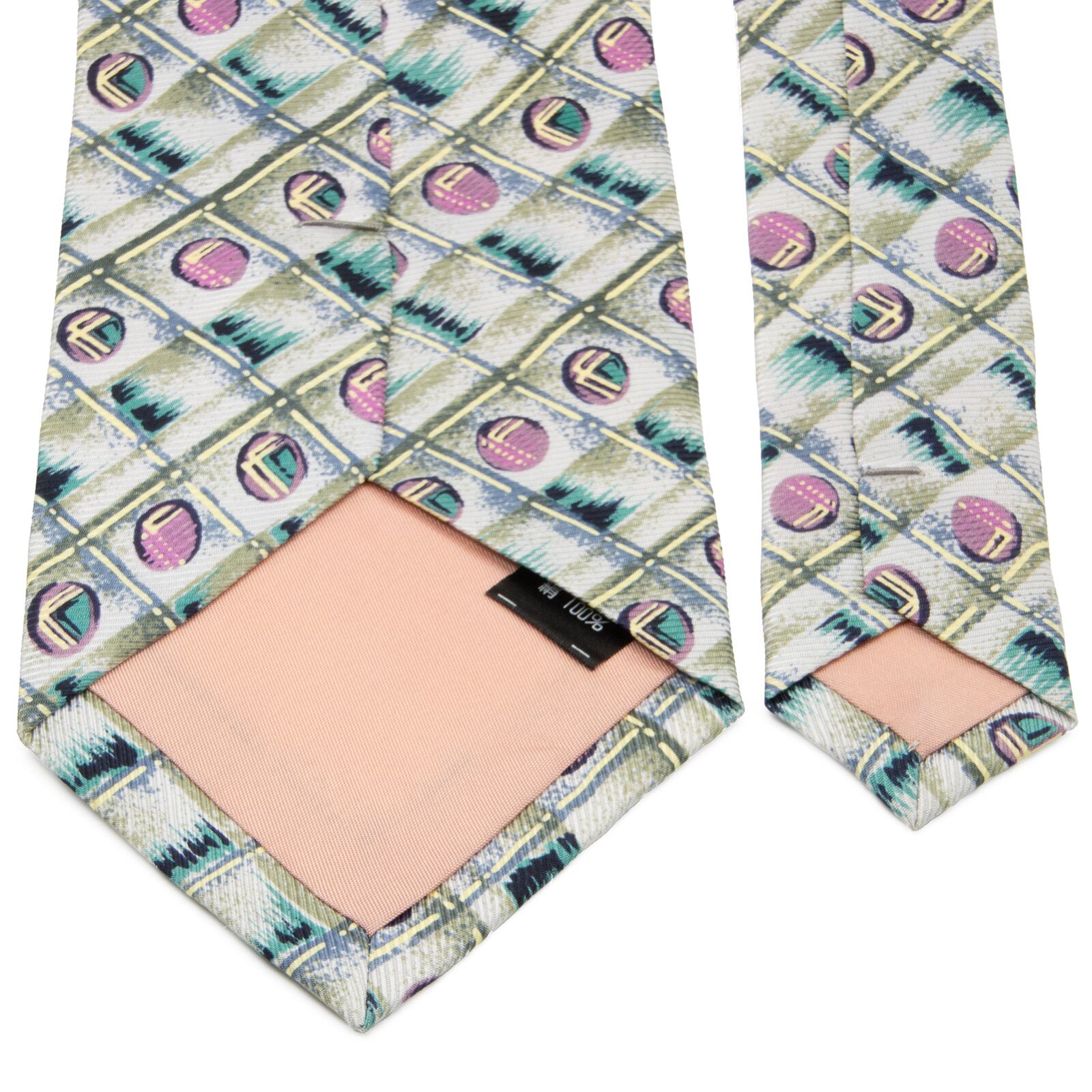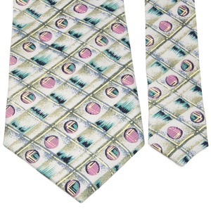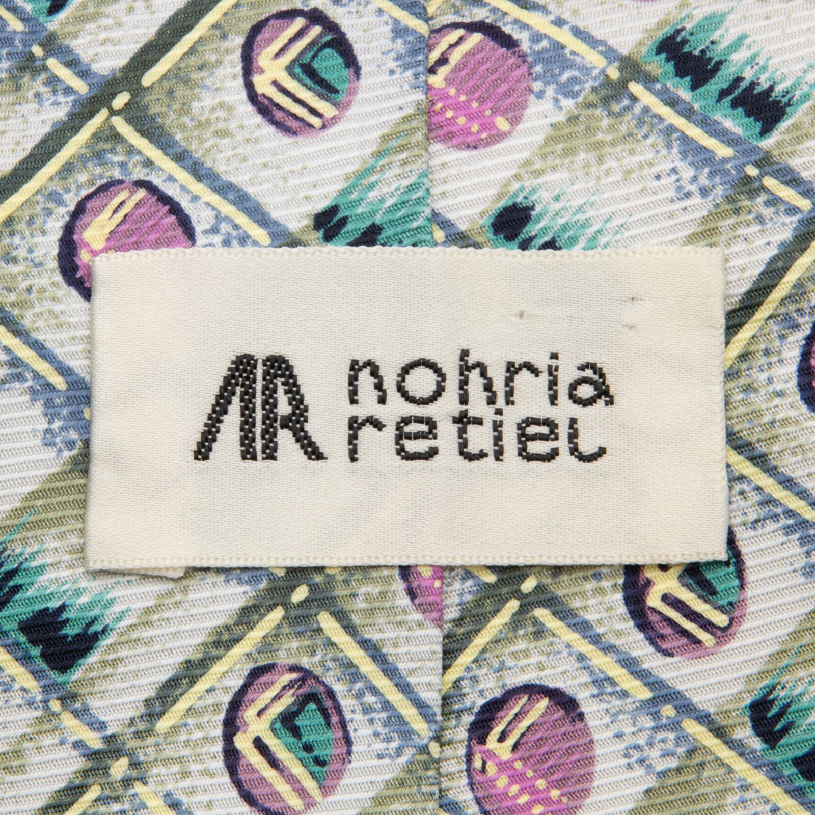 送料無料 nohria retiel ネクタイ 新品同様 シルク アイボリー 紫 緑 グレー 黒 チェック 格子 円 サークル マーク ブランド 珍しい N719