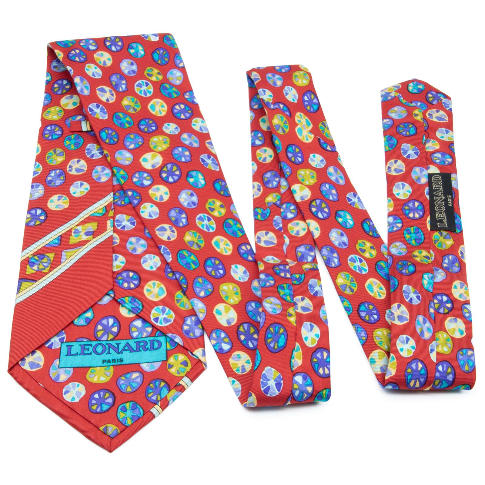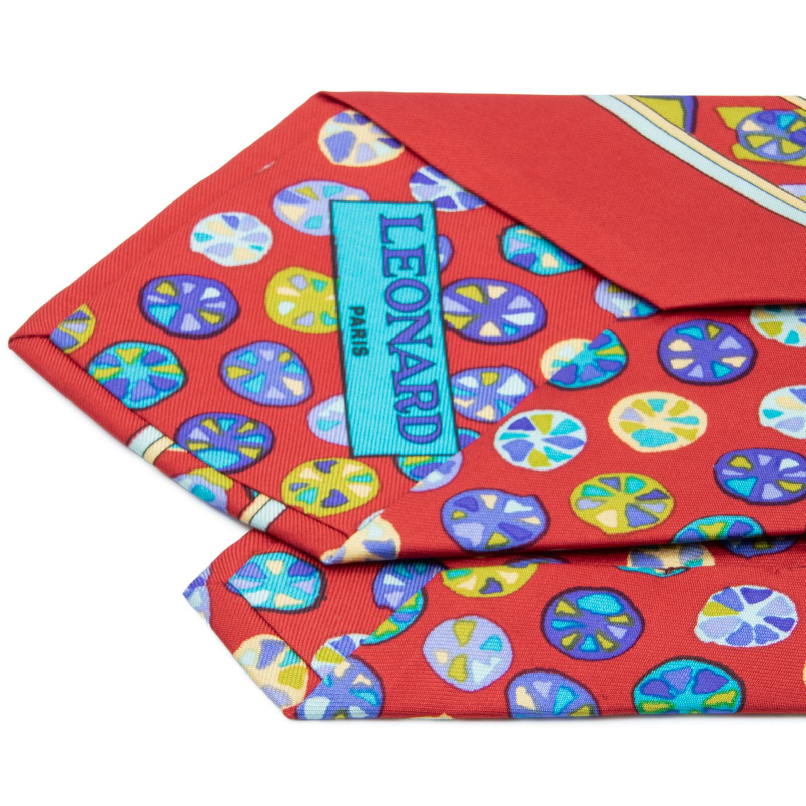 送料無料 レオナール ネクタイ レギュラータイ 新品 シルク 赤 青 黄色 水色 緑 果物 フルーツ マーク ブランド おしゃれ イタリア製 N783