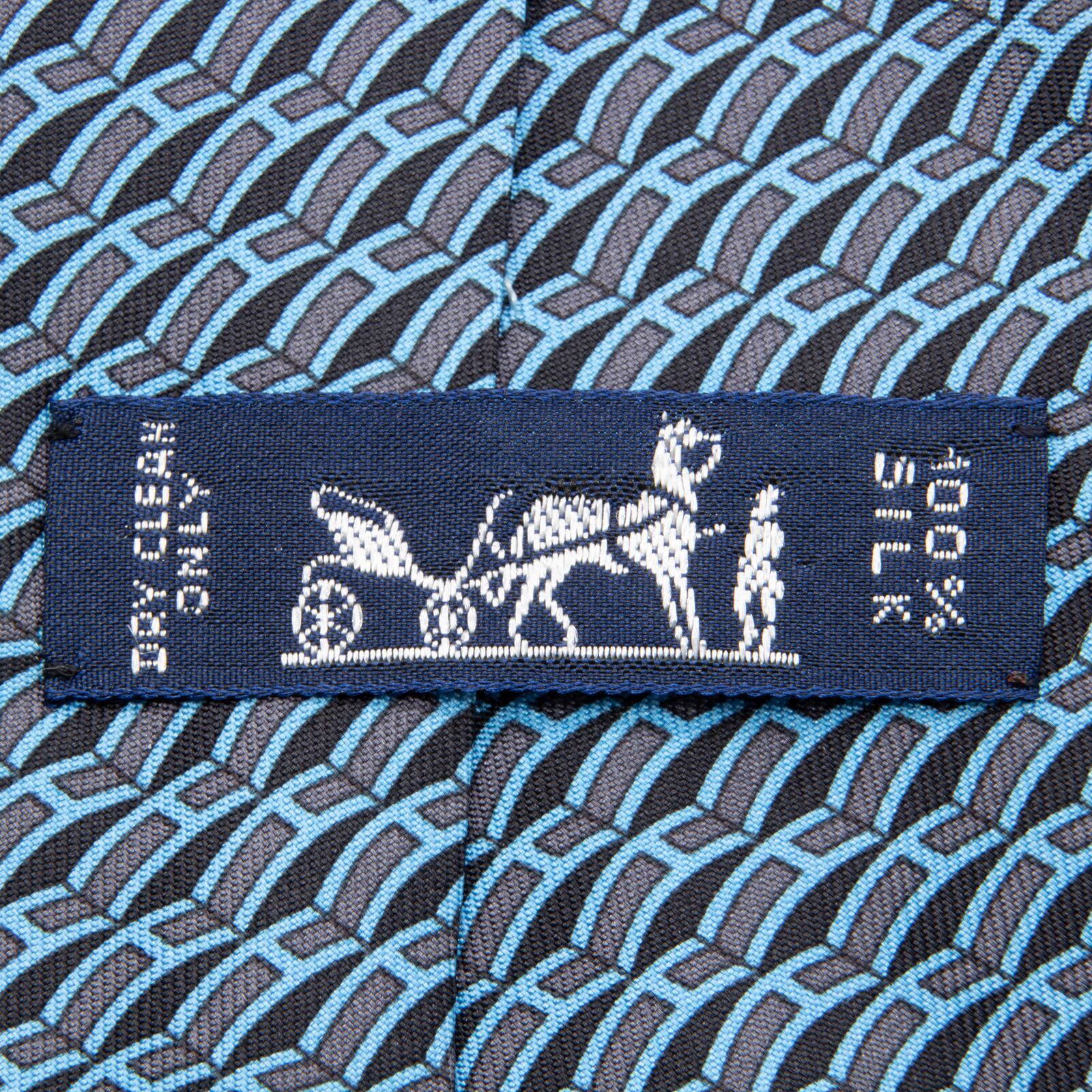 送料無料 エルメス ネクタイ レギュラータイ シルク 水色 グレー 黒 ストライプ Hロゴ マーク 人気 珍しい おしゃれ フランス製 綺麗 N880