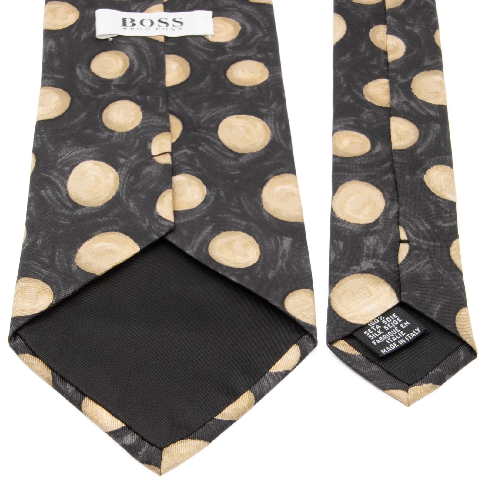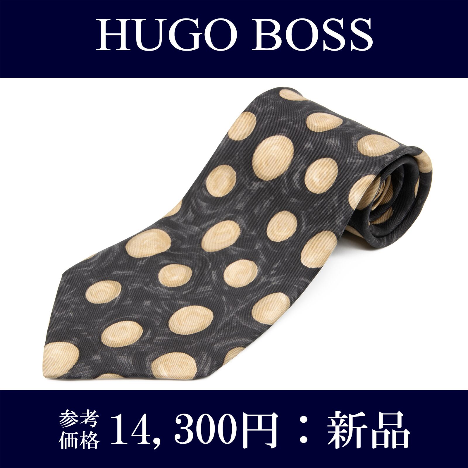 送料無料 ヒューゴボス ネクタイ 新品 シルク 黒 ブラック ベージュ グレー 円 丸 サークル マーク ブランド 珍しい イタリア製 綺麗 N883
