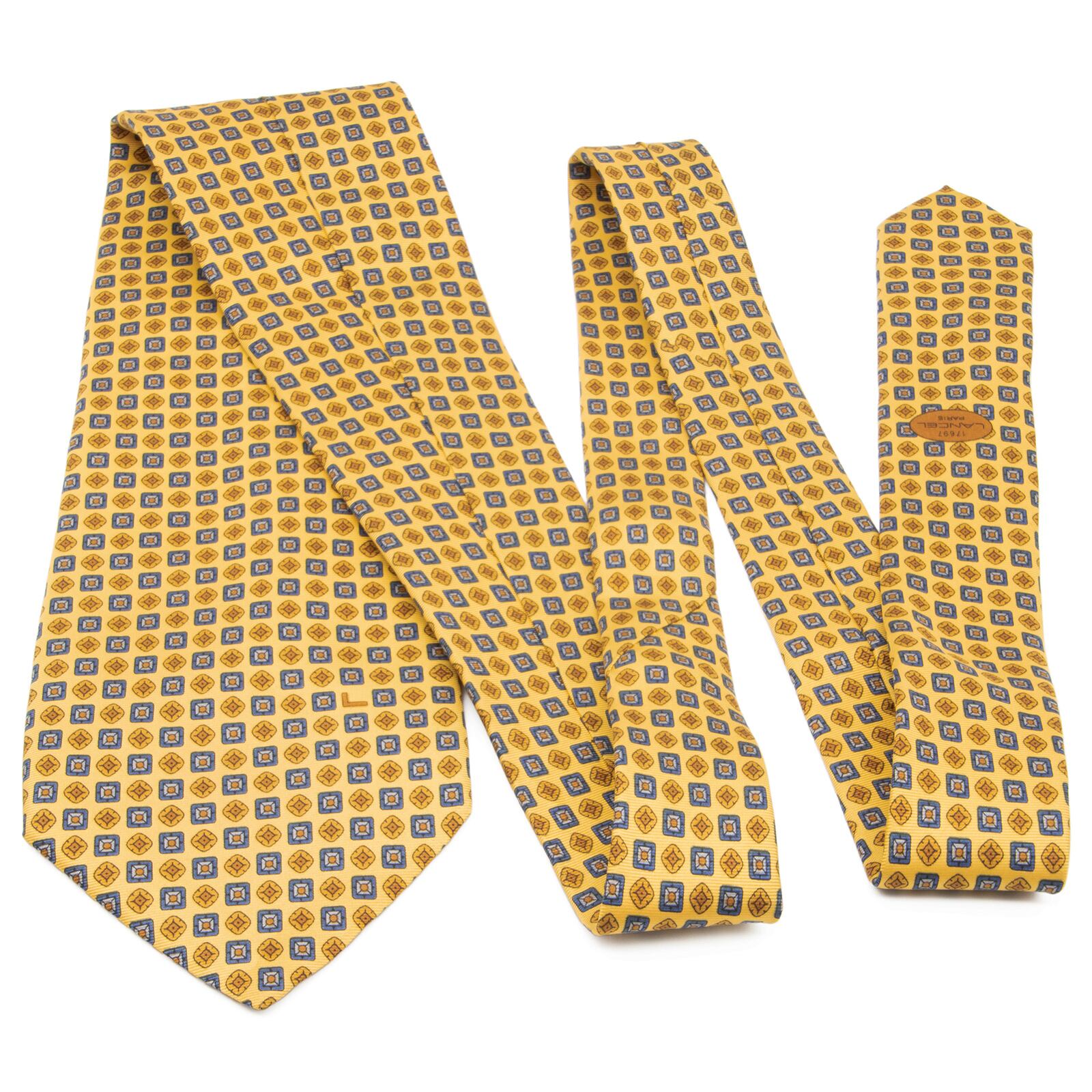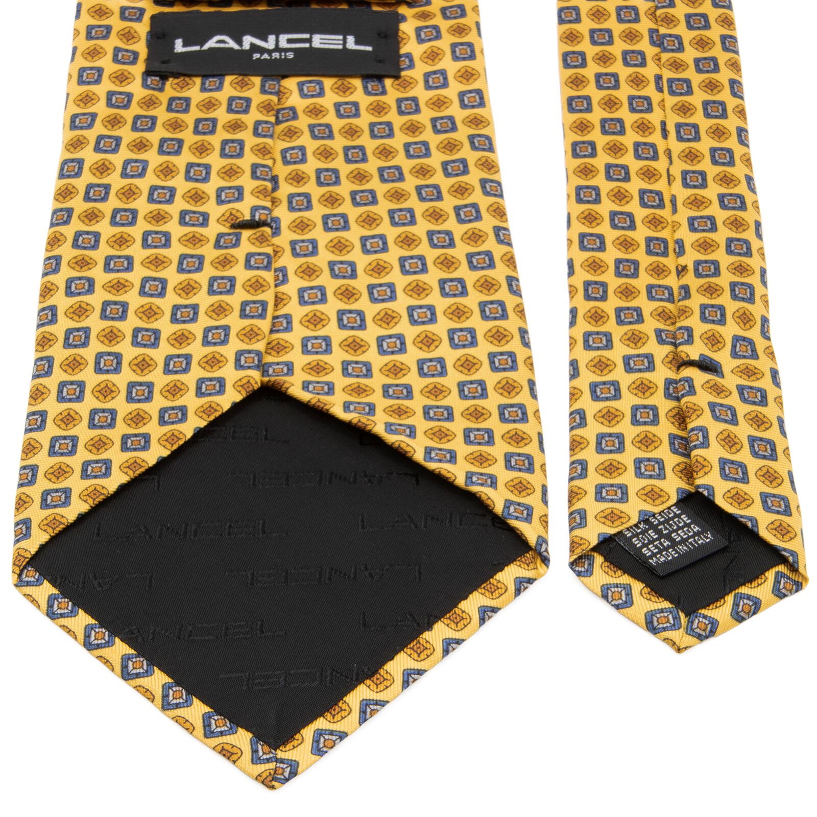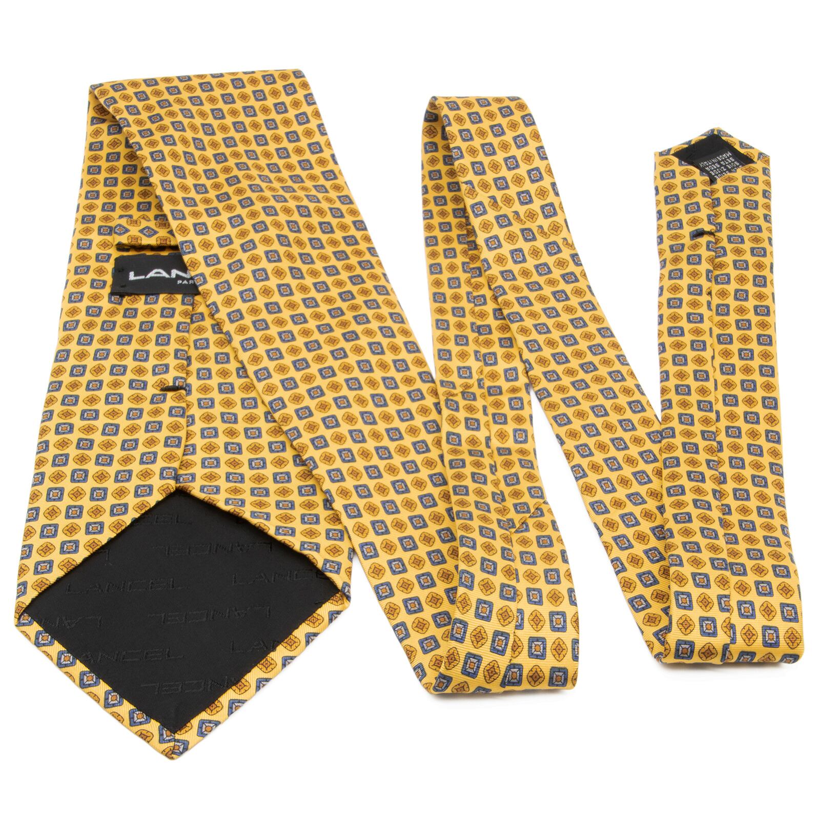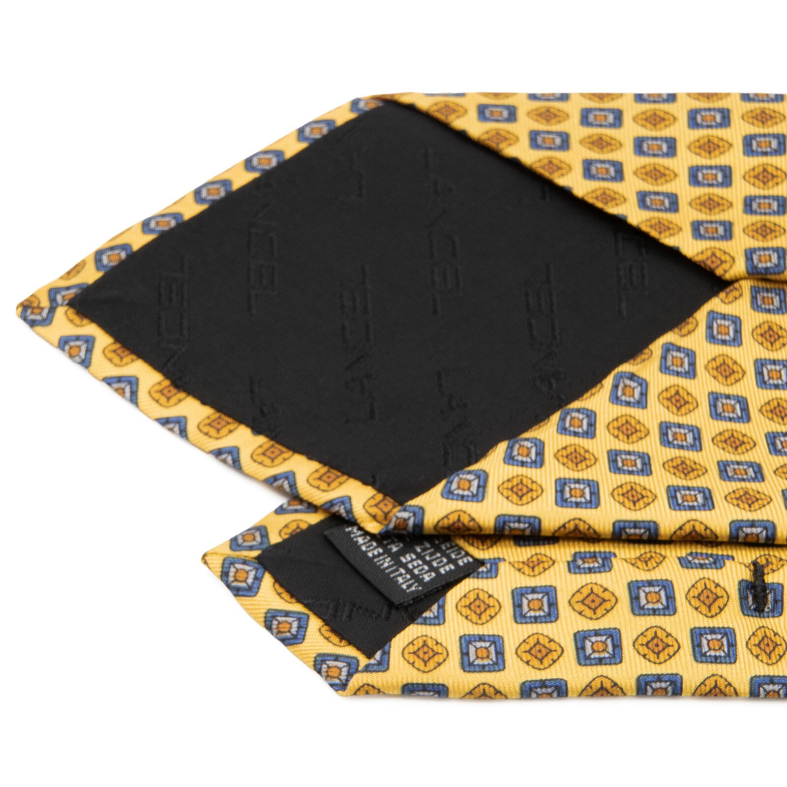 送料無料 ランセル ネクタイ 新品同様 シルク 黄色 イエロー 青 水色 四角 スクエア マーク 人気 ブランド おしゃれ イタリア製 綺麗 N903