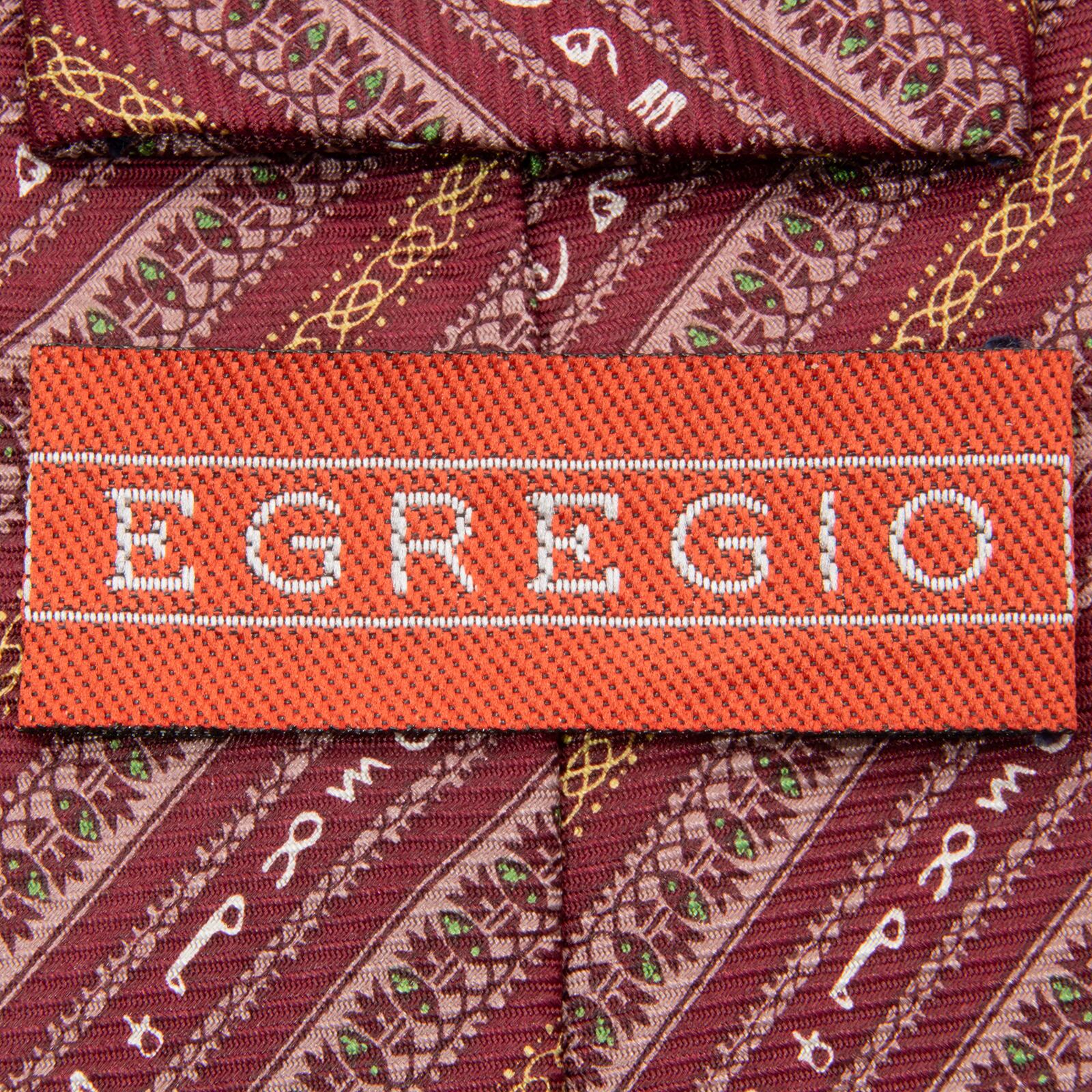 送料無料 EGREGIO ネクタイ 新品 シルク 赤 バーガンディー 茶色 黄色 白 緑 カジュアル パターンストライプ マーク ブランド 珍しい N907