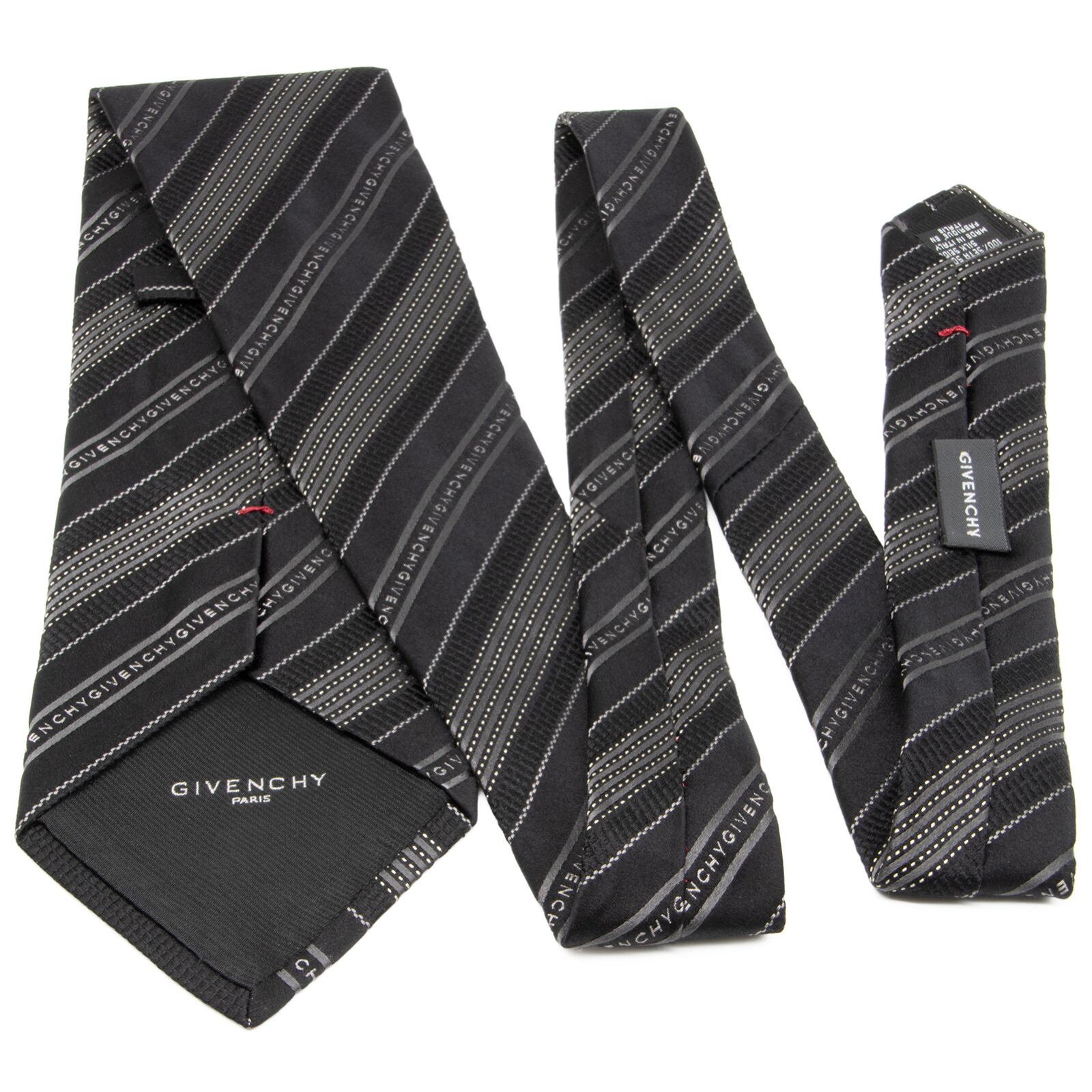 送料無料 ジバンシー ネクタイ ジャガード 新品同様 シルク 黒 グレー レジメンタルストライプ ロゴ 珍しい おしゃれ イタリア製 綺麗 N924