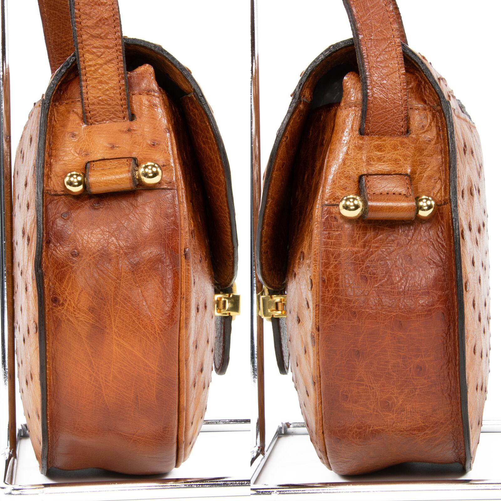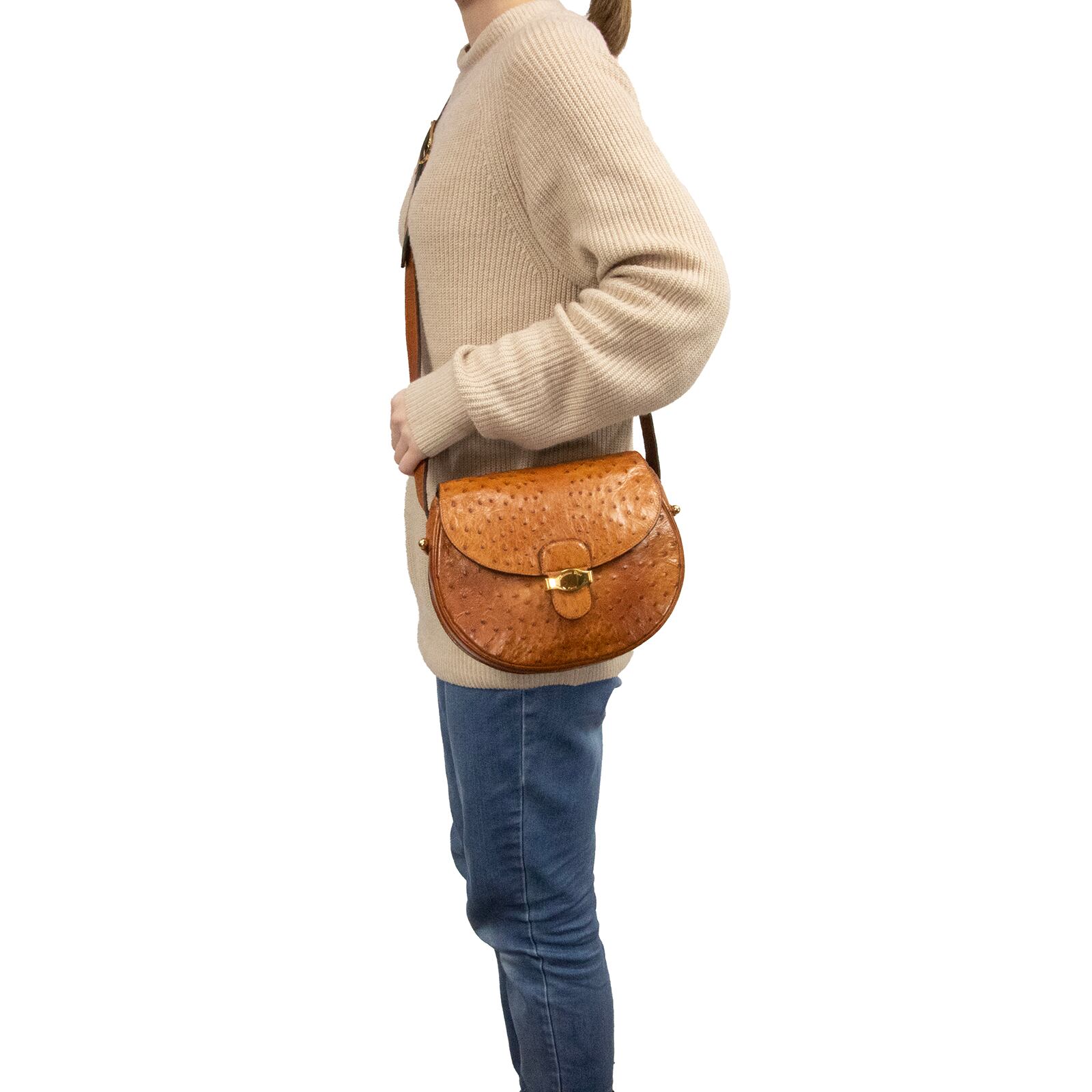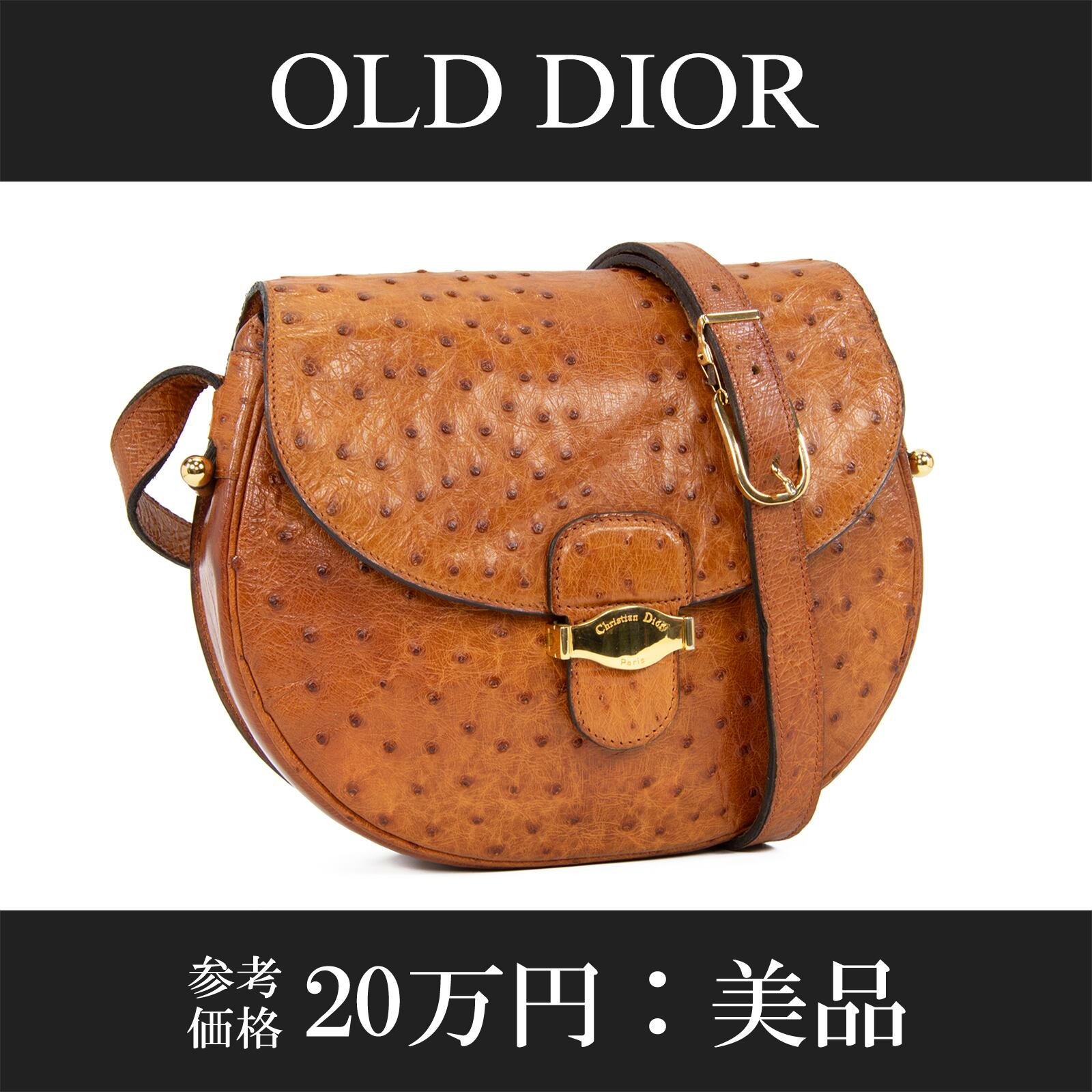 本物 送料無料 オールドディオール ショルダー クロスボディバッグ レディース オーストリッチ 茶色 最高級 斜め掛け 本革 鞄 バック B274