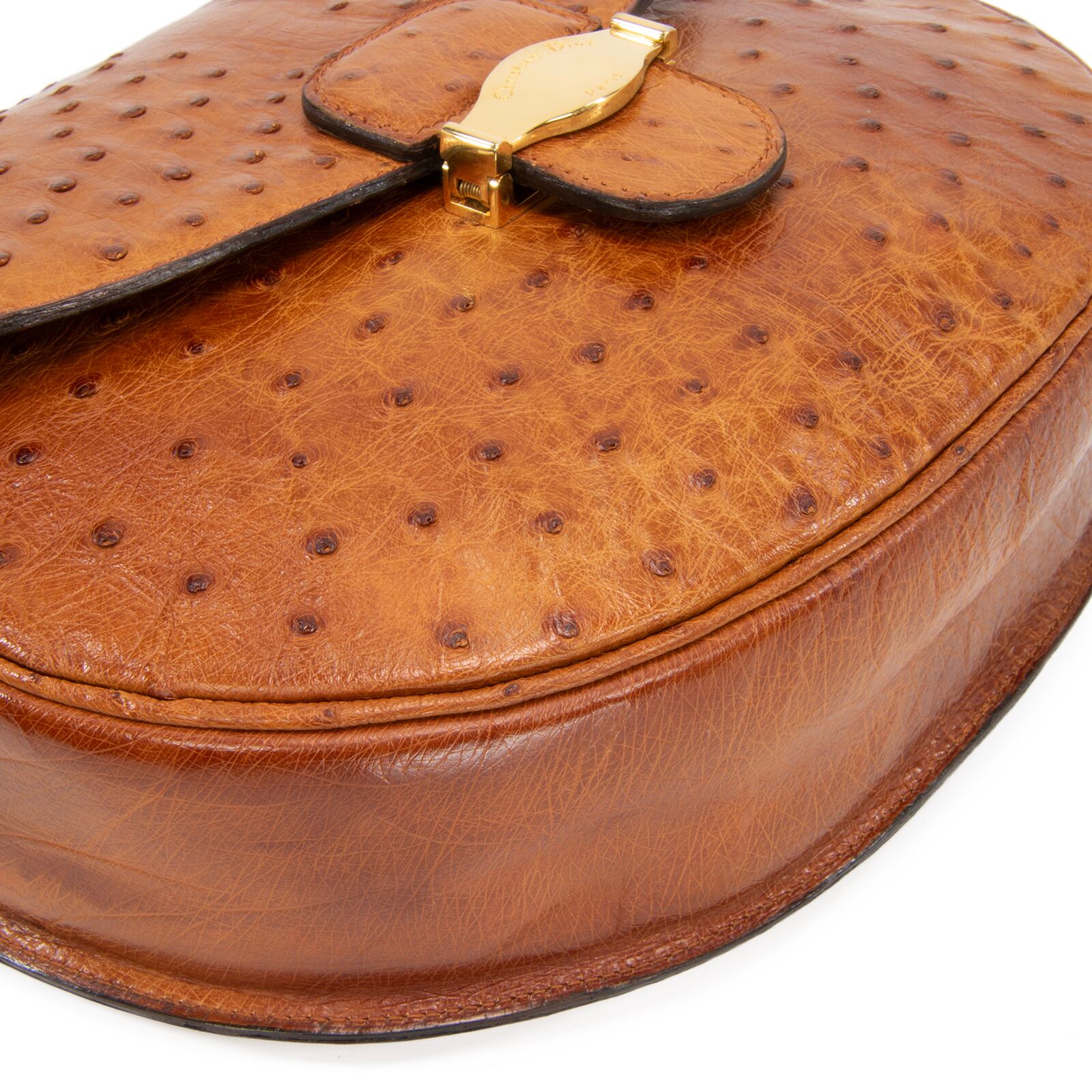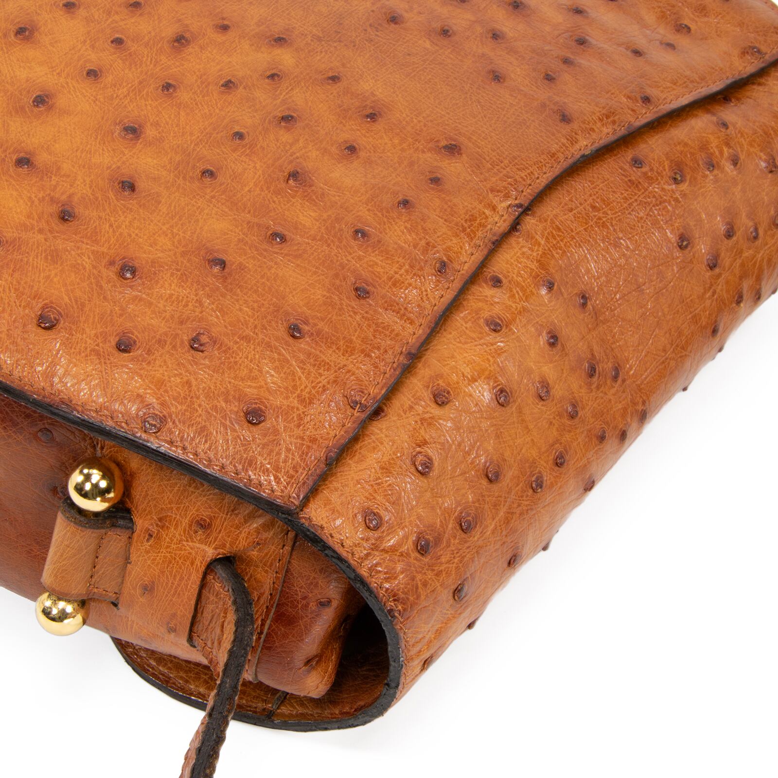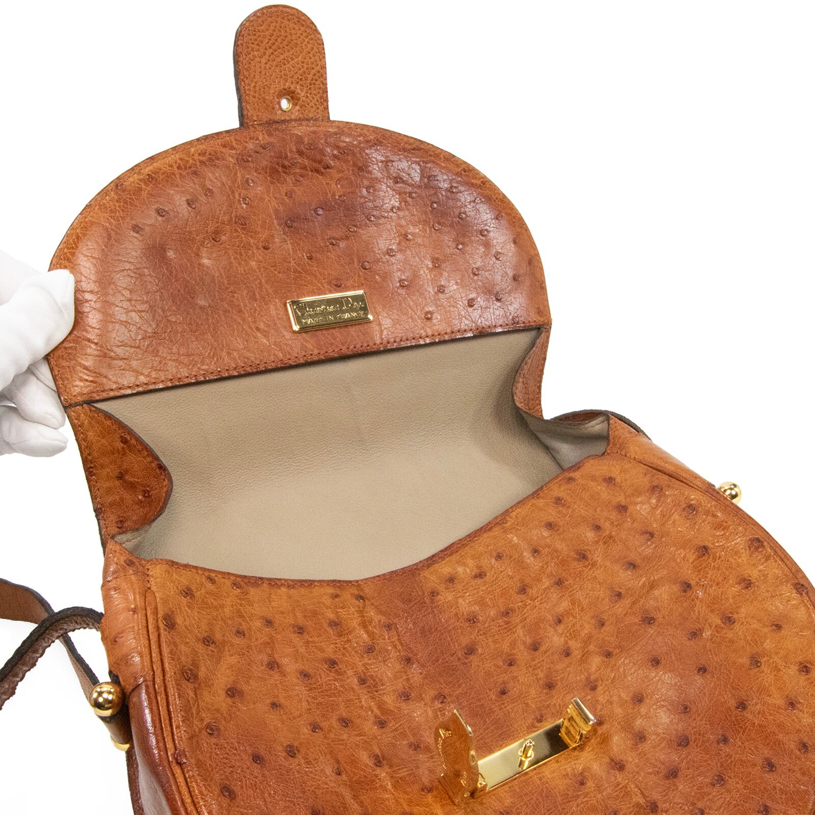 本物 送料無料 オールドディオール ショルダー クロスボディバッグ レディース オーストリッチ 茶色 最高級 斜め掛け 本革 鞄 バック B274