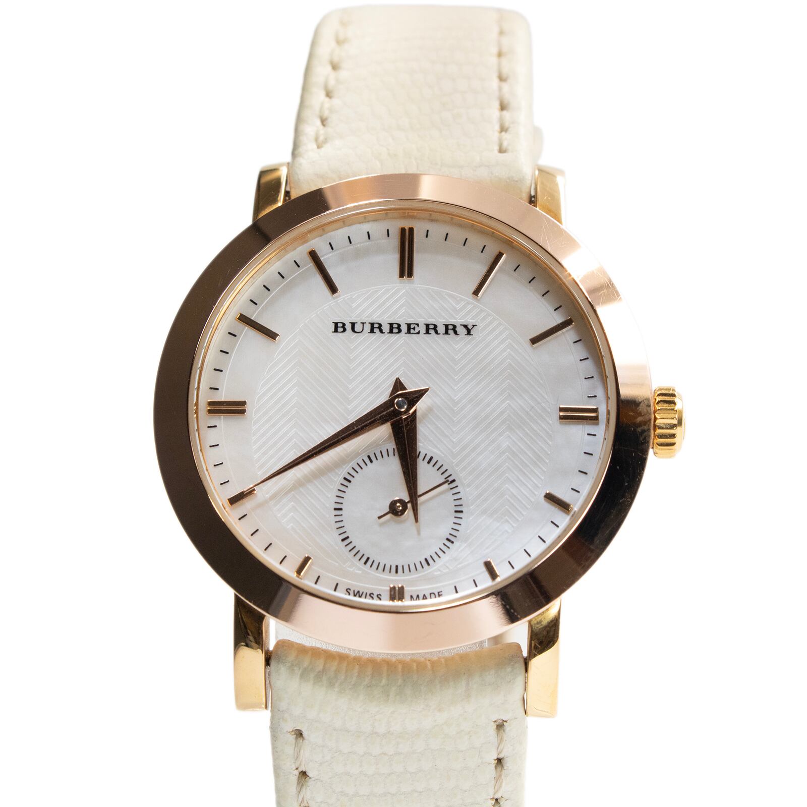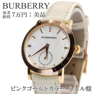 送料無料 バーバリー 腕時計 レディース 白 ホワイト ピンクゴールド シェル盤 白蝶貝 ロゴ レザー 革ベルト 珍しい 人気 スイス製 綺麗 X204