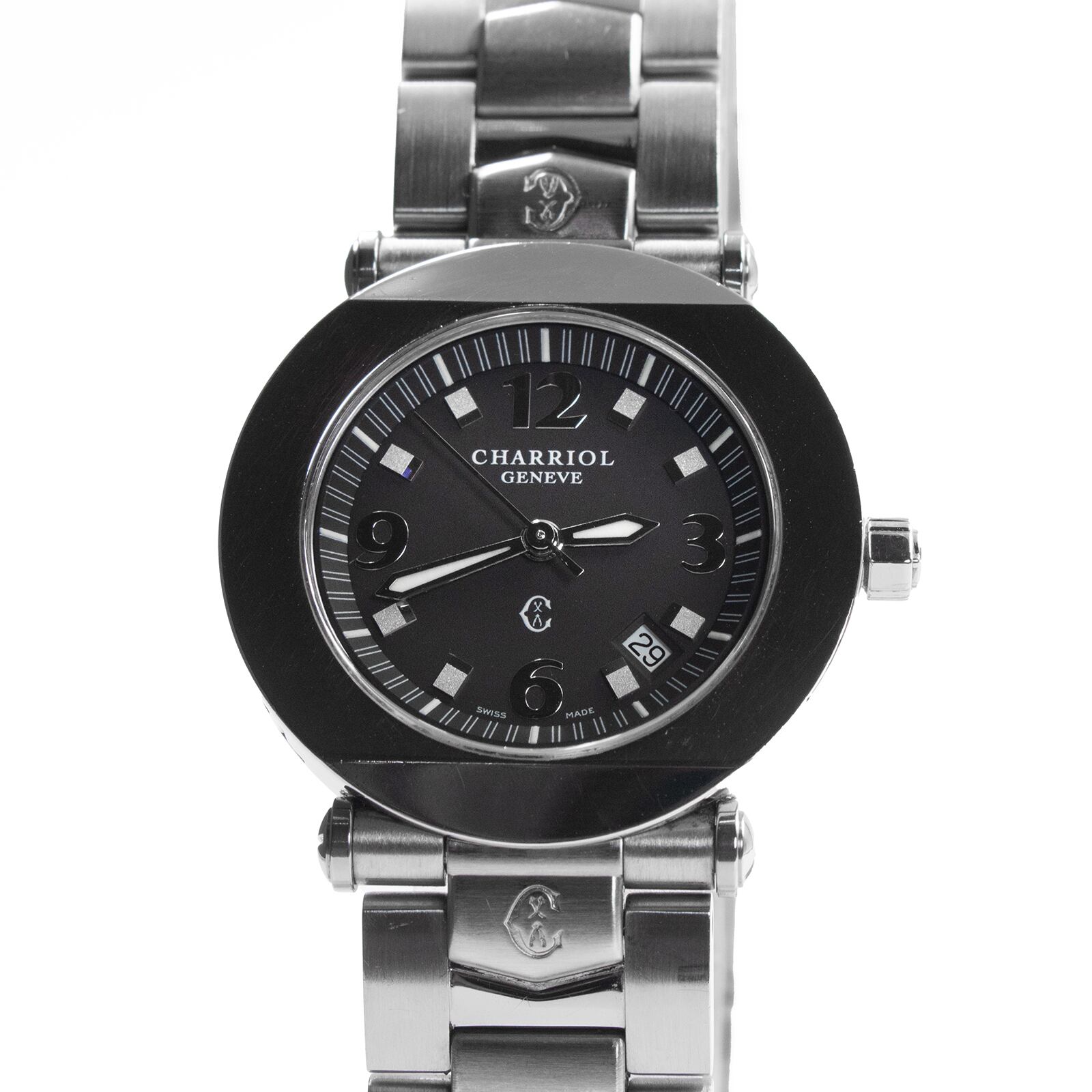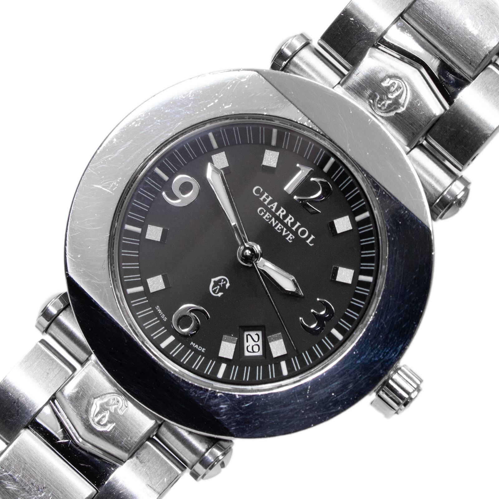送料無料 シャリオール 腕時計 レディース コロンブス 黒 ブラック Cロゴ マーク シンプル ブランド 珍しい レアカラー スイス製 綺麗 X206