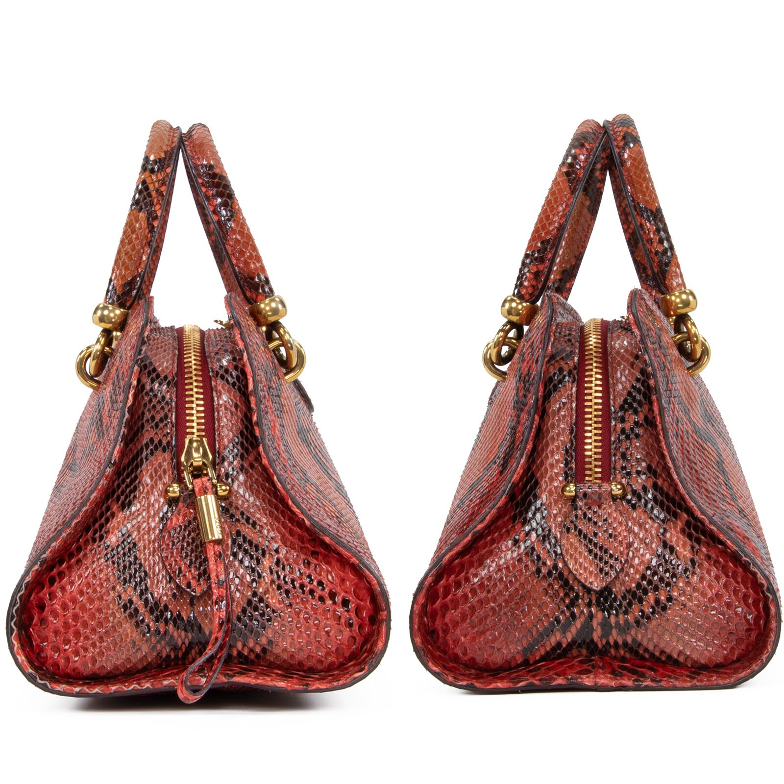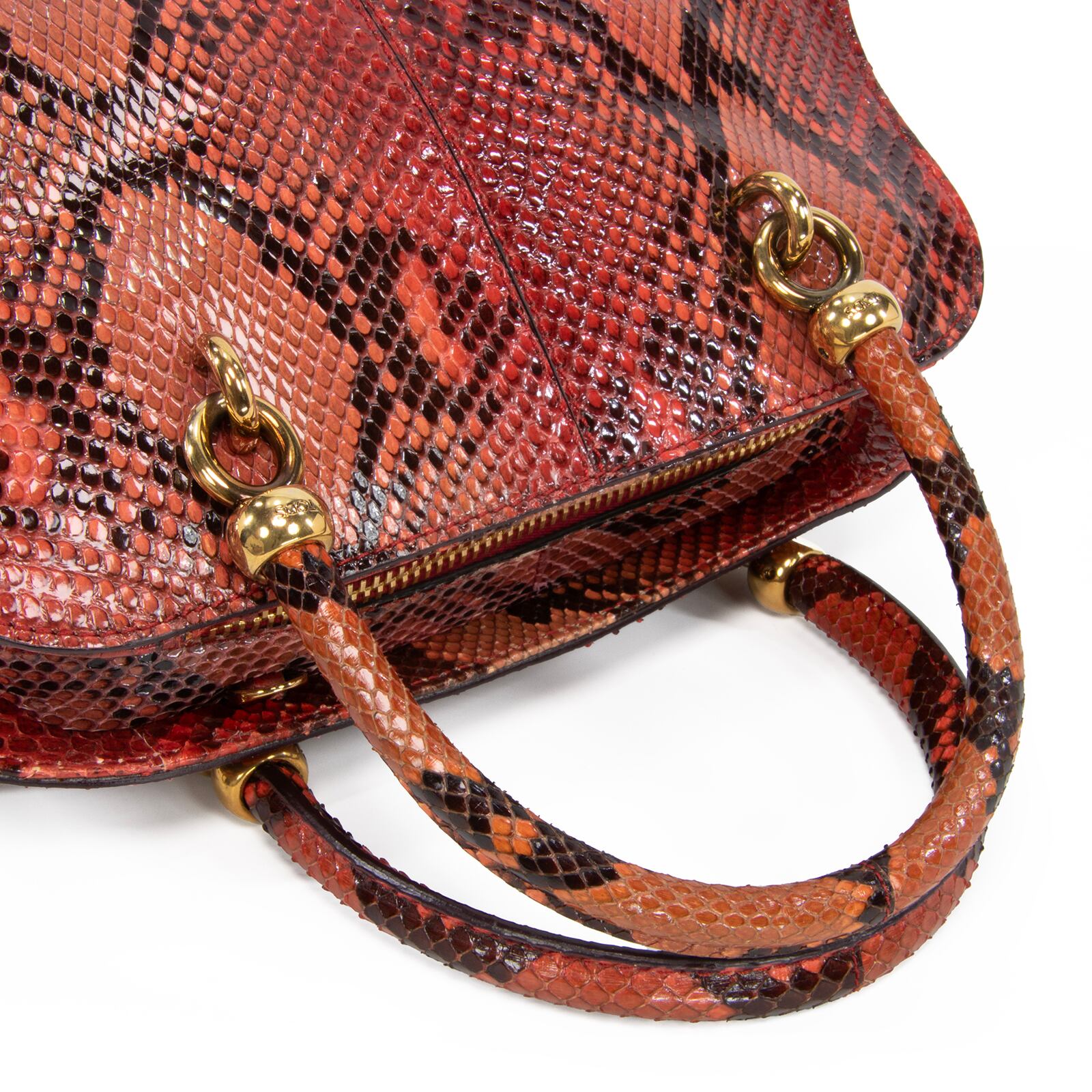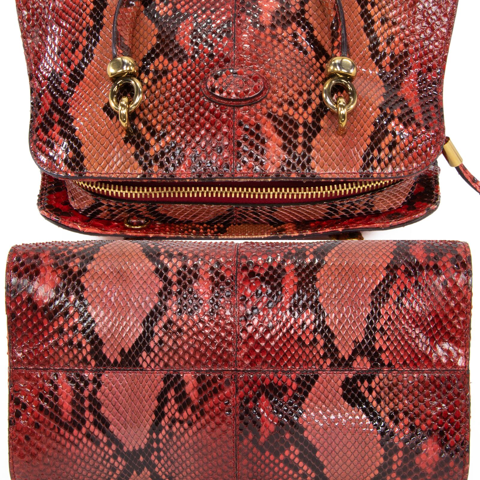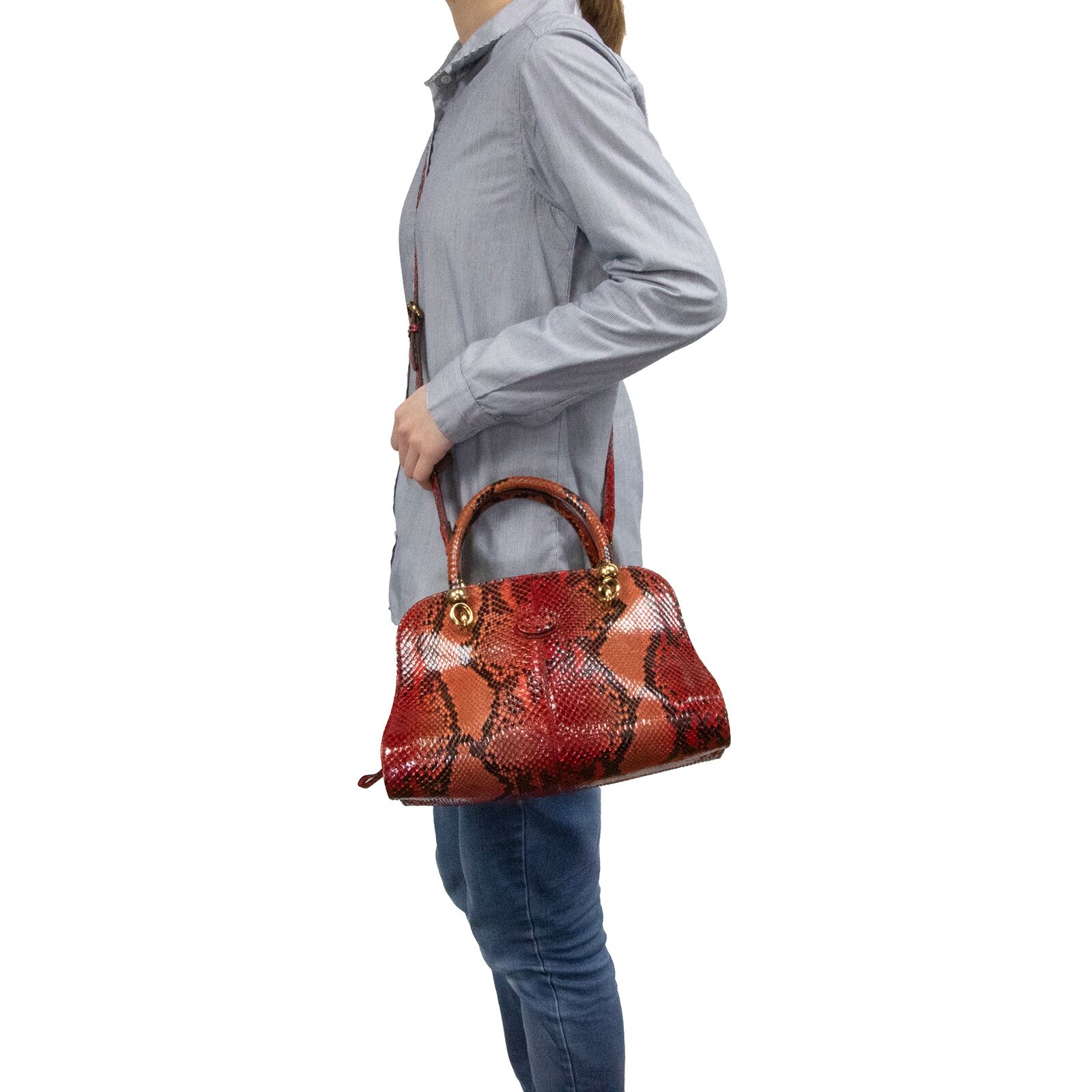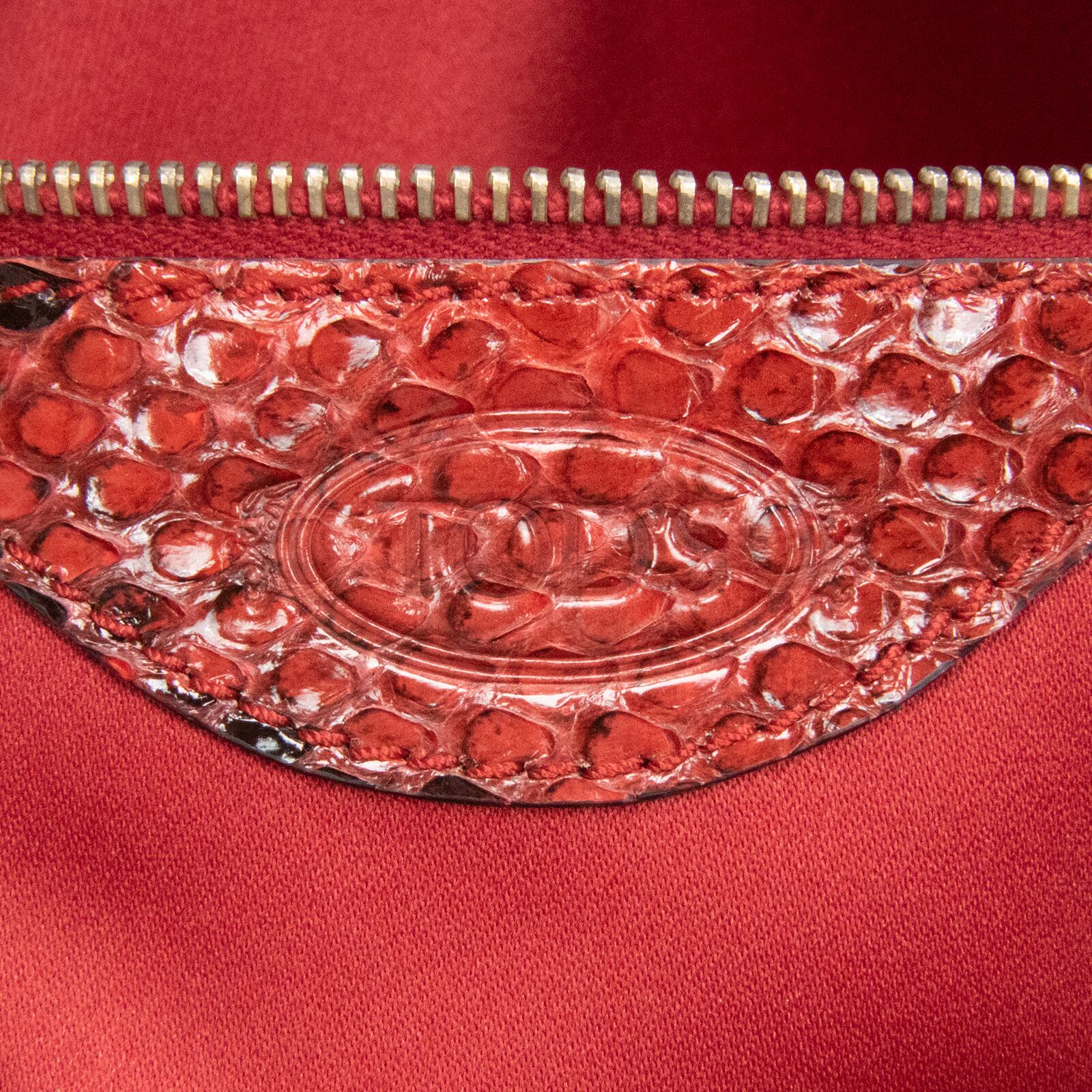 本物 送料無料 トッズ 2WAYショルダー ハンドバッグ レディース パイソン 赤 茶色 珍しい 最高級 斜め掛け 蛇の本革 ロゴ 鞄 バック E388