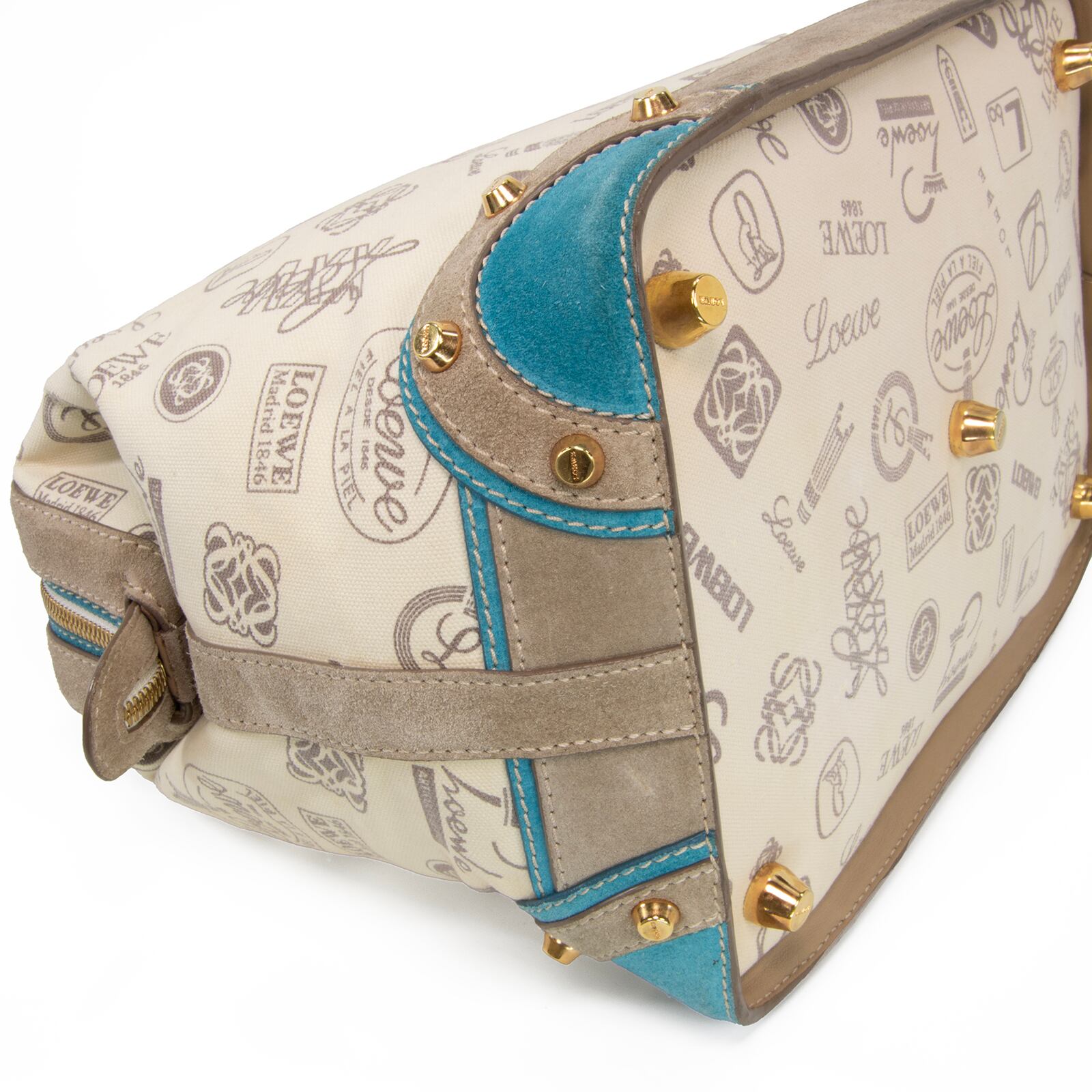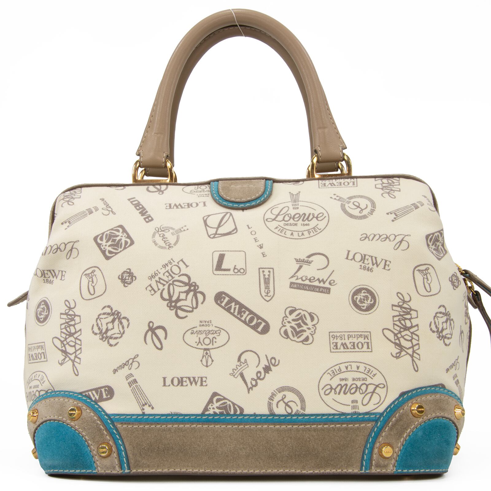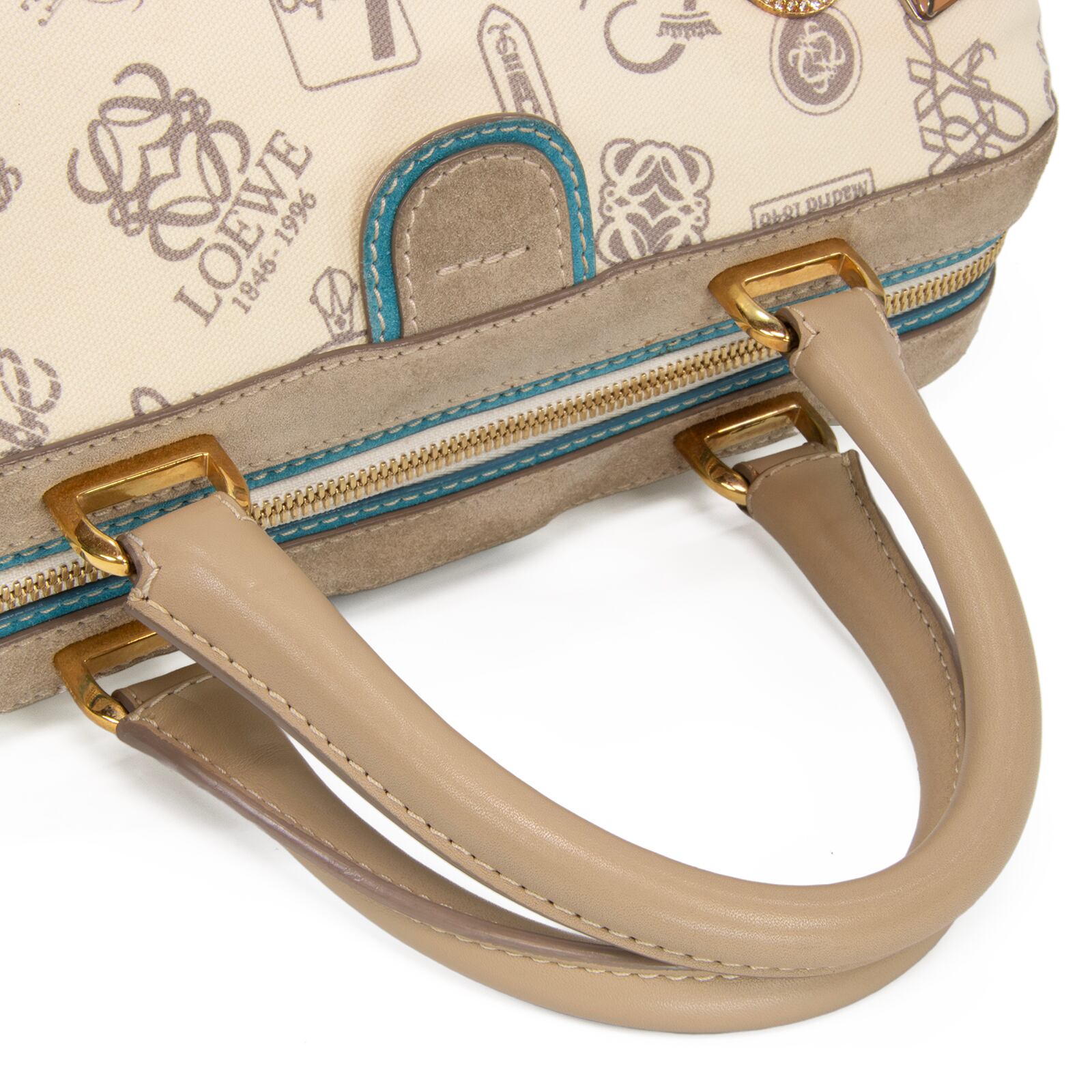 本物 送料無料 ロエベ ハンドバッグ レディース 160周年記念モデル ベージュ グレージュ 青緑色 珍しい 限定 ロゴ バッジ 鞄 バック E392