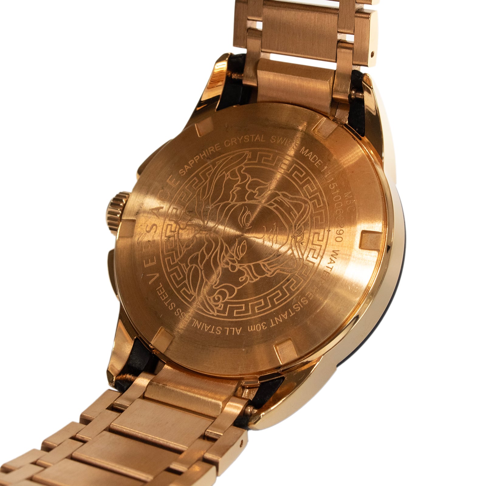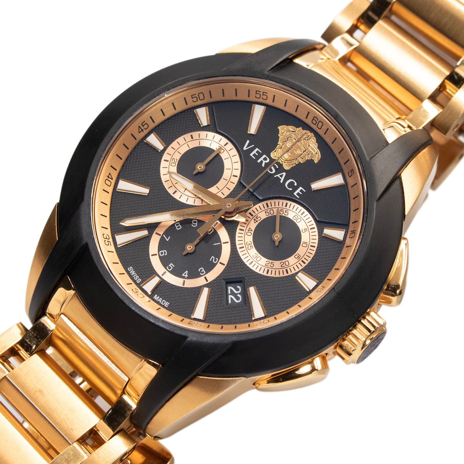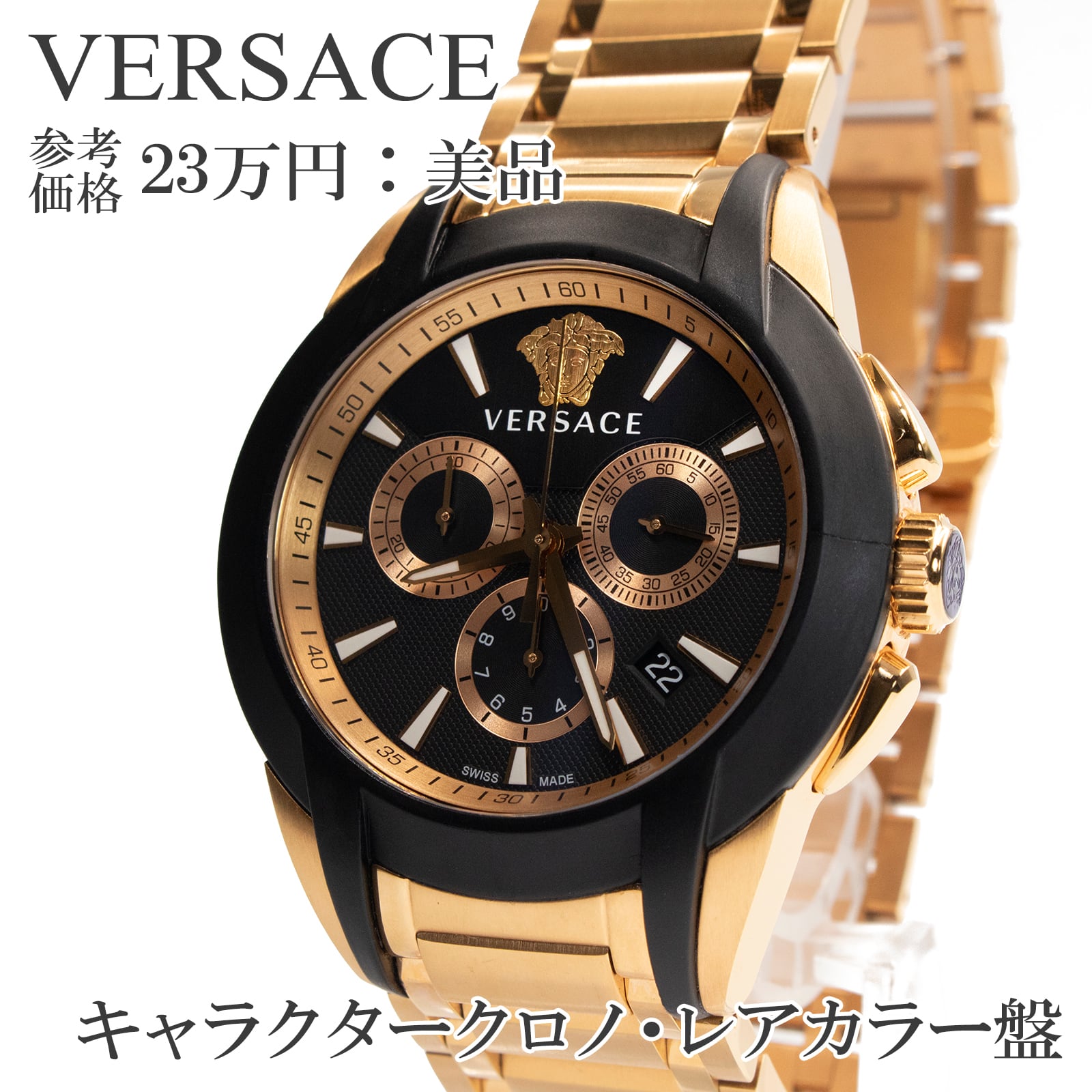 送料無料 ヴェルサーチェ 腕時計 メンズ キャラクタークロノ 黒 ゴールド クロノグラフ 目立つ メドゥーサ ロゴ マーク 珍しい 綺麗 Q097