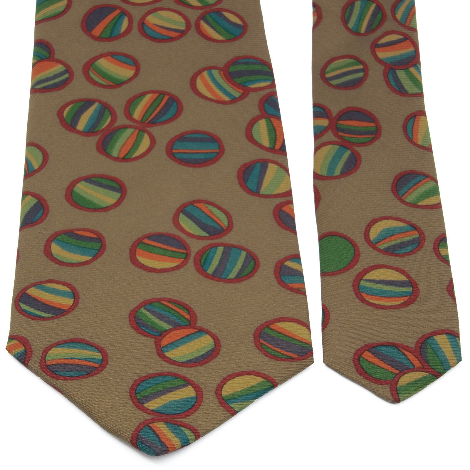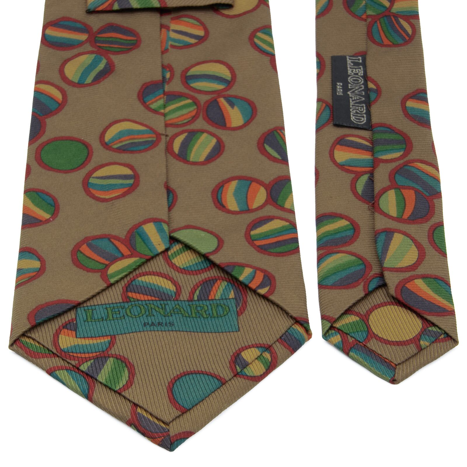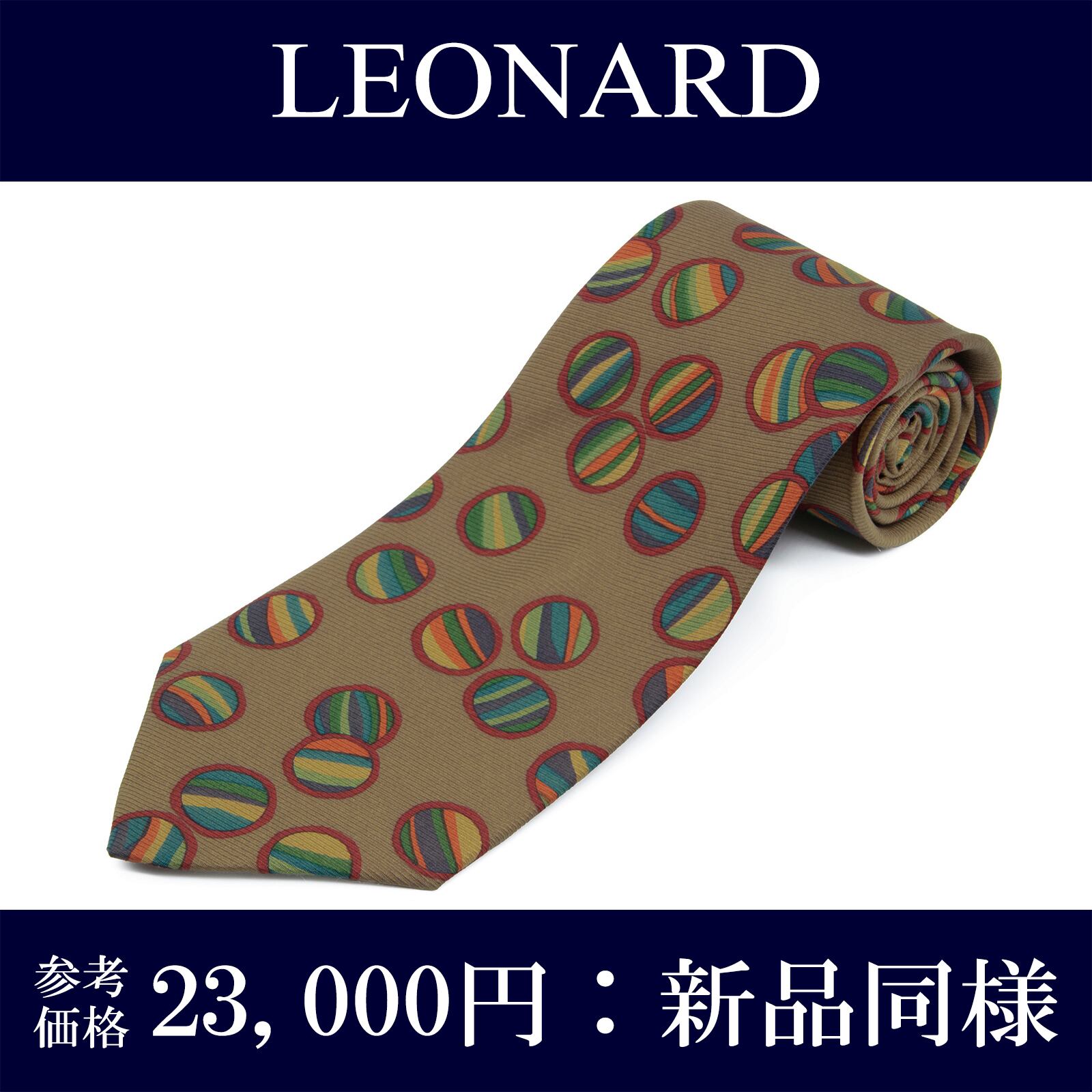 送料無料 レオナール ネクタイ レギュラータイ 新品同様 シルク 黄土色 赤 緑 ネイビーブルー ベージュ 毬 和風 ブランド イタリア製 N765