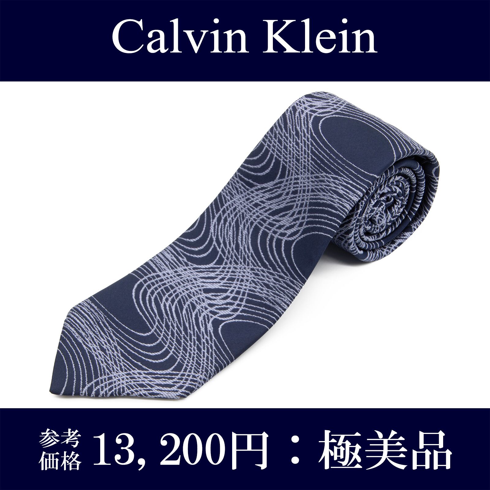 送料無料 カルバンクライン ネクタイ レギュラータイ ジャガード シルク 青 ネイビーブルー 水色 波紋 ブランド 珍しい おしゃれ 綺麗 N881