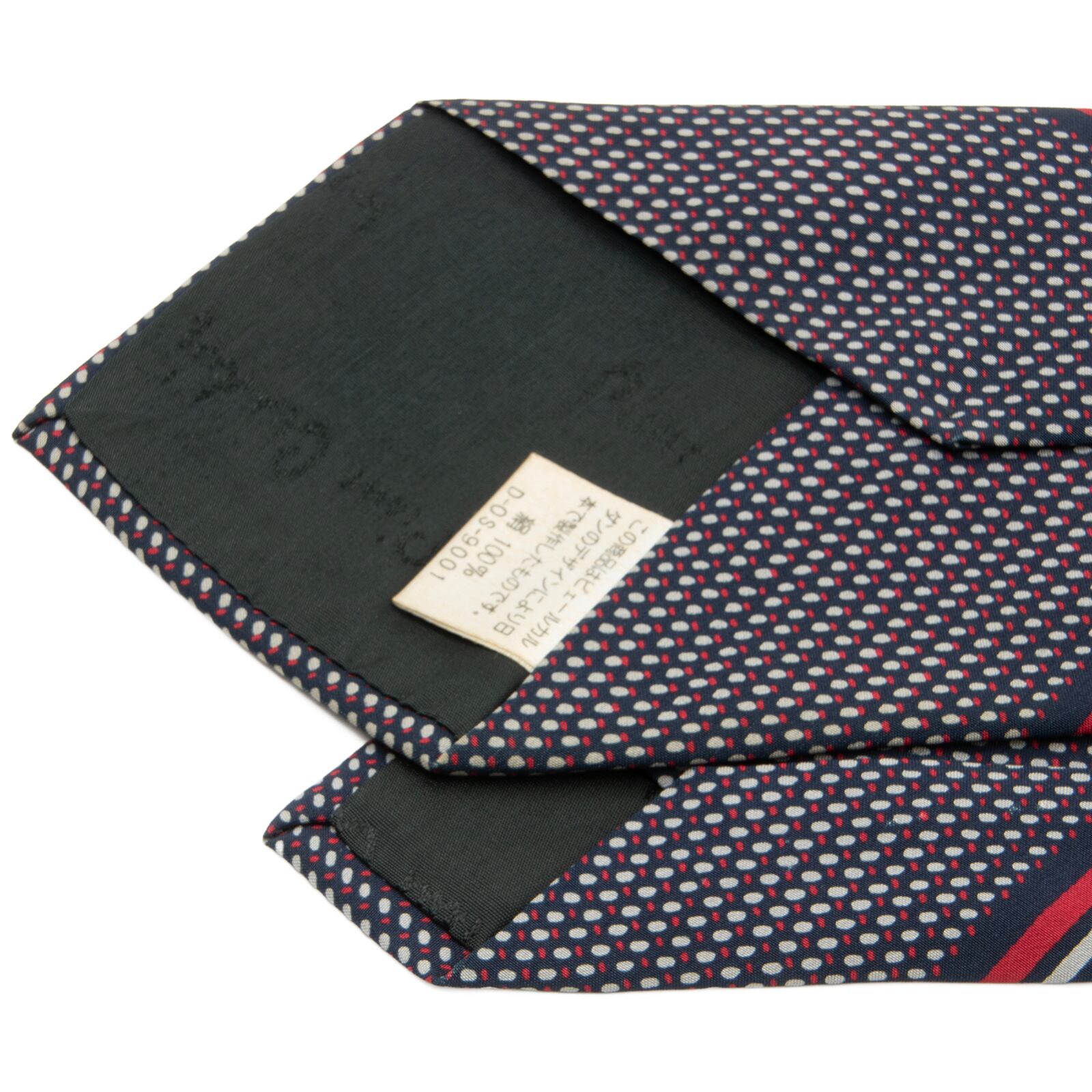 送料無料 ピエールカルダン ネクタイ 新品同様 シルク ネイビーブルー 赤 グレー 格子 フェンス 点 ドット ブランド 珍しい おしゃれ N983