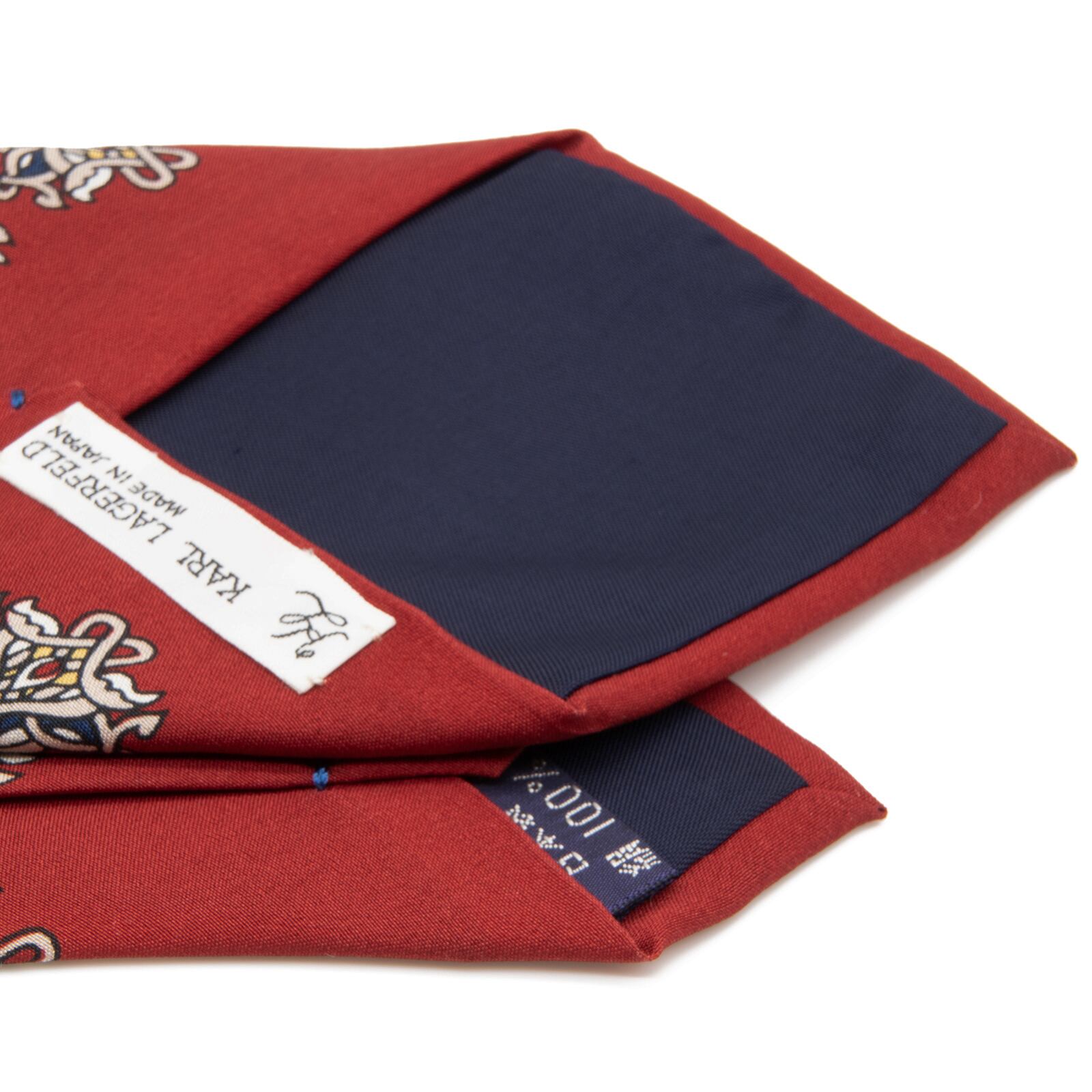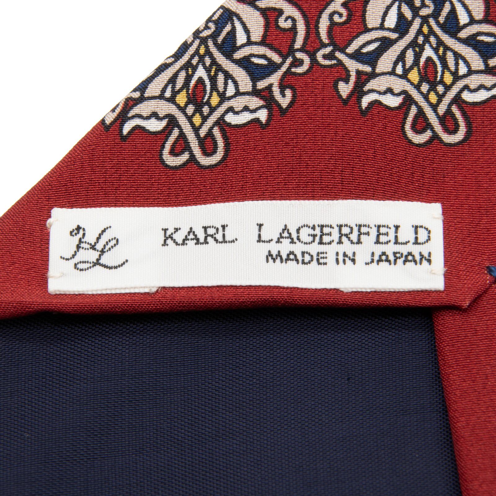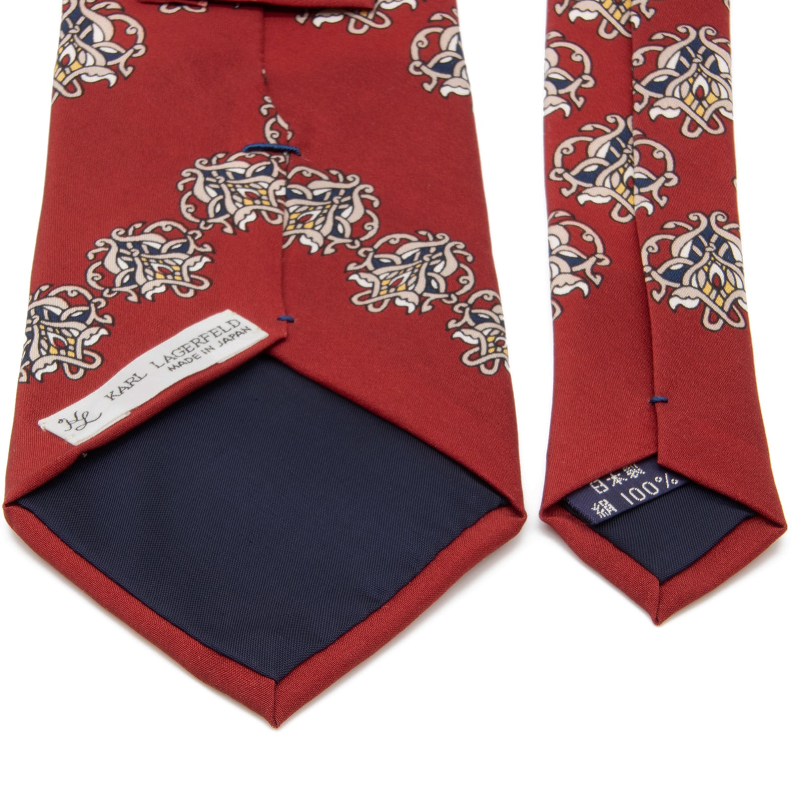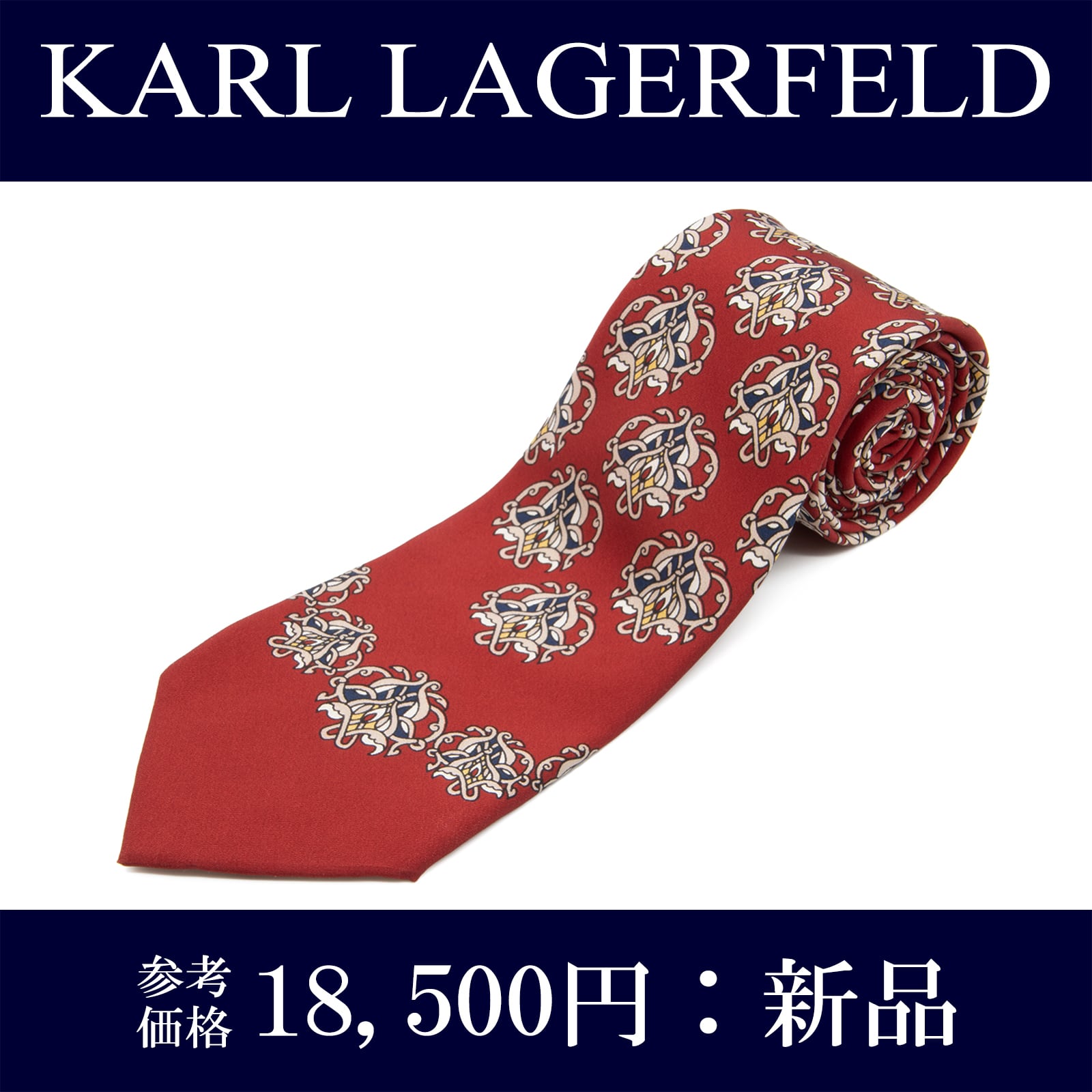 送料無料 カールラガーフェルド ネクタイ レギュラータイ 新品 シルク 赤 ネイビーブルー ベージュ 黄色 紋様 マーク ブランド 綺麗 N412