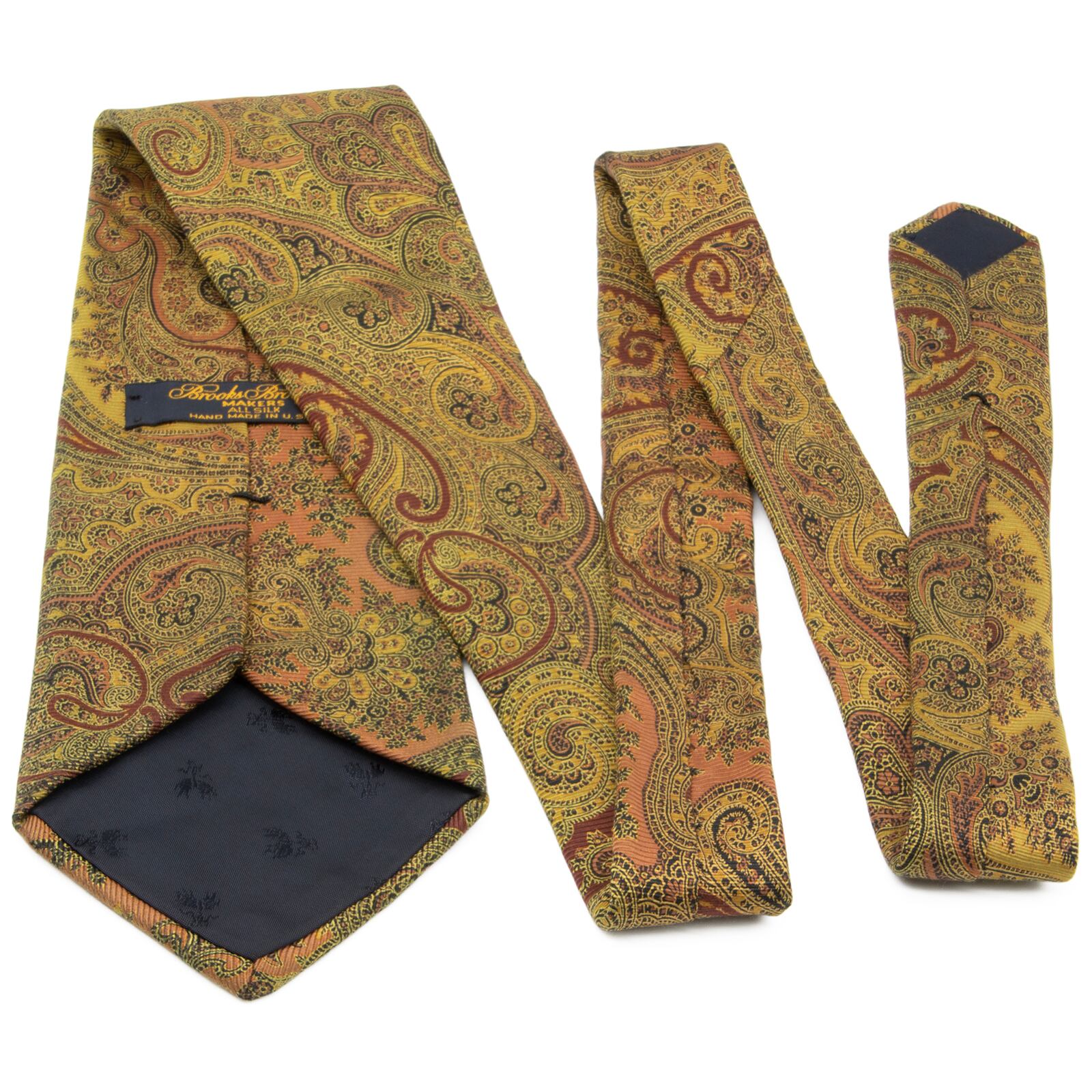 送料無料 ブルックスブラザーズ ネクタイ シルク 黄土色 茶色 オレンジ 黒 ビジネス ペイズリー エスニック ブランド おしゃれ 綺麗 N676
