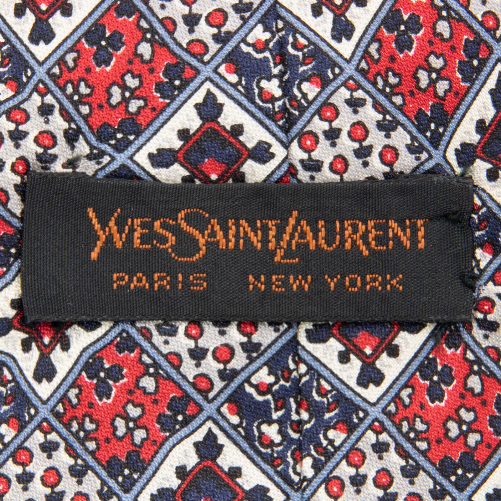 送料無料 サンローラン ネクタイ レギュラータイ 新品同様 シルク ネイビーブルー 白 赤 水色 グレー 四角 格子 花 フラワー 珍しい N699